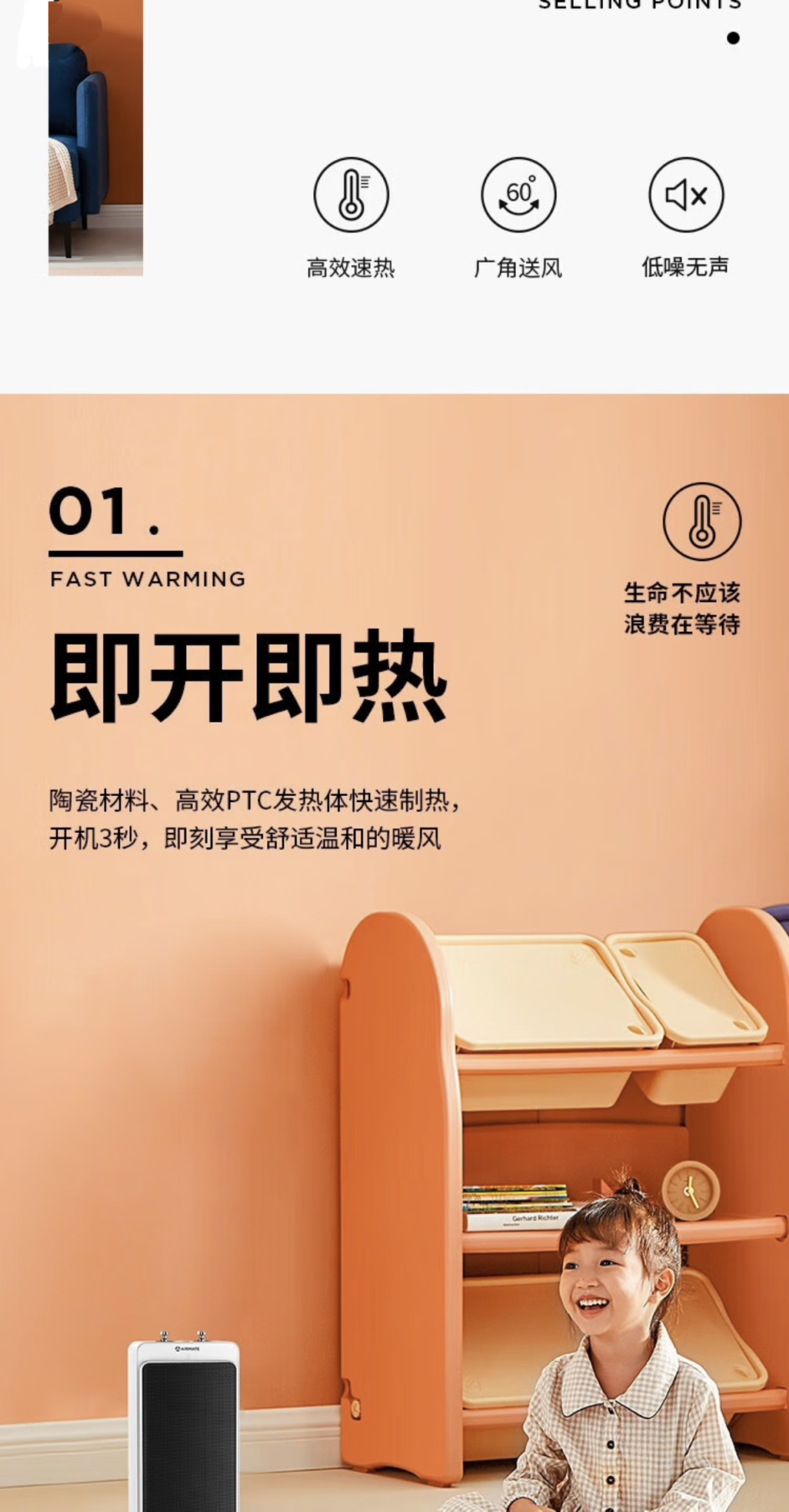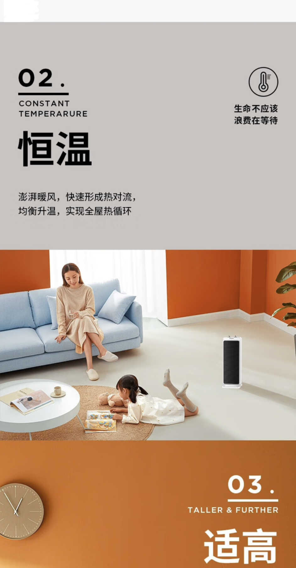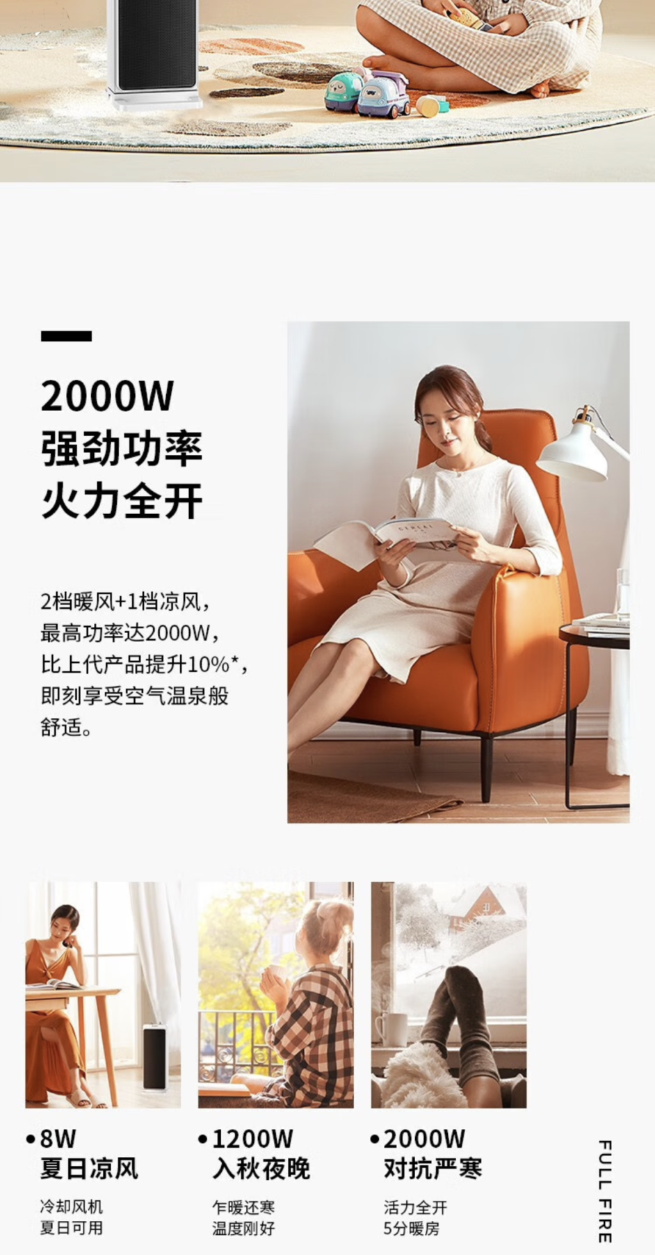【超市】艾美特暖风机立式取暖器速热烤火炉可摇头卧室电暖气HP20-X15