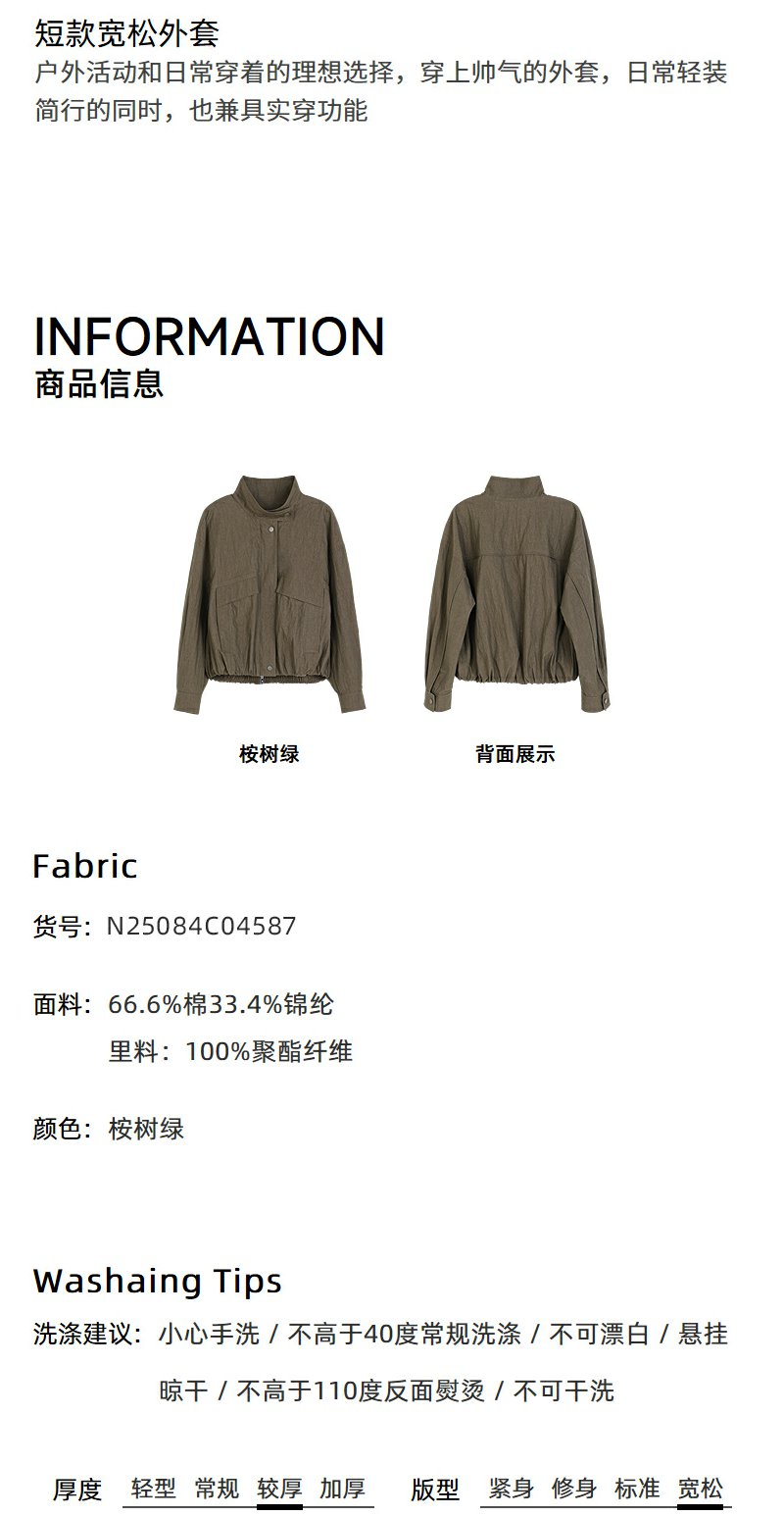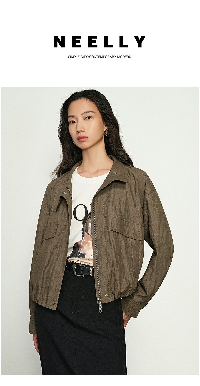 NEELLY纳俪商场同款秋季新款简约宽松短外套女通勤百搭上衣N25084C04587