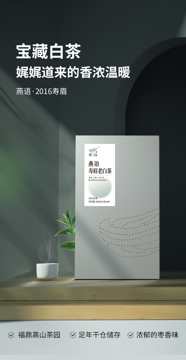 燕语甜白(2016寿眉)老白茶老白茶礼盒装200g
