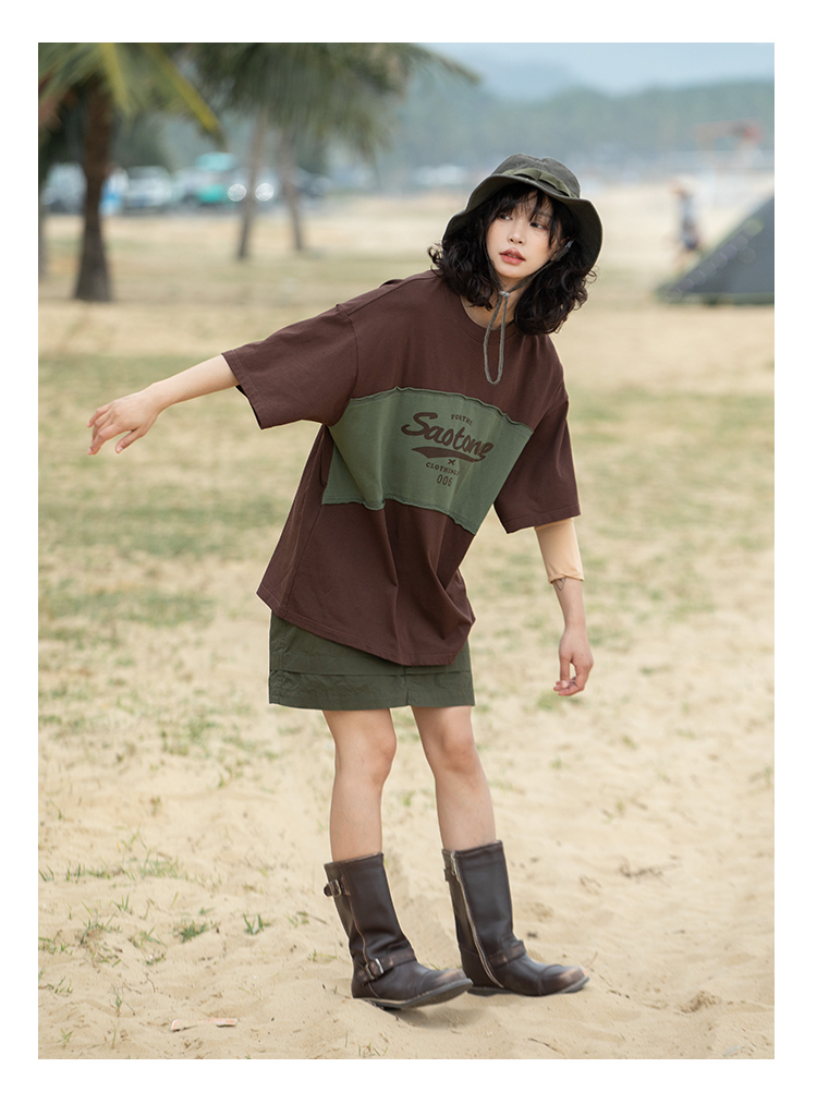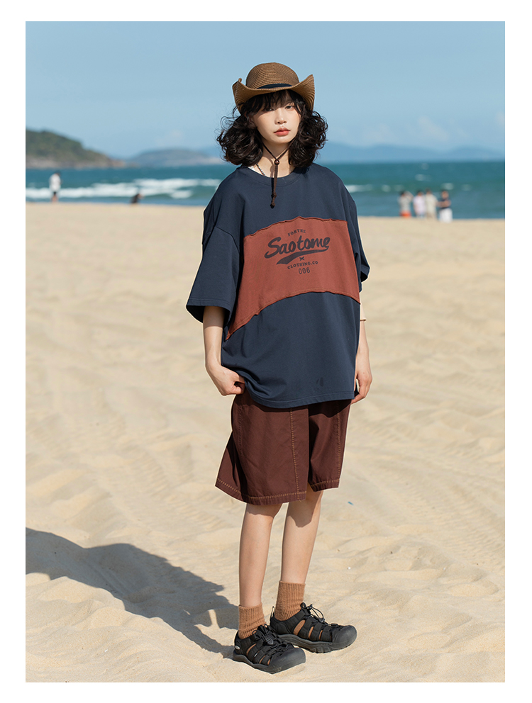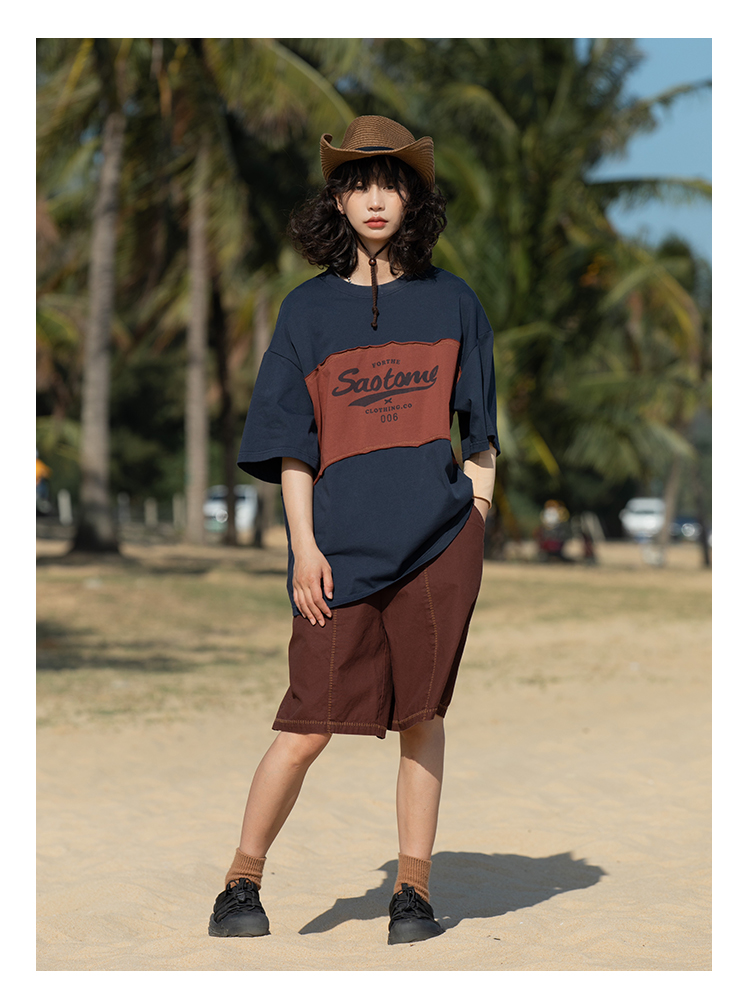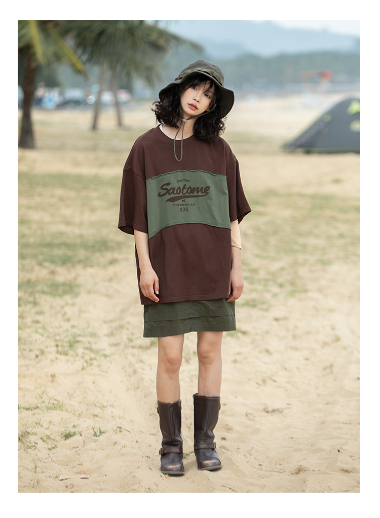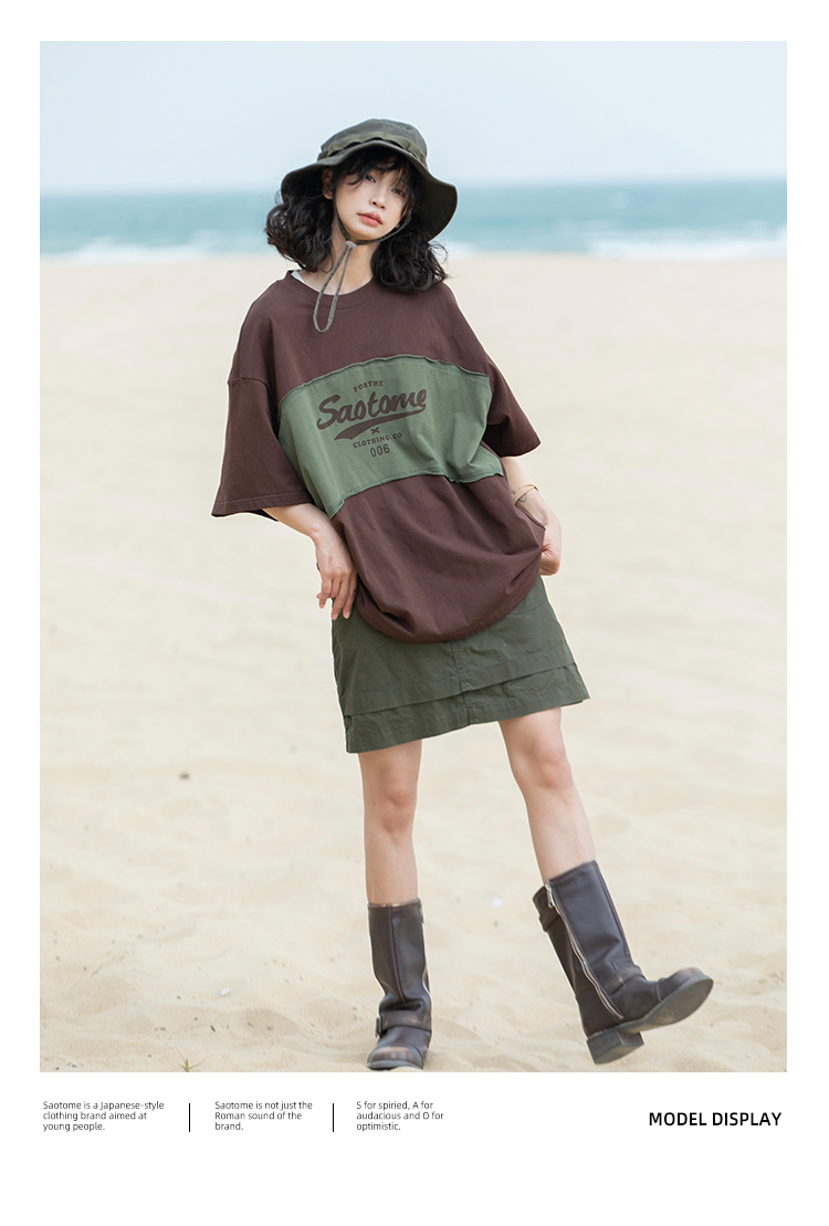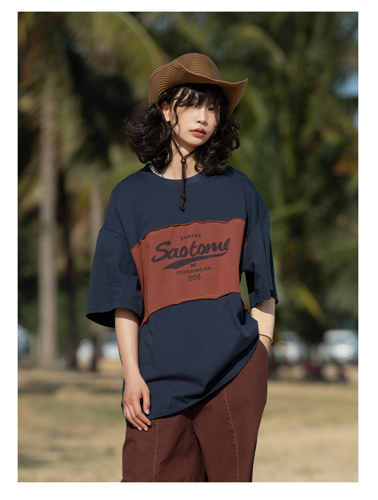 早乙女惠子saotome/STMDX240203/logo印花弧形拼色短袖T恤