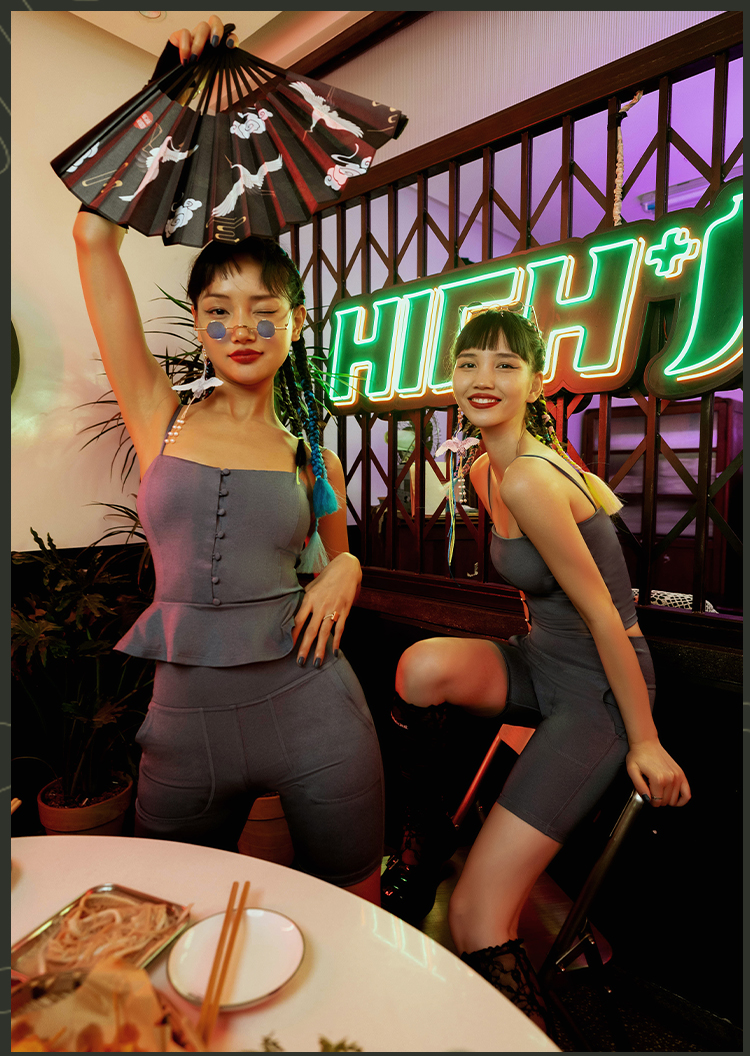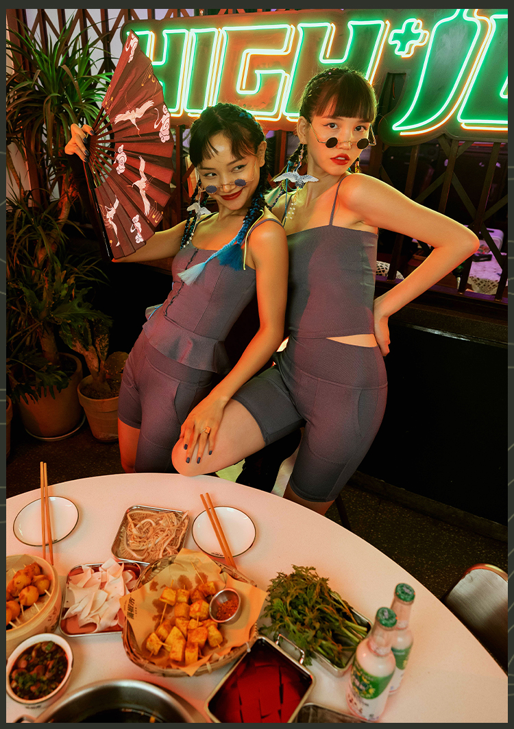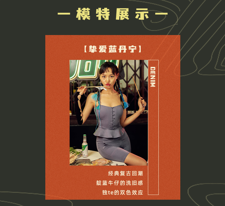 【高弹面料】火锅国潮丹宁系列带胸垫背心前排包扣下摆荷叶边瑜伽服