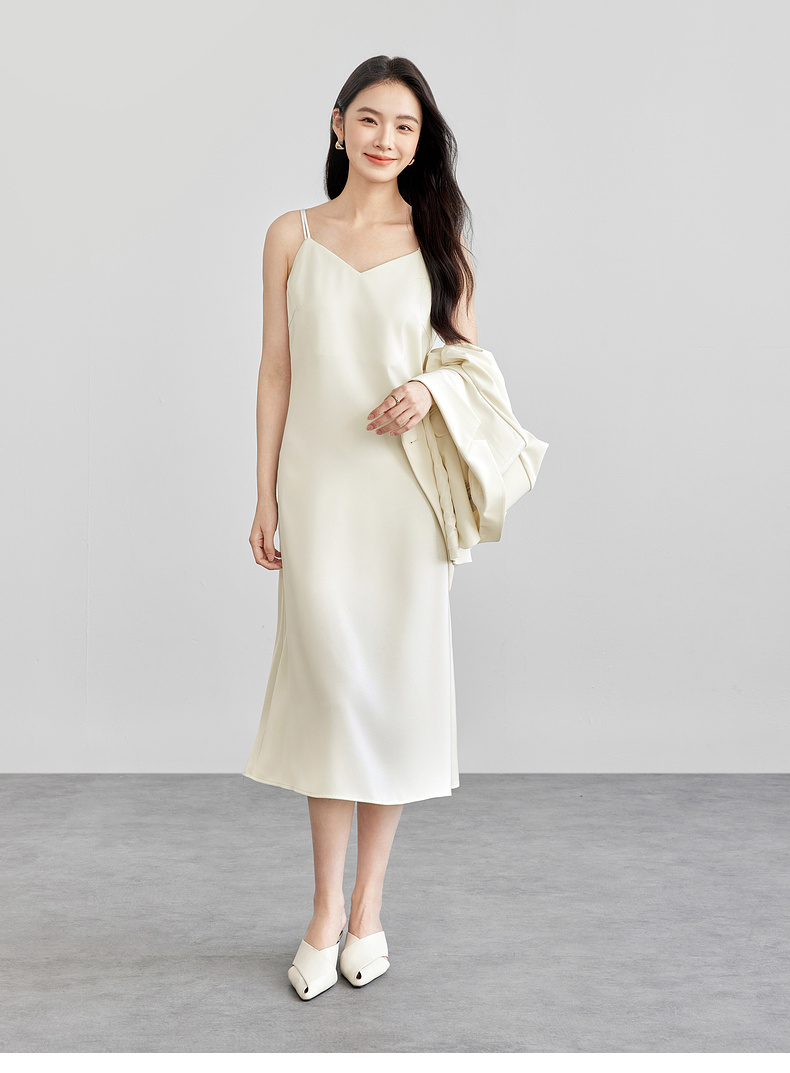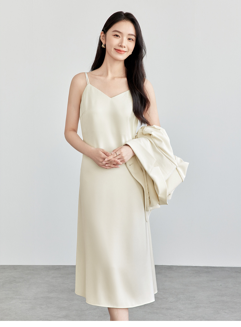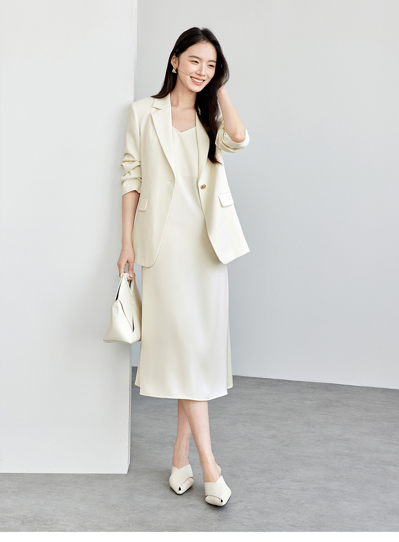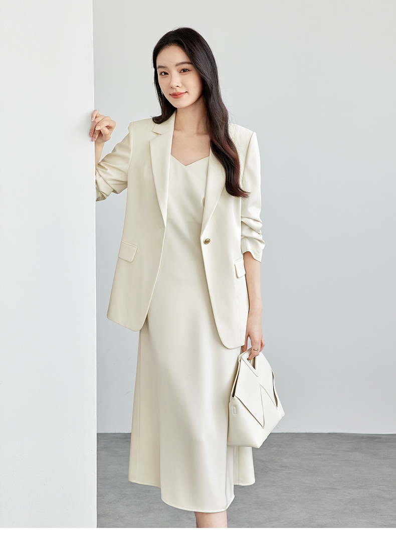 【内购】【免搭配套装】通勤优雅垫肩西装外套&V领双肩带中长吊带连衣裙-151Z80043Z