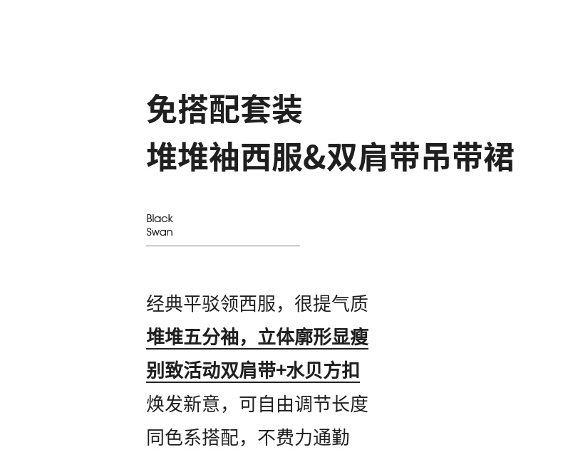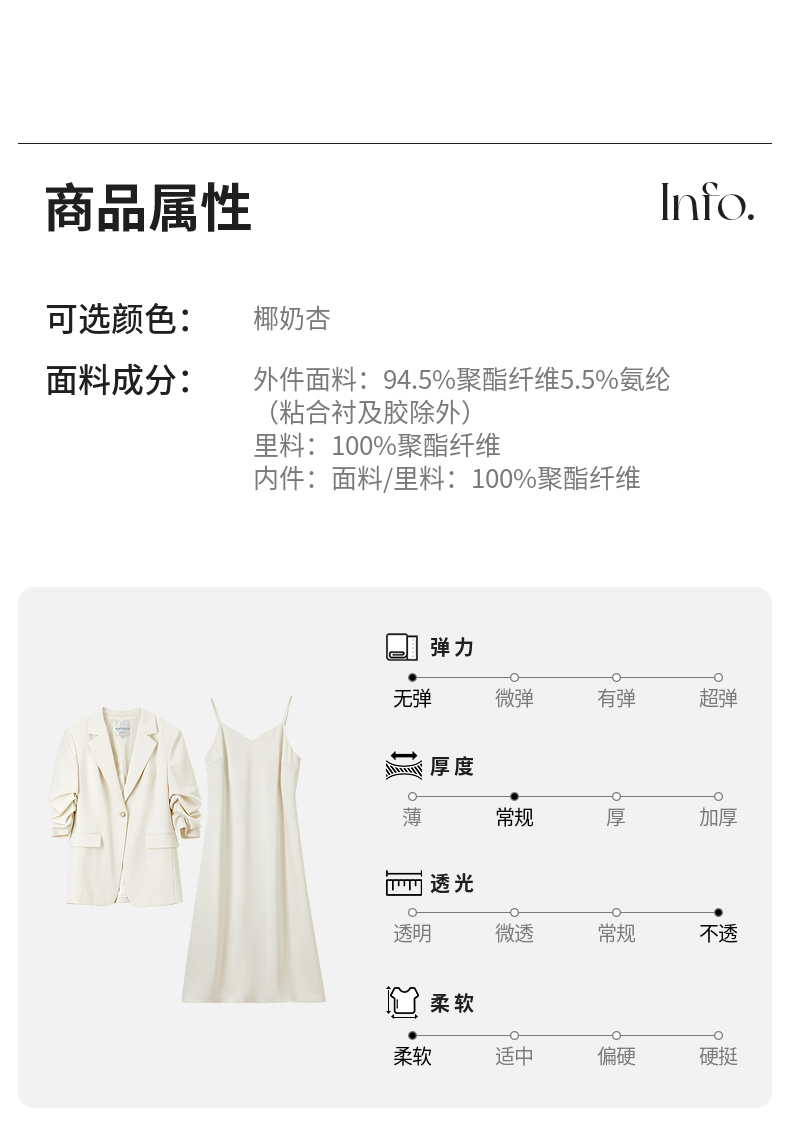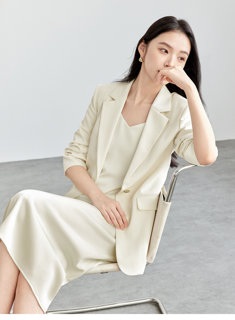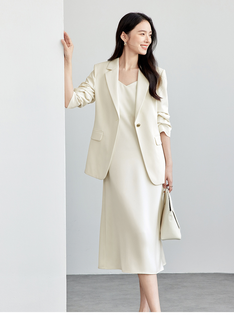 【内购】【免搭配套装】通勤优雅垫肩西装外套&V领双肩带中长吊带连衣裙-151Z80043Z
