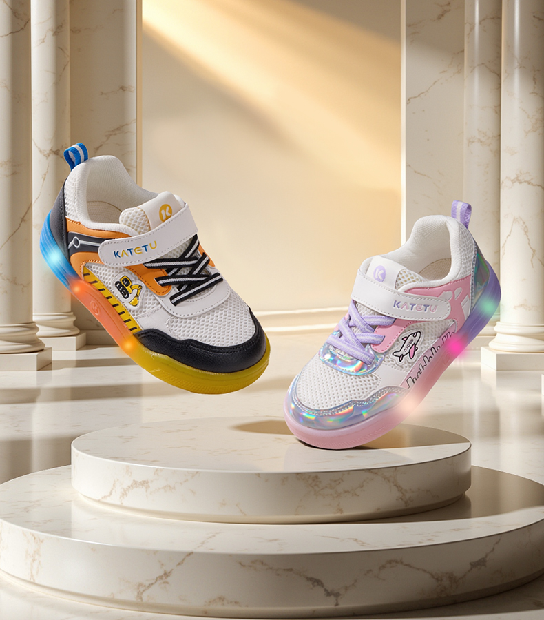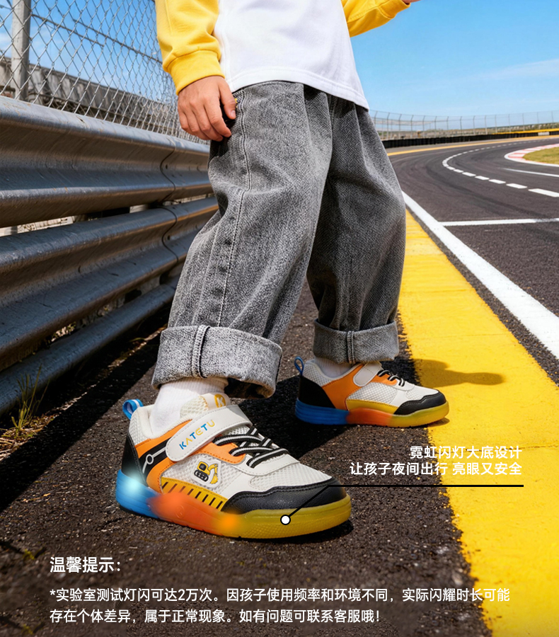 卡特兔童鞋儿童板鞋2026年春季新品闪灯鞋软底防滑耐磨透气运动鞋