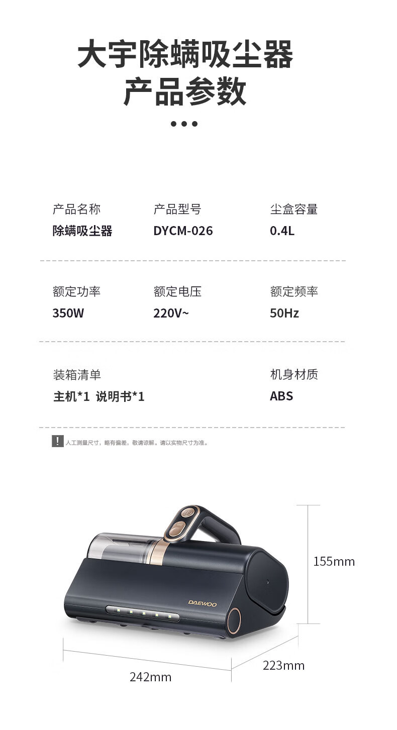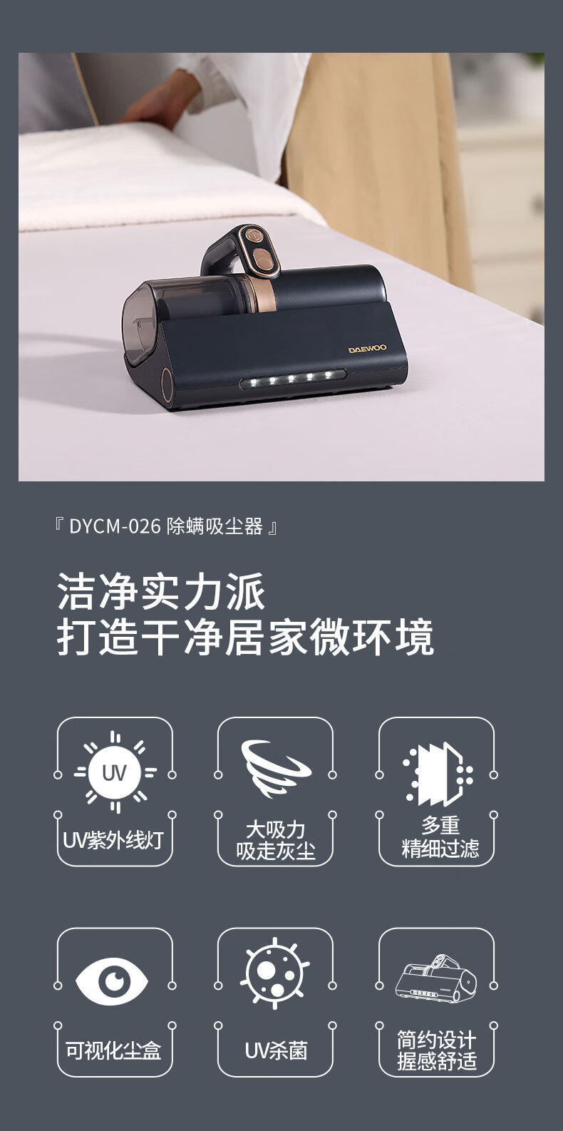 大宇(DAEWOO)除螨仪床上家用宿舍紫外线杀菌除螨吸尘器_DYCM-026