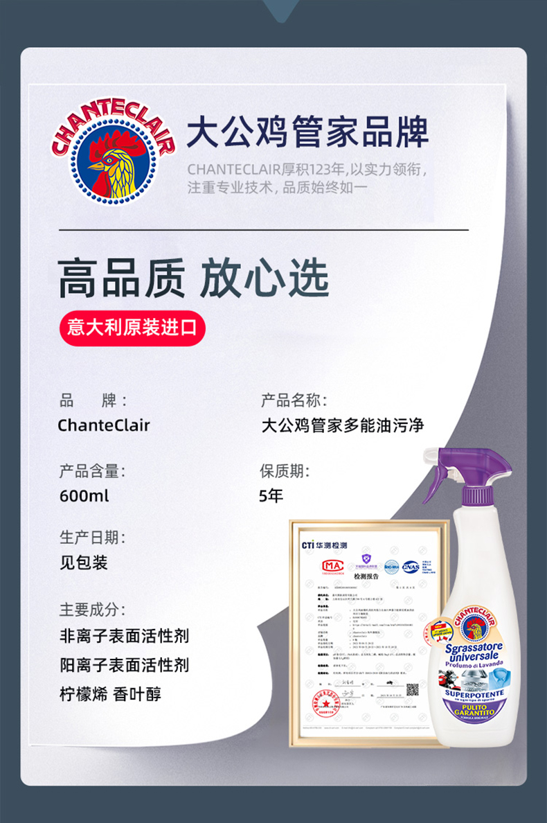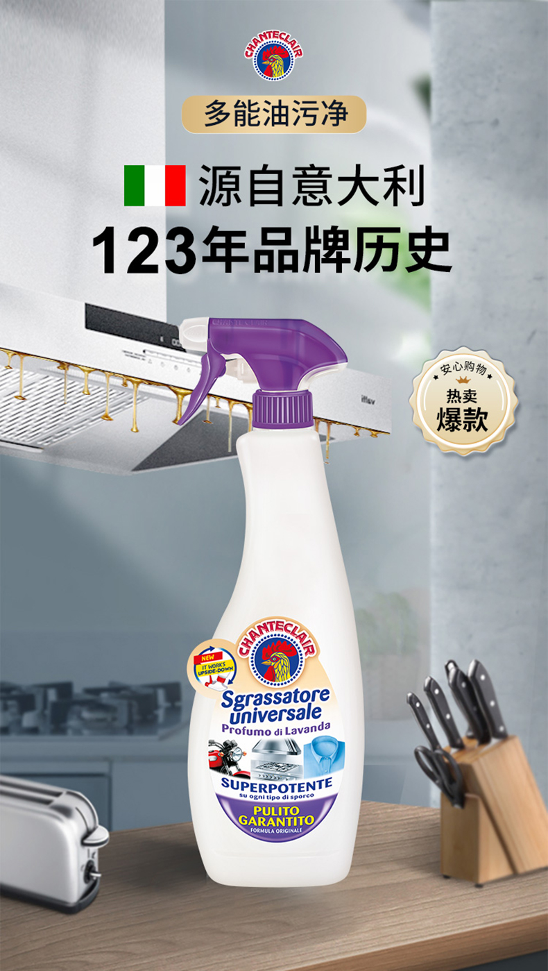 【1件包邮】大公鸡多能油污净经典薰衣草香600ml/118122 1瓶正装+2瓶替换装横扫油污洁净焕新 新疆西藏港澳台不发