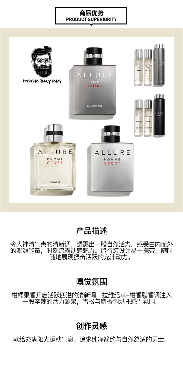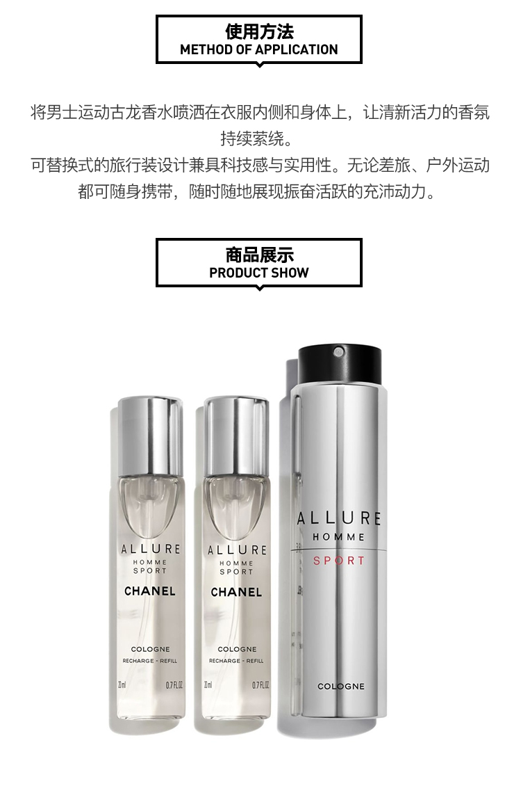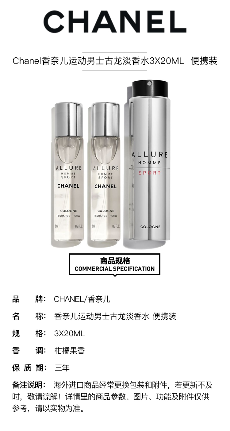 Chanel香奈儿运动男士古龙淡香水3X20ML 便携装