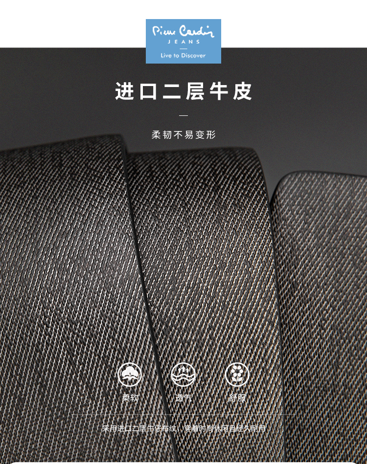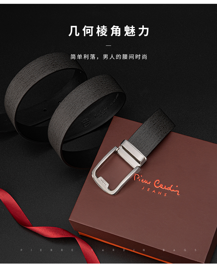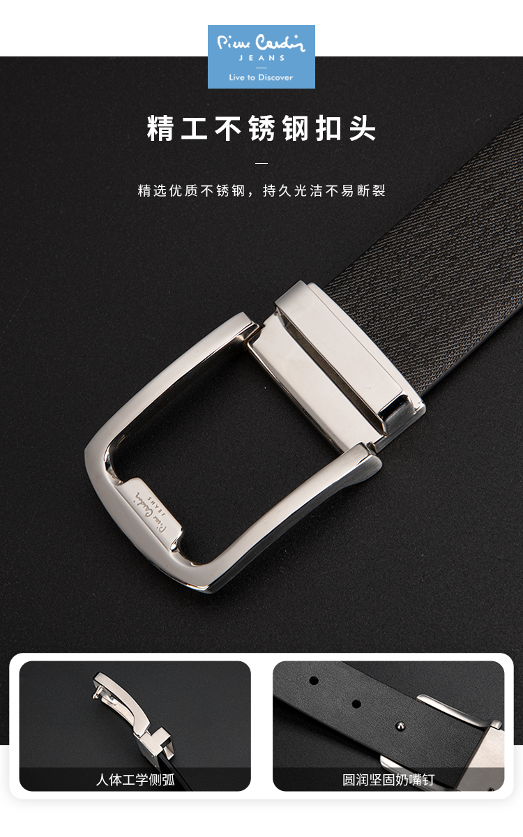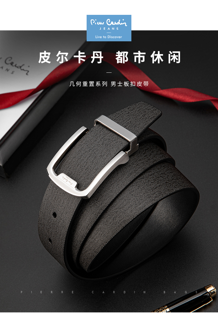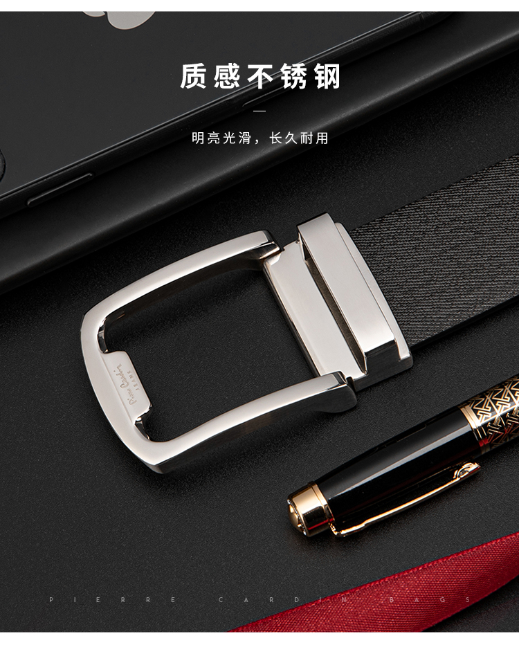 皮尔卡丹皮带男真皮腰带男士不锈钢板扣裤腰带爸爸男友商务牛皮裤带