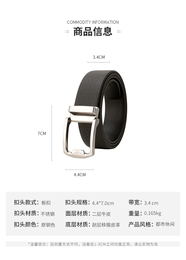 皮尔卡丹头层牛皮皮带男款商务休闲都市自动扣男士腰带高级感牛皮男式裤腰带