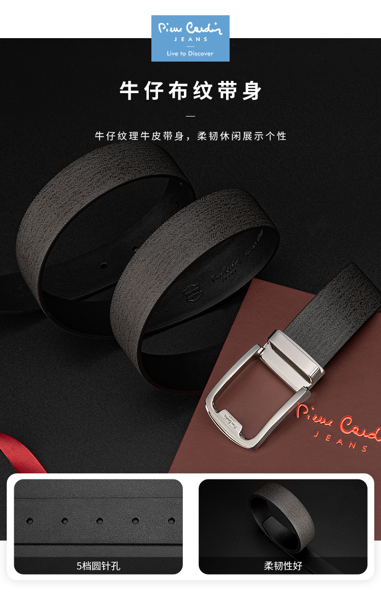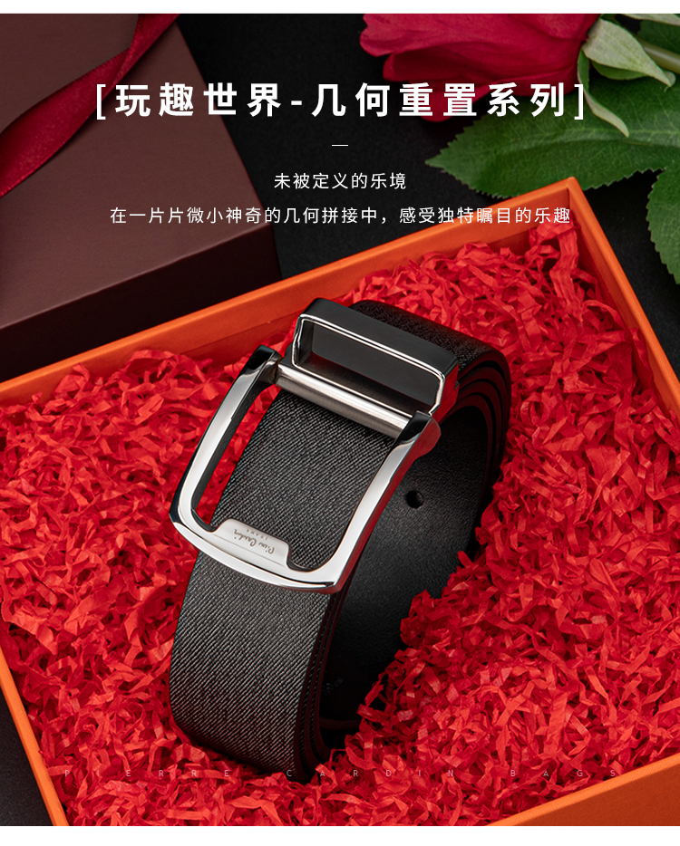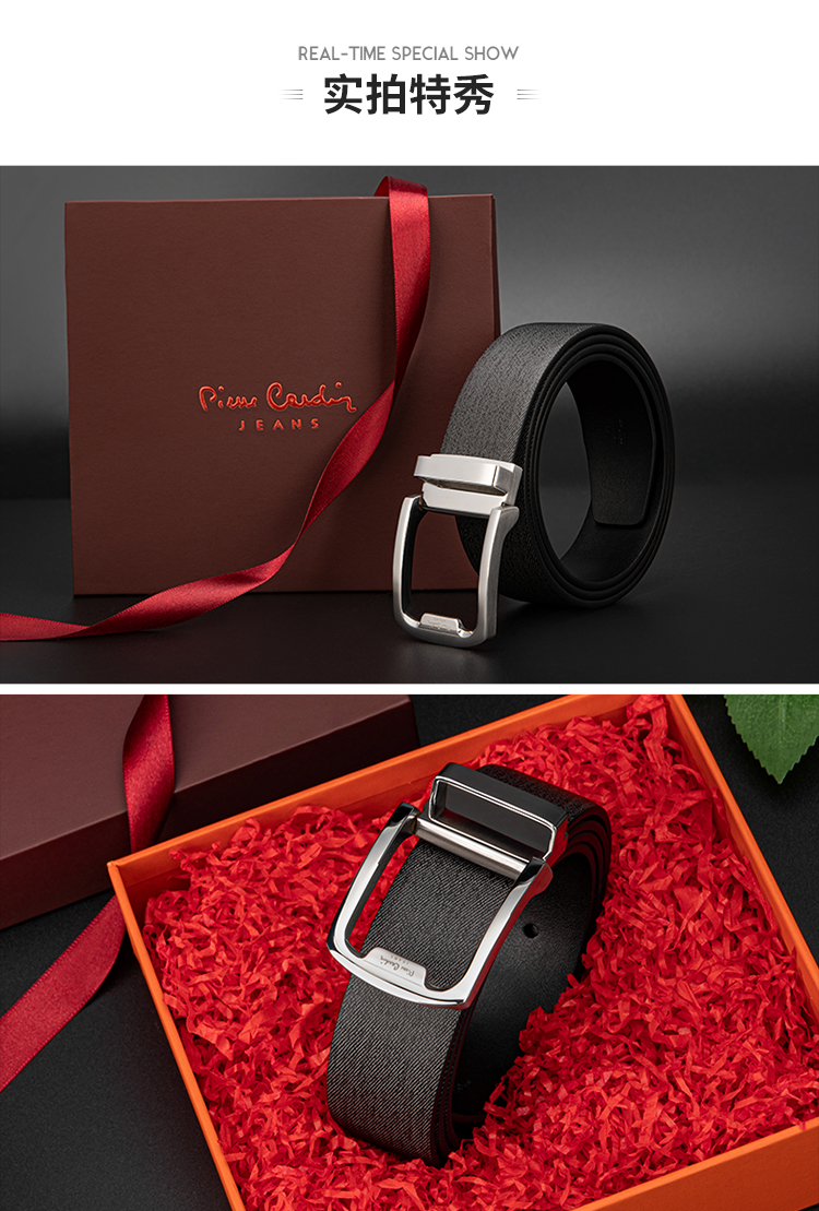 皮尔卡丹头层牛皮皮带男款商务休闲都市自动扣男士腰带高级感牛皮男式裤腰带送爸爸