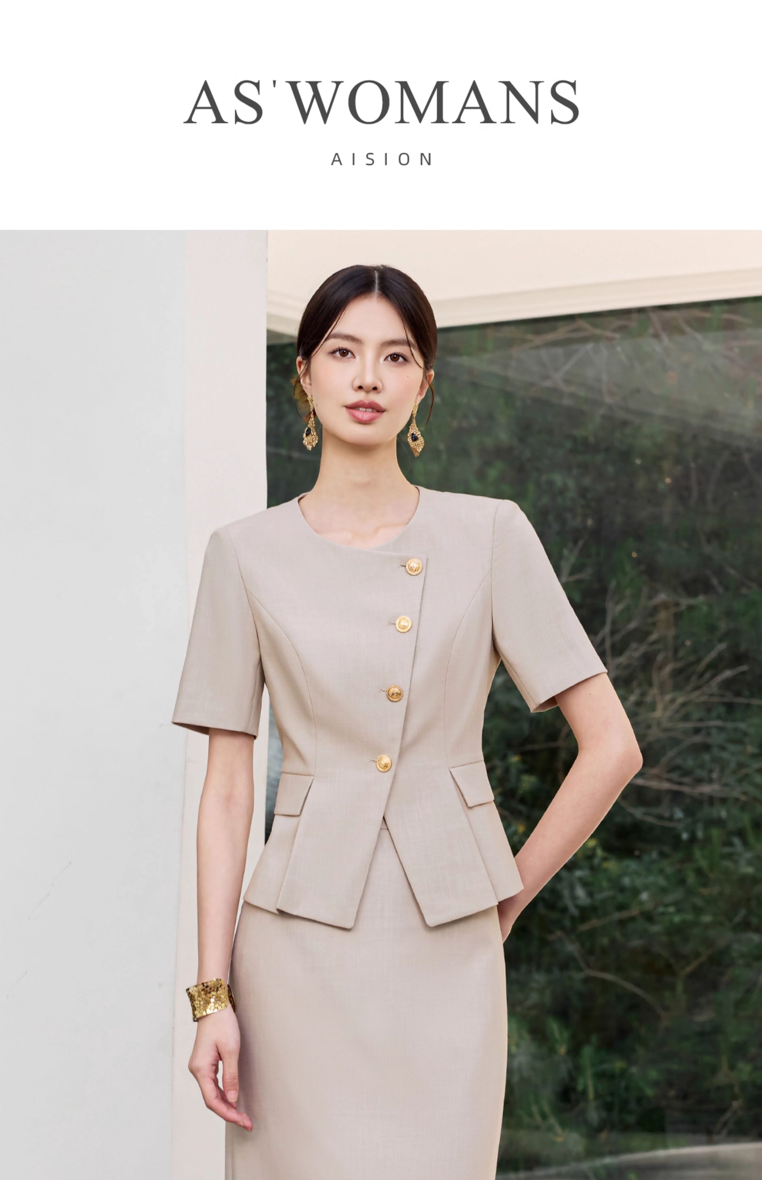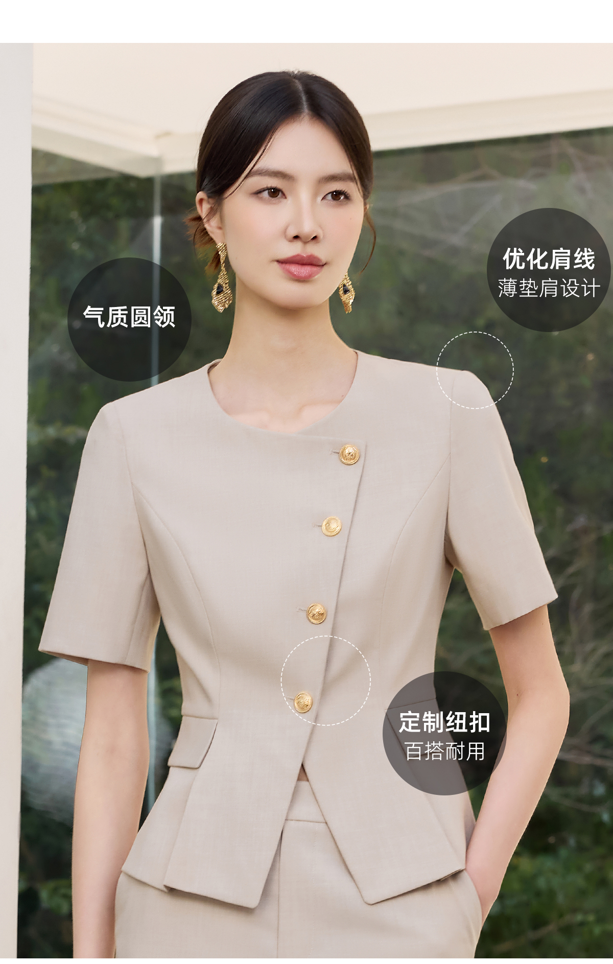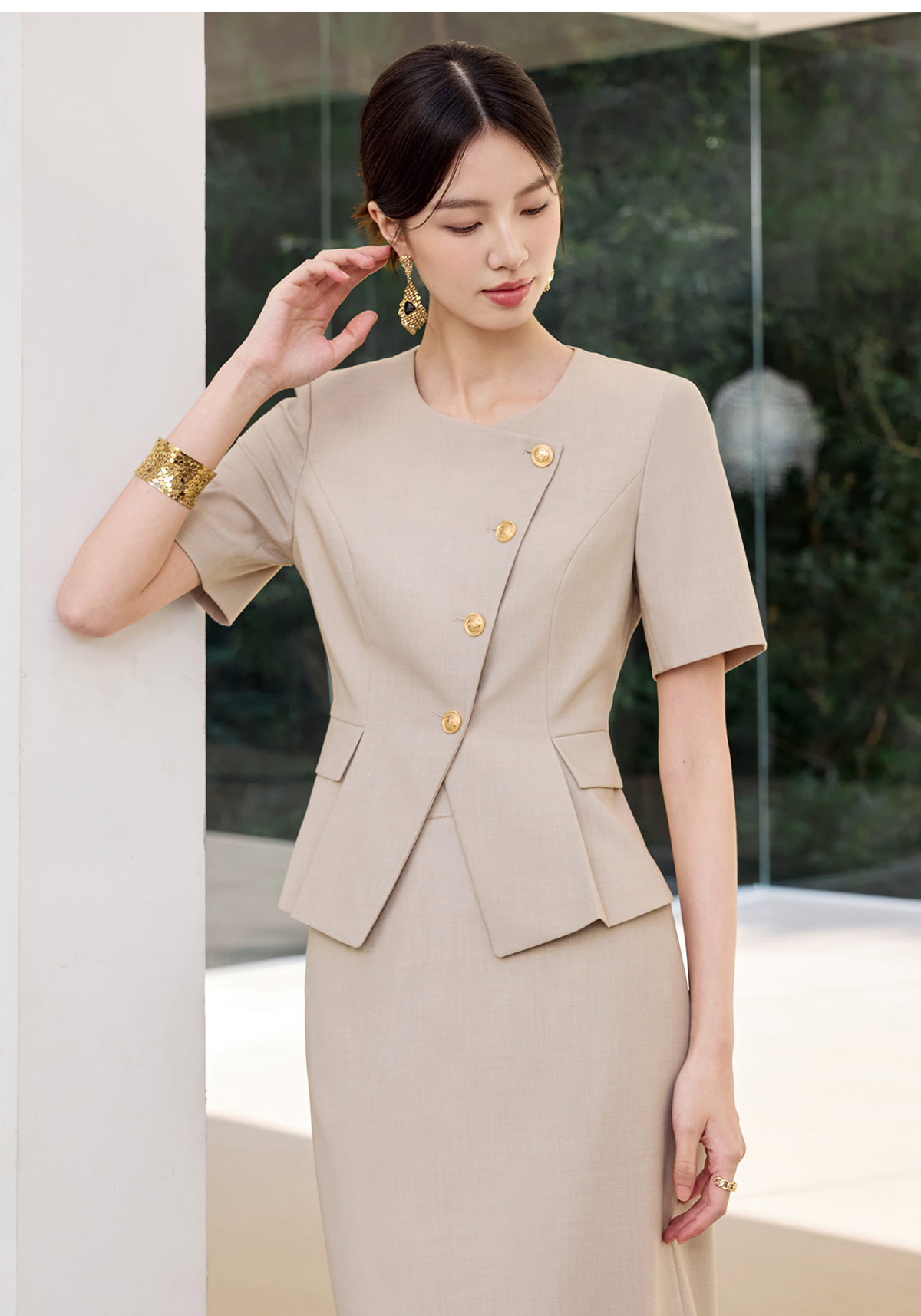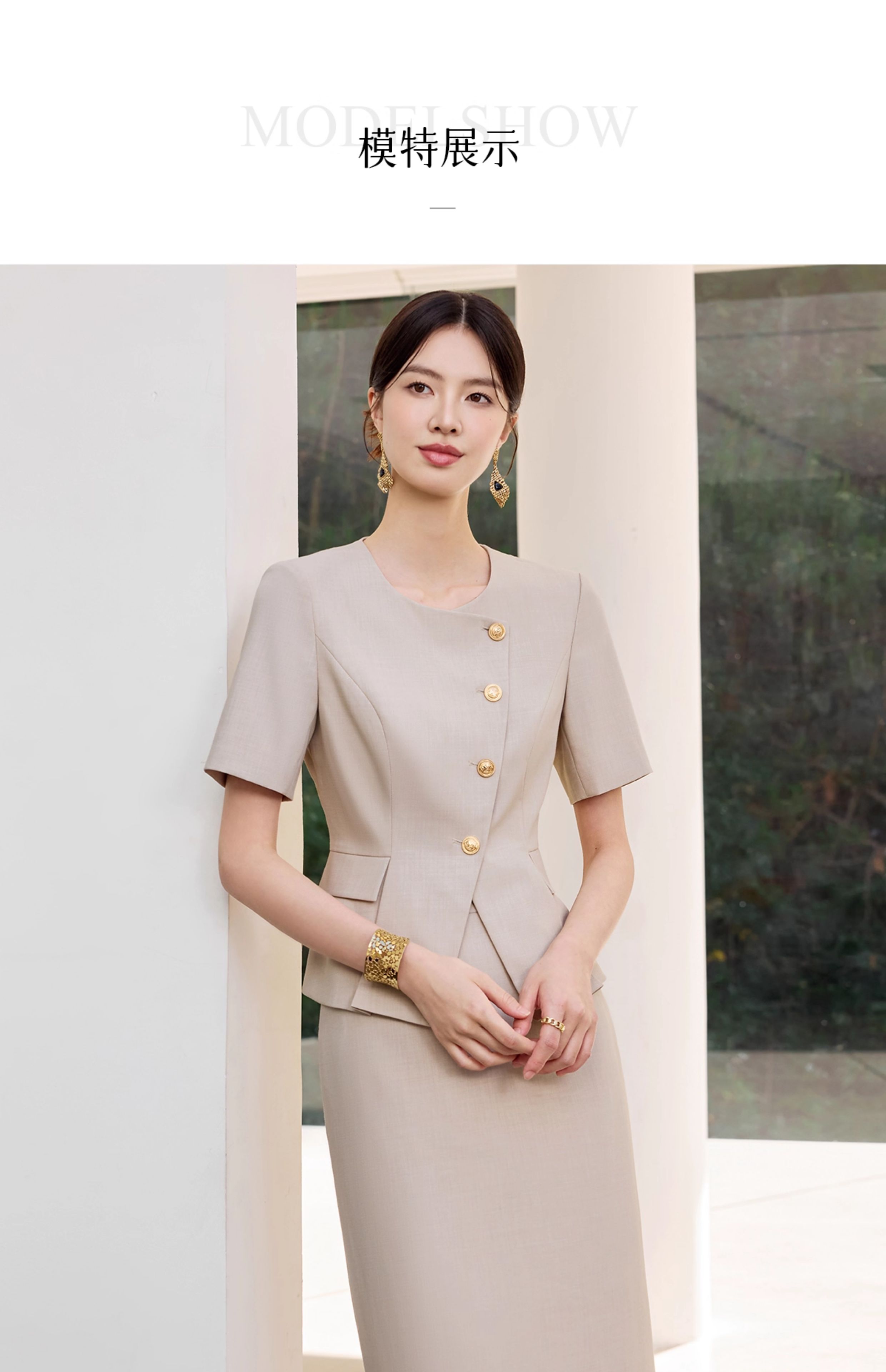 IWY/气质燕麦色短袖西装套裙女正式场合接待工作服干练职业裙装25CS801