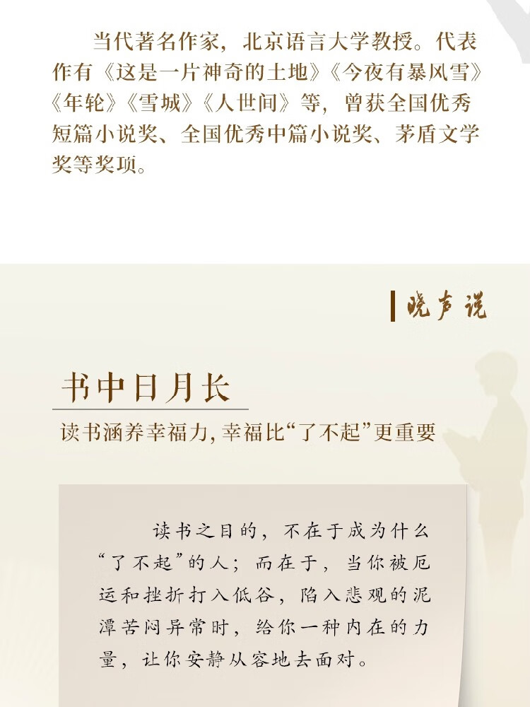梁晓声,当代著名作家,北京语言大学教授。代表作有《这是一片神奇的土地》《今夜有暴风雪》《年轮》《雪城》《人世间》等,曾获全国优秀短篇小说奖、全国优秀中篇小说奖、茅盾文学奖等奖项。