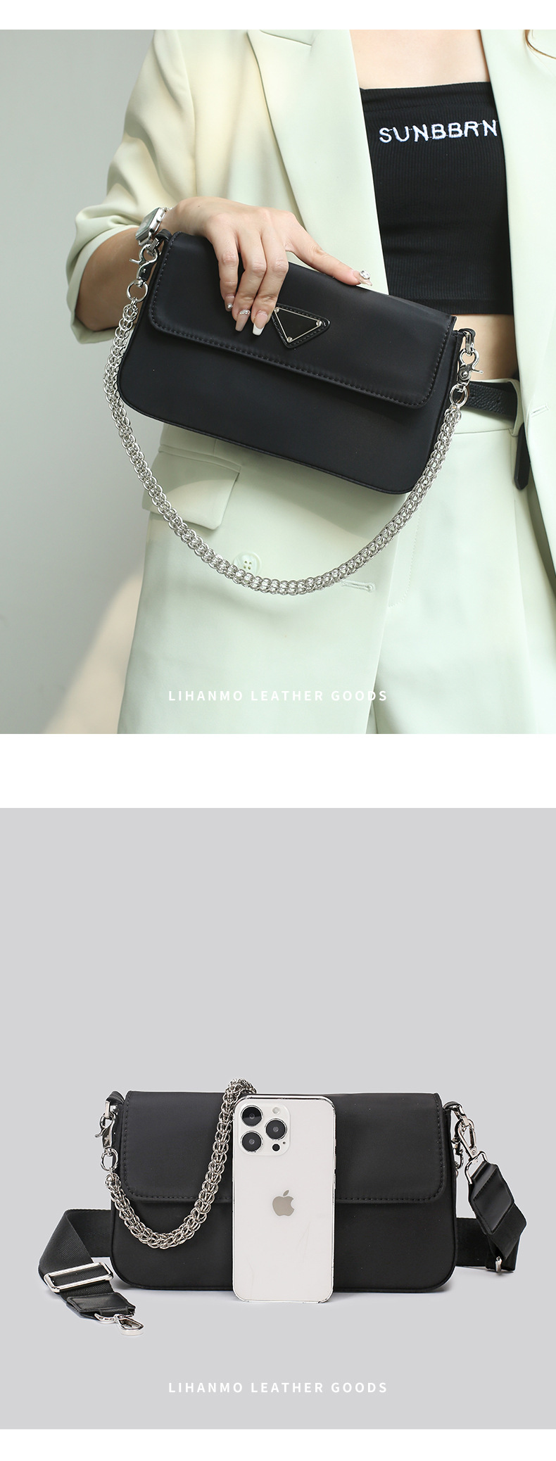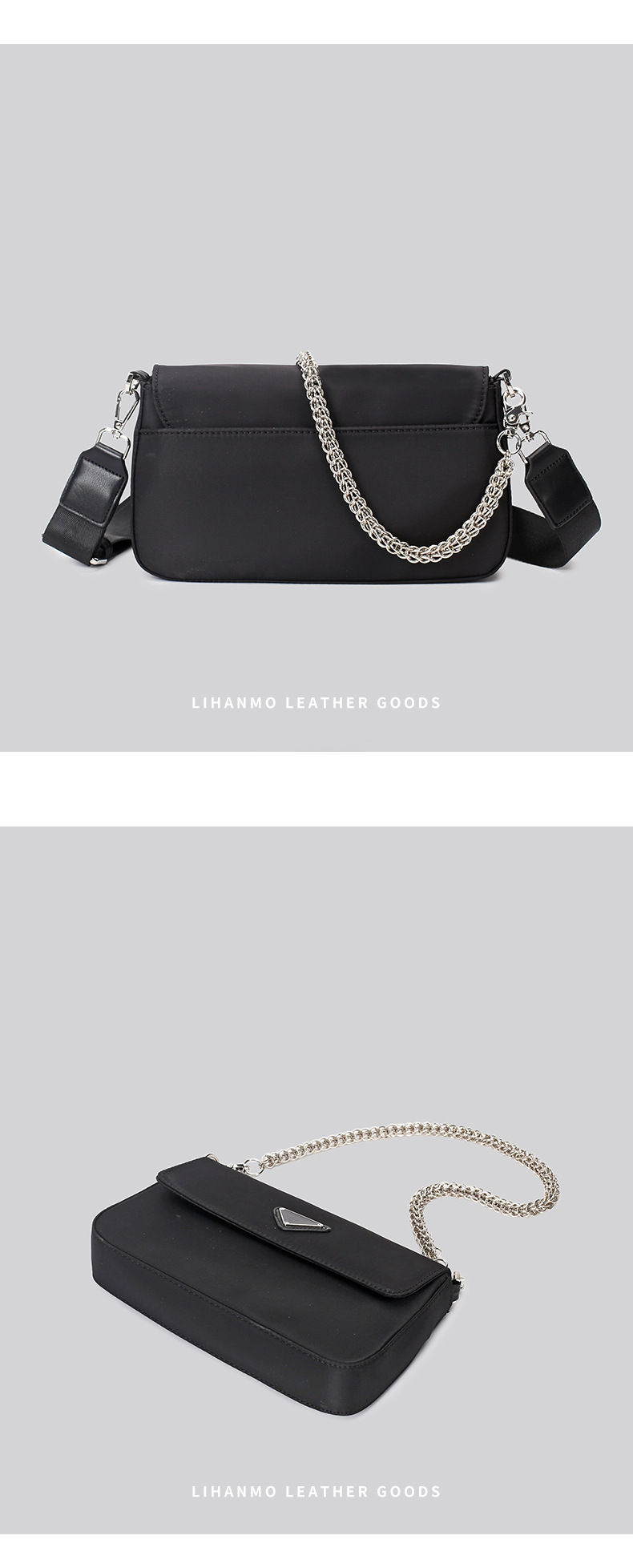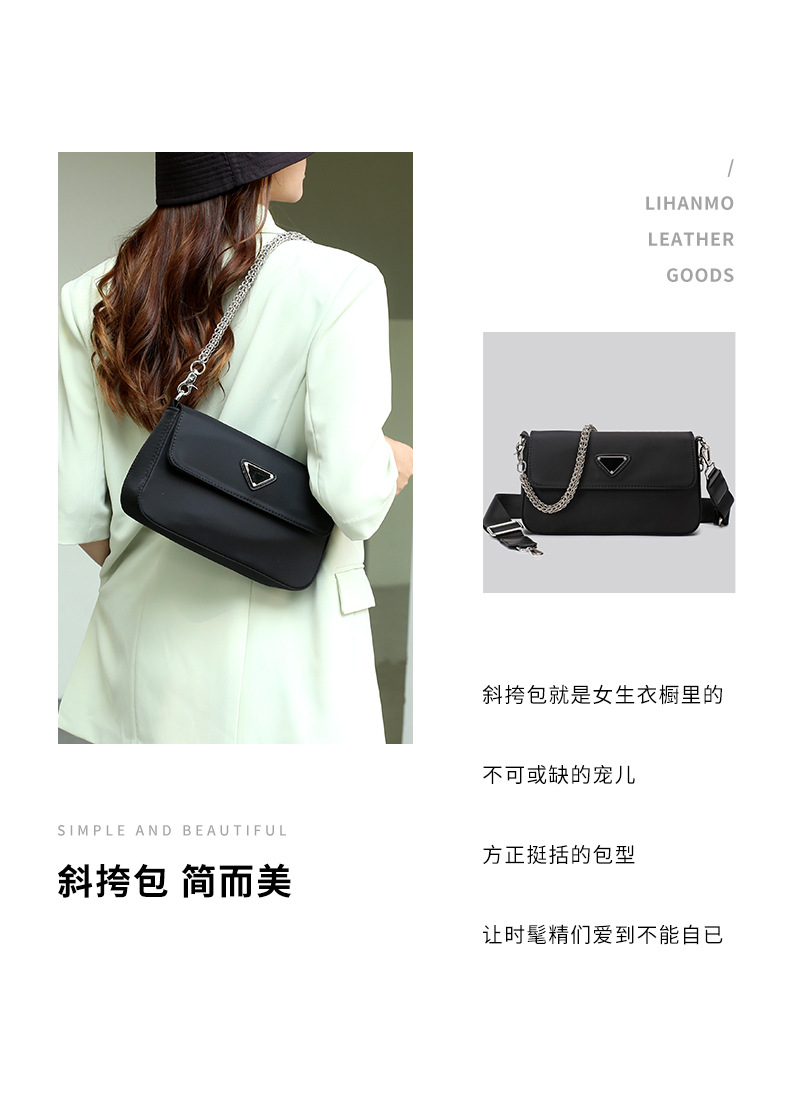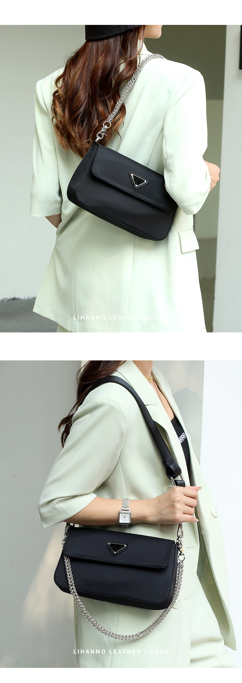 【尼龙单肩腋下包】休闲简约链条 三角标时尚质感 小众设计包包