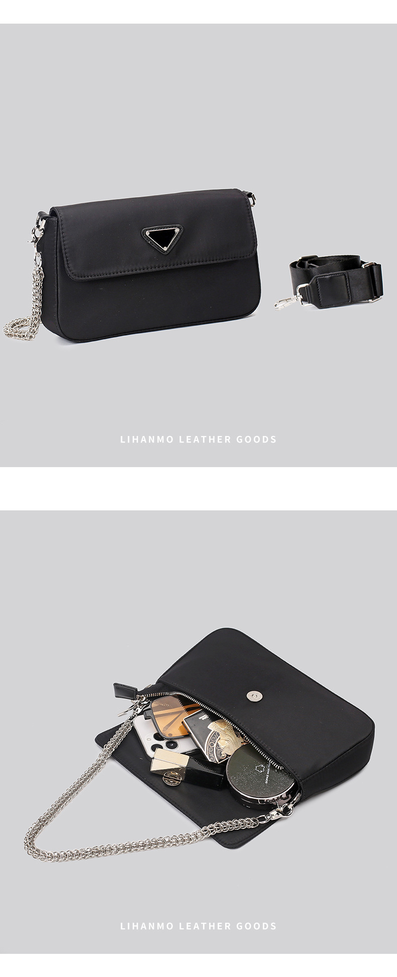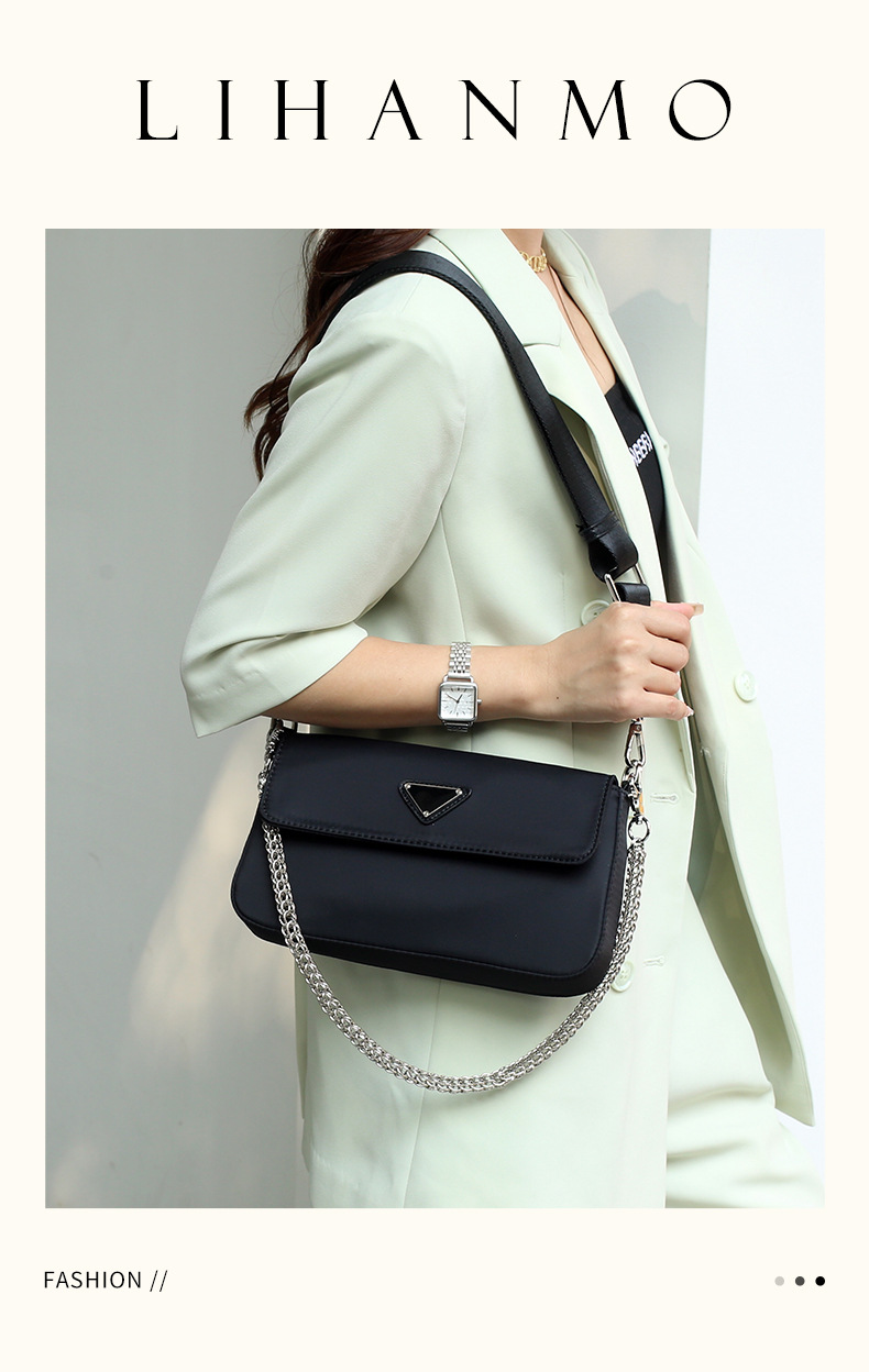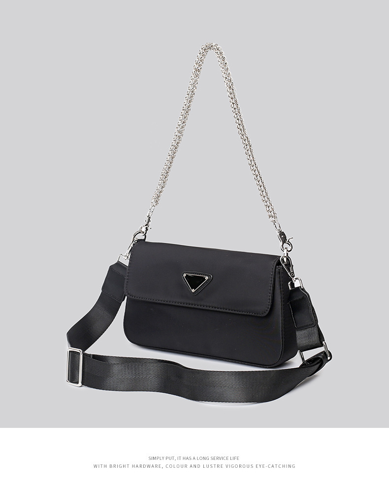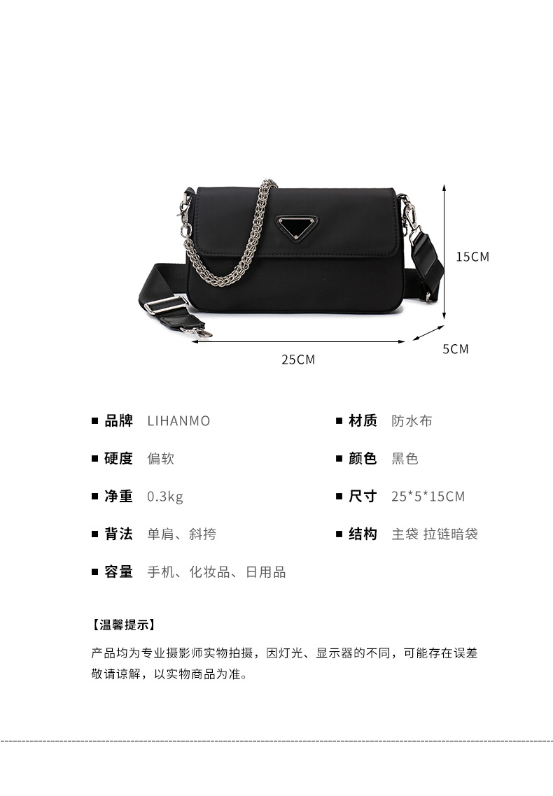 【尼龙单肩腋下包】休闲简约链条 三角标时尚质感 小众设计包包