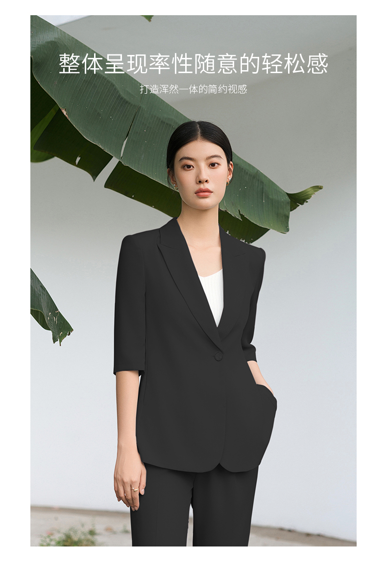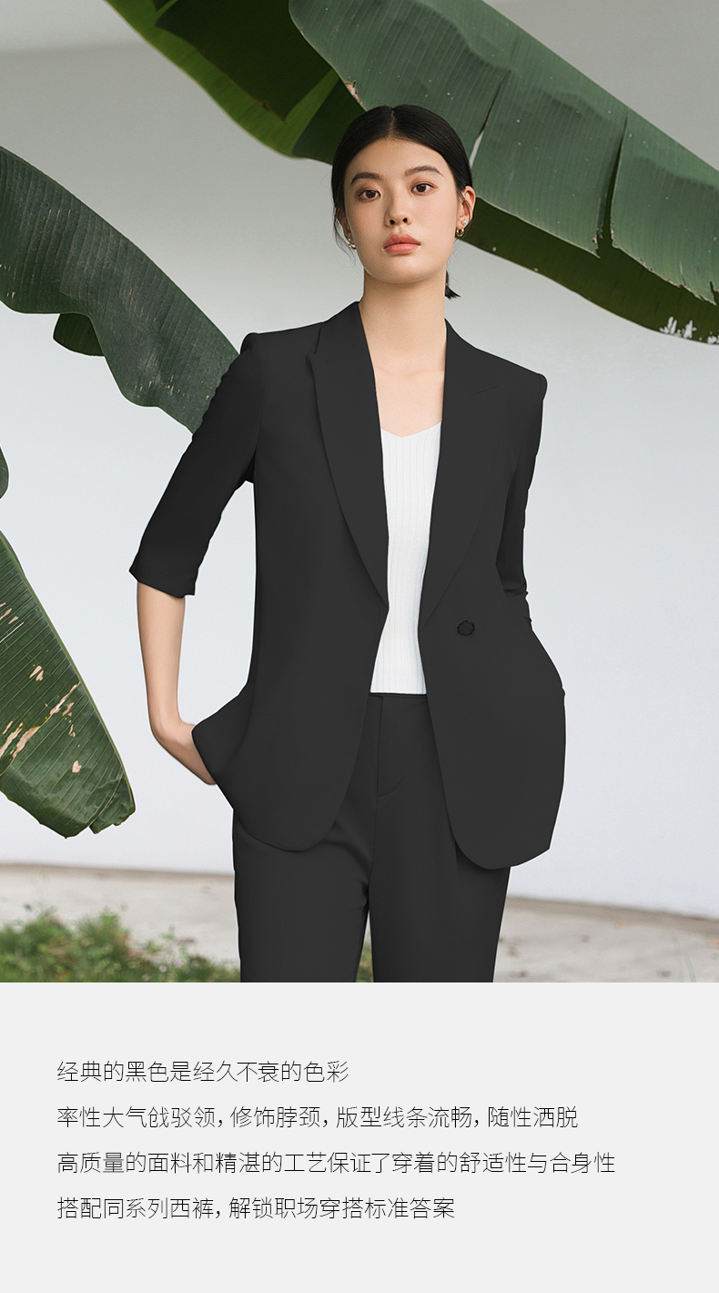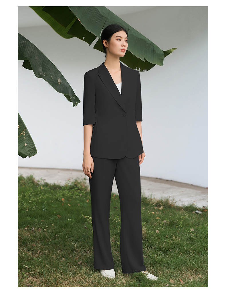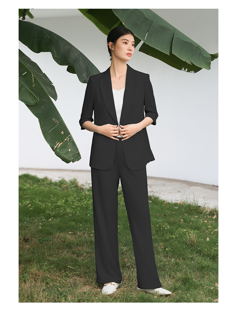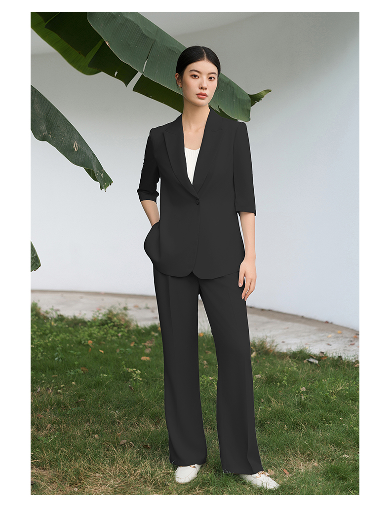IWY/黑色西装套装宽松版休闲七分袖高级通勤商务慵懒版职业装西服C13512+P33512黑色