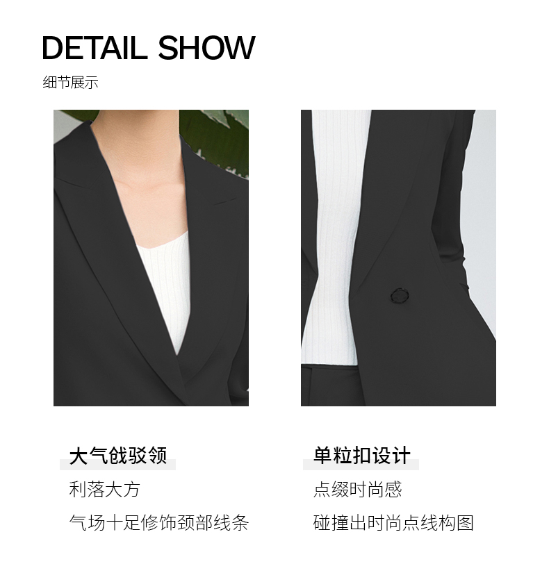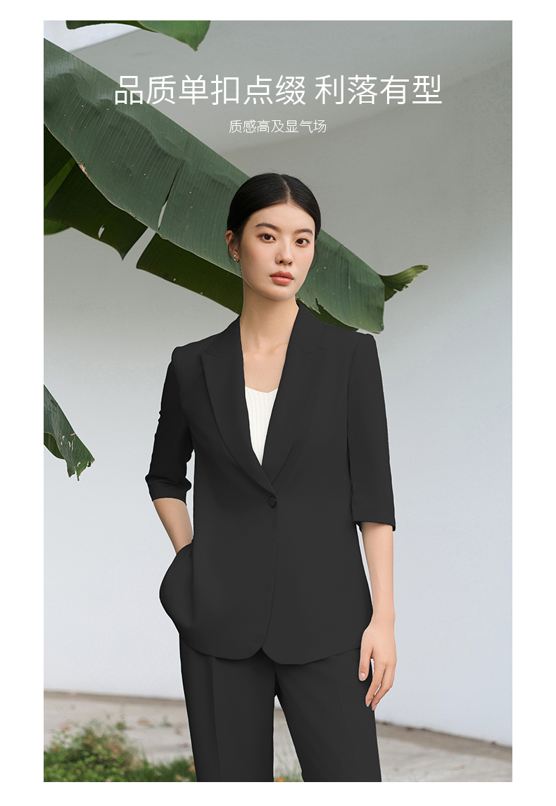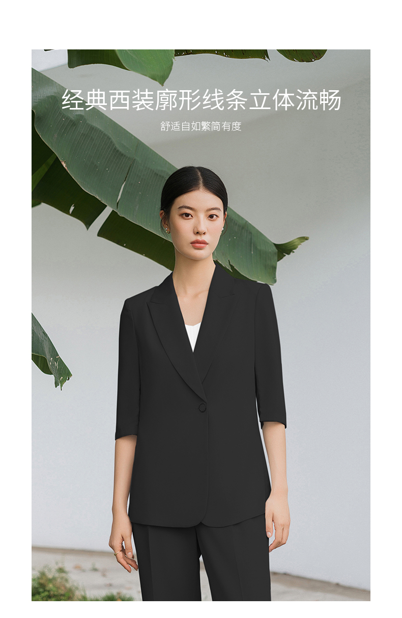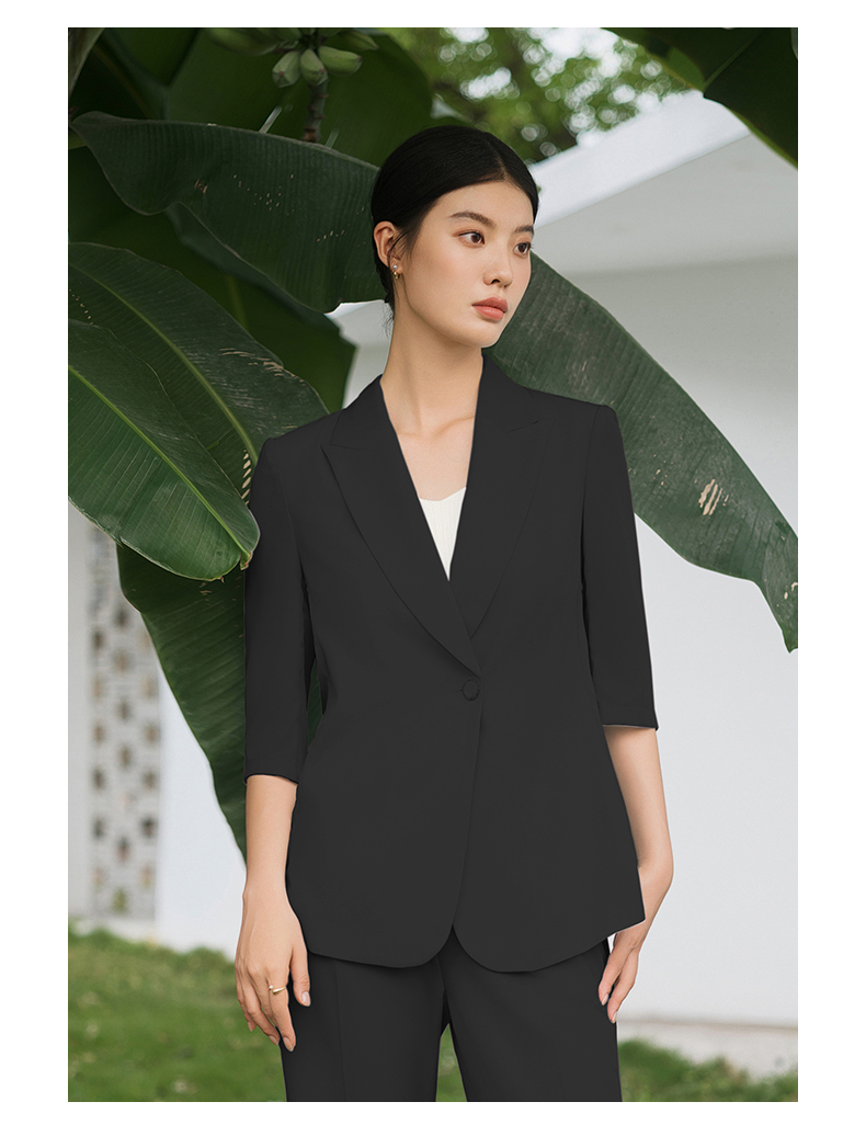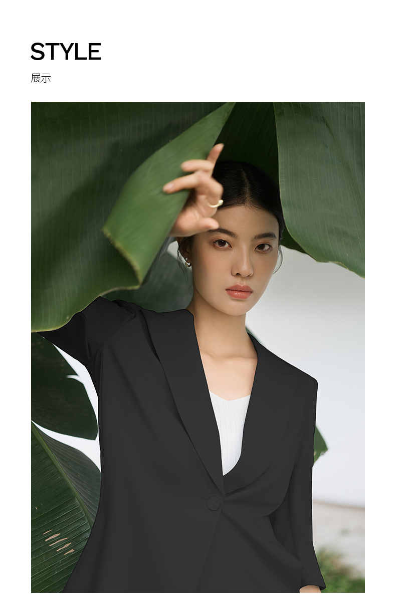 IWY/黑色西装套装宽松版休闲七分袖高级通勤商务慵懒版职业装西服C13512+P33512黑色