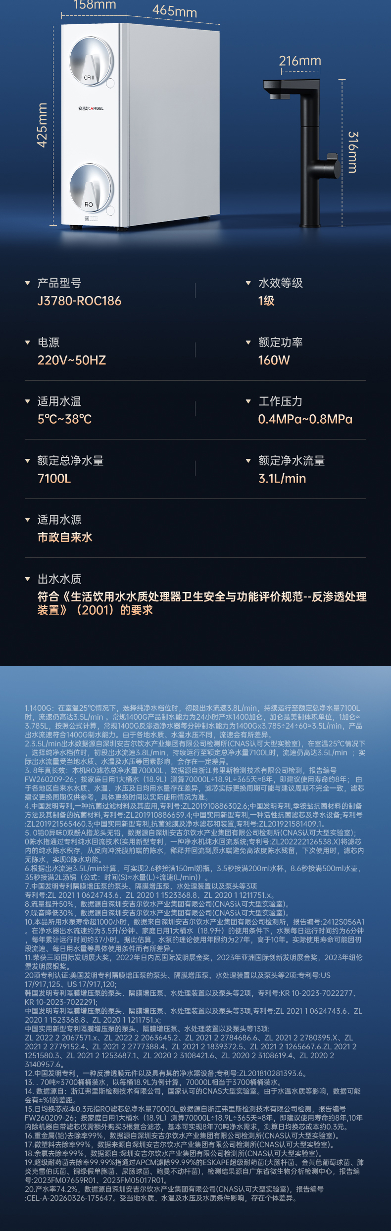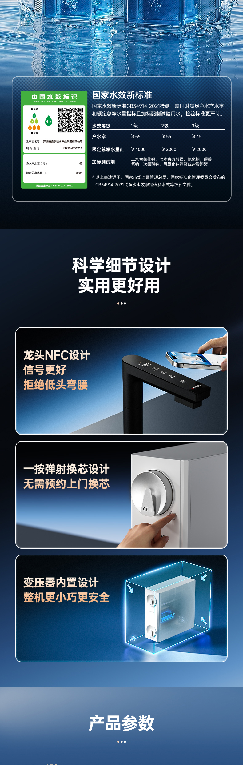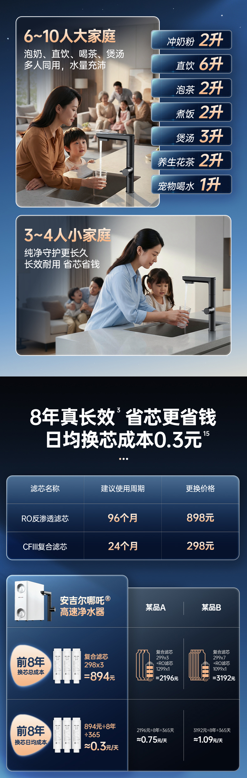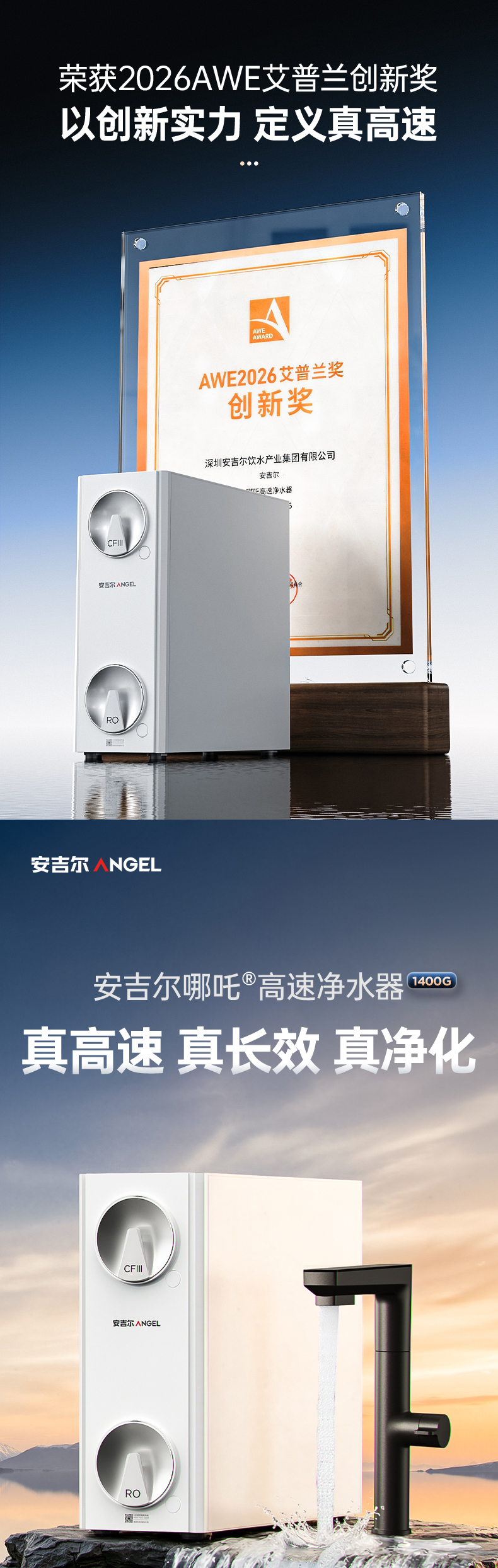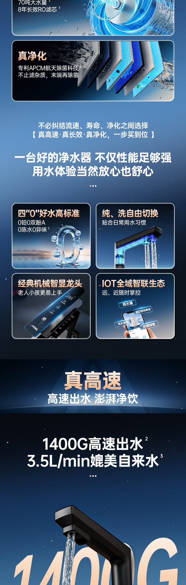 安吉尔哪吒高速净水器1400G家用净水器J3780-ROC186