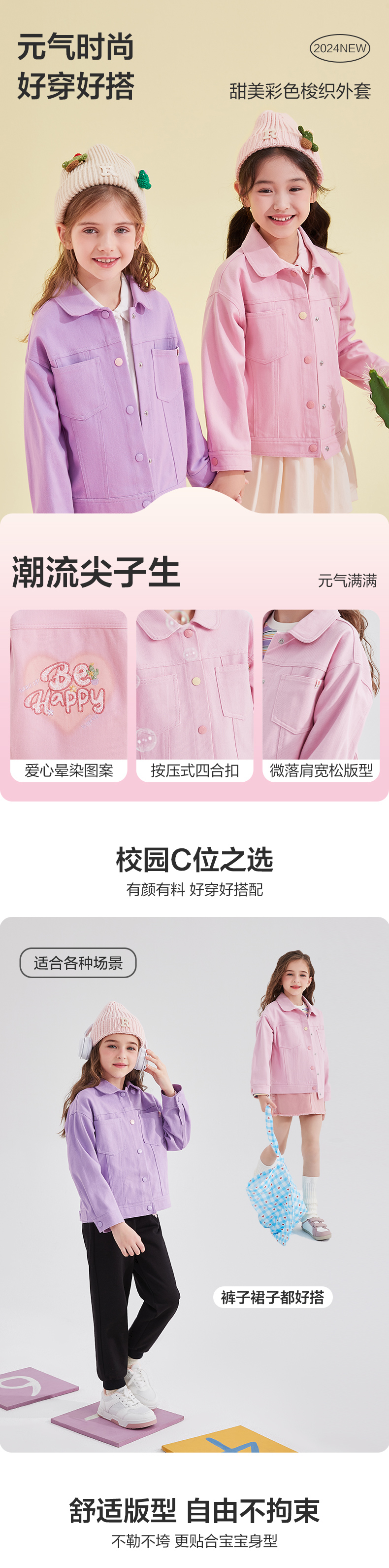 笛莎Deesha 童装女童外套2024春季新款中大童时尚外套
