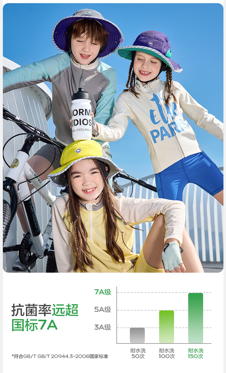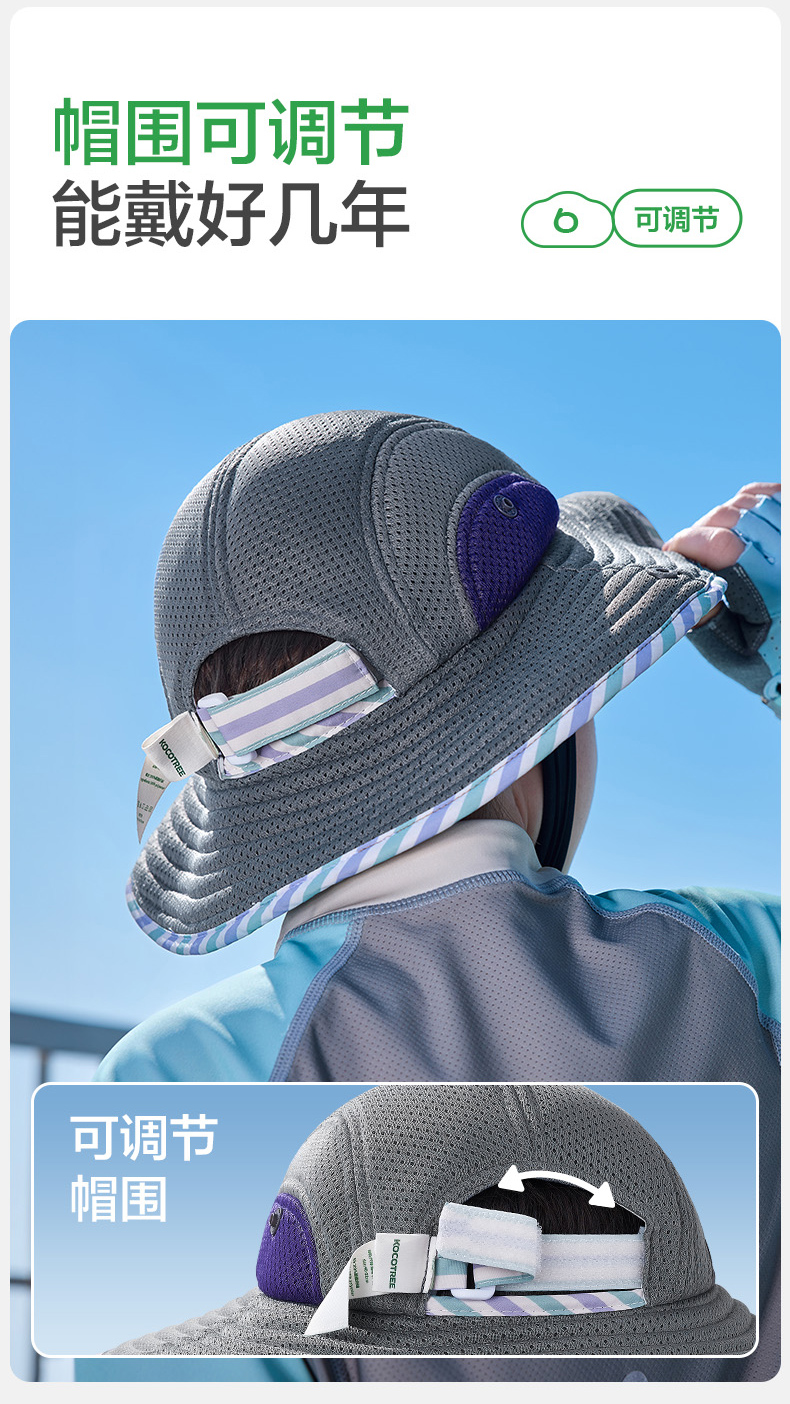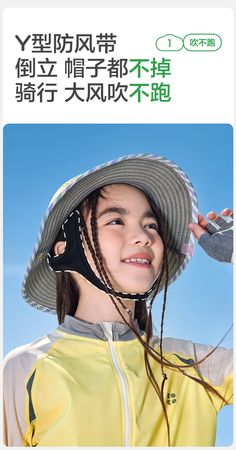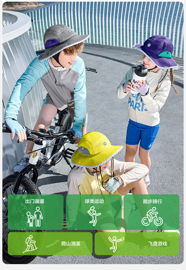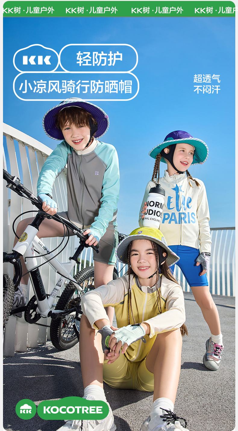 KK树骑行儿童防晒帽男童女孩宝宝帽子春秋遮阳防紫外线渔夫帽户外小凉风骑行防晒帽