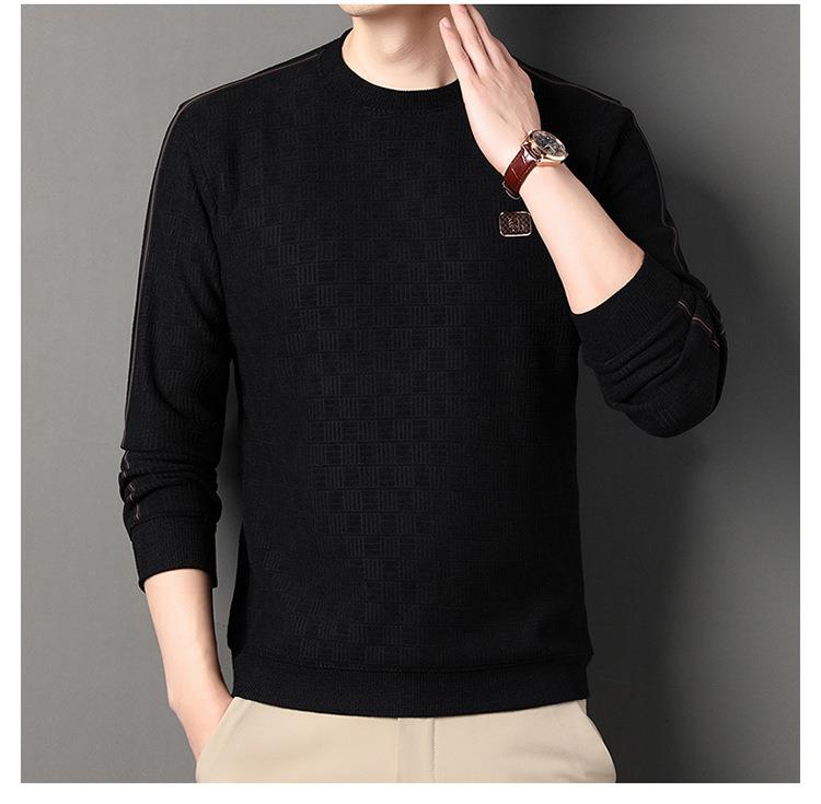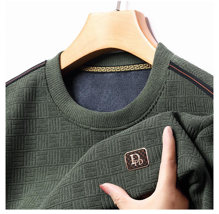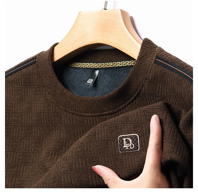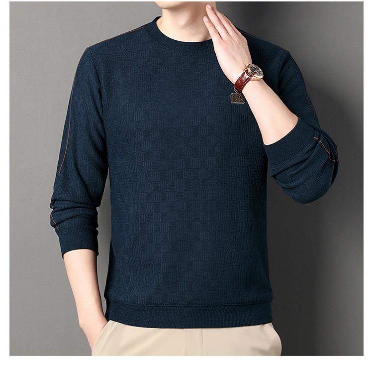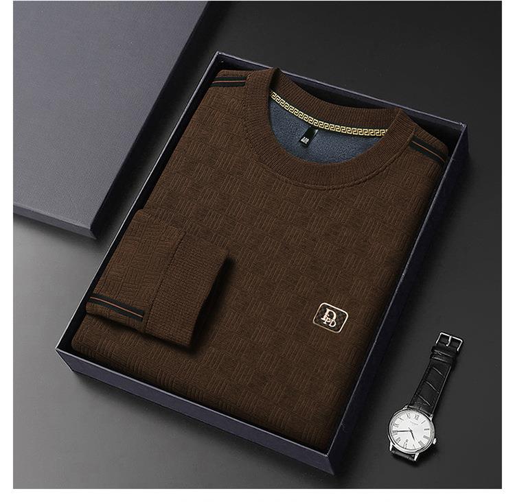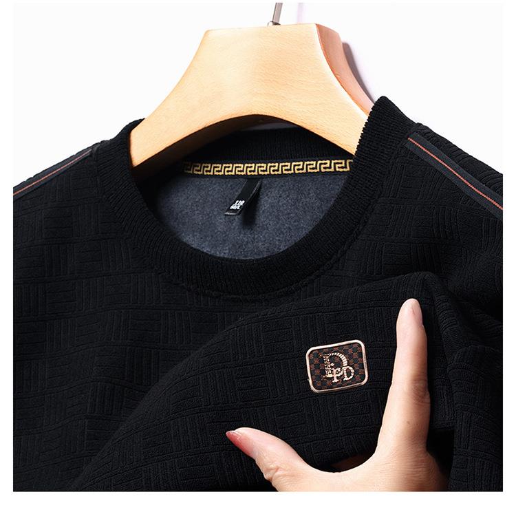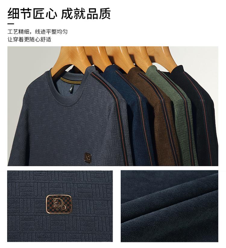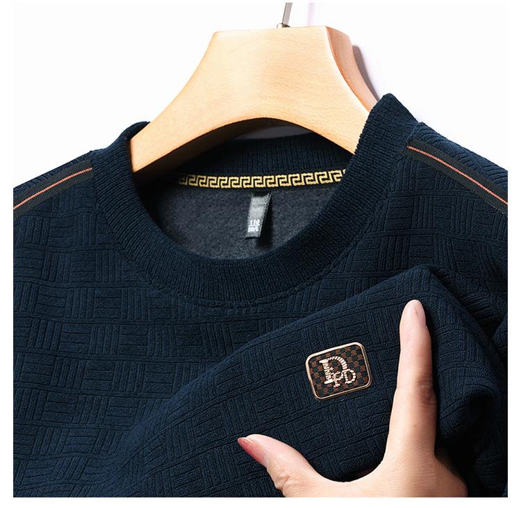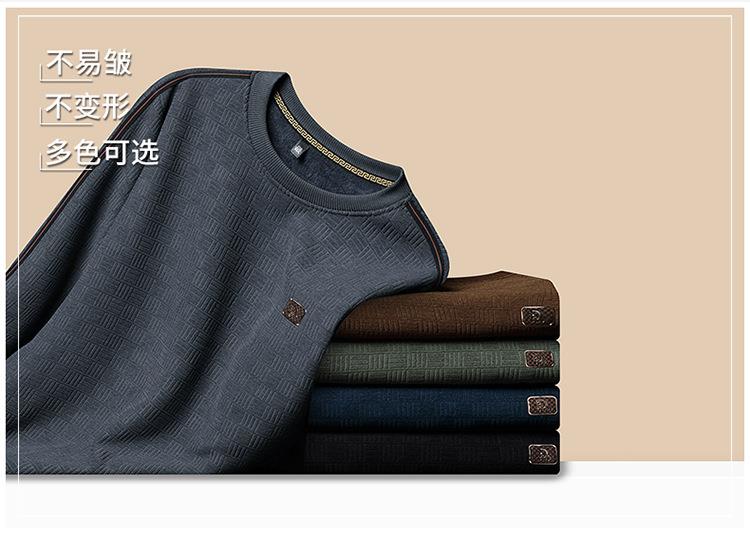 加绒加厚针织衫男式秋冬季新款保暖麻将格打底衫毛衣