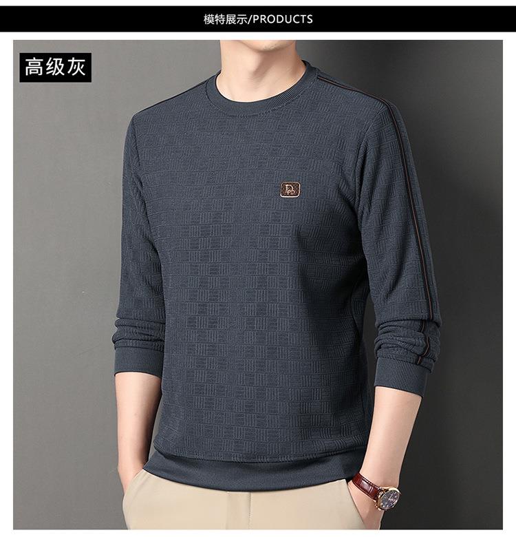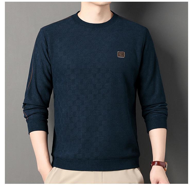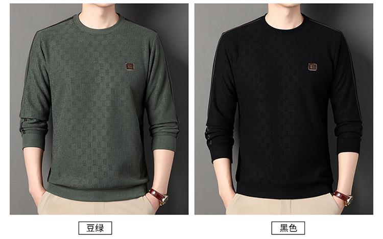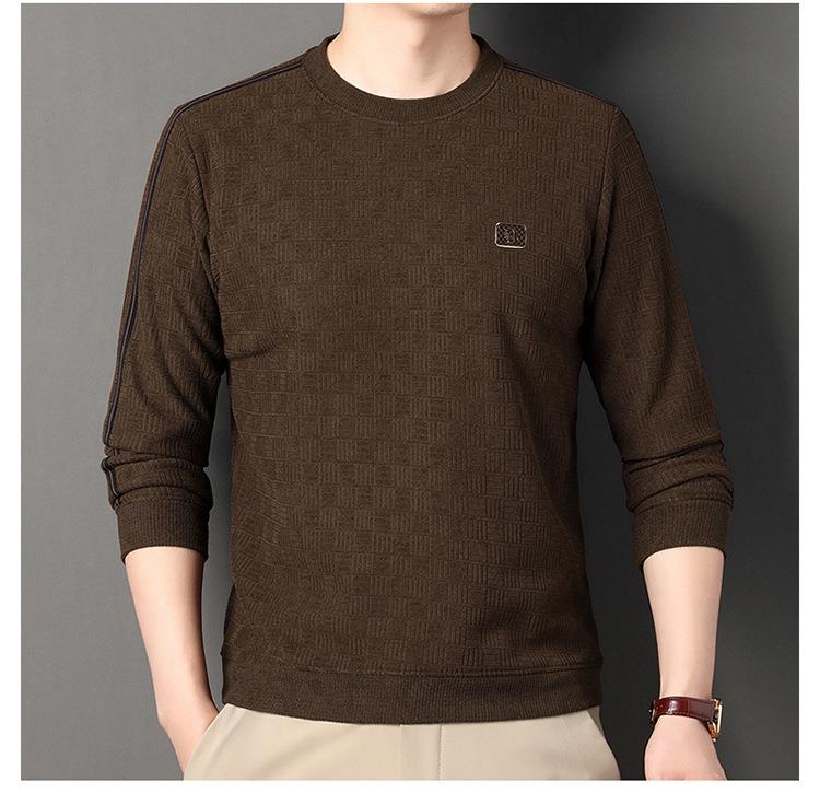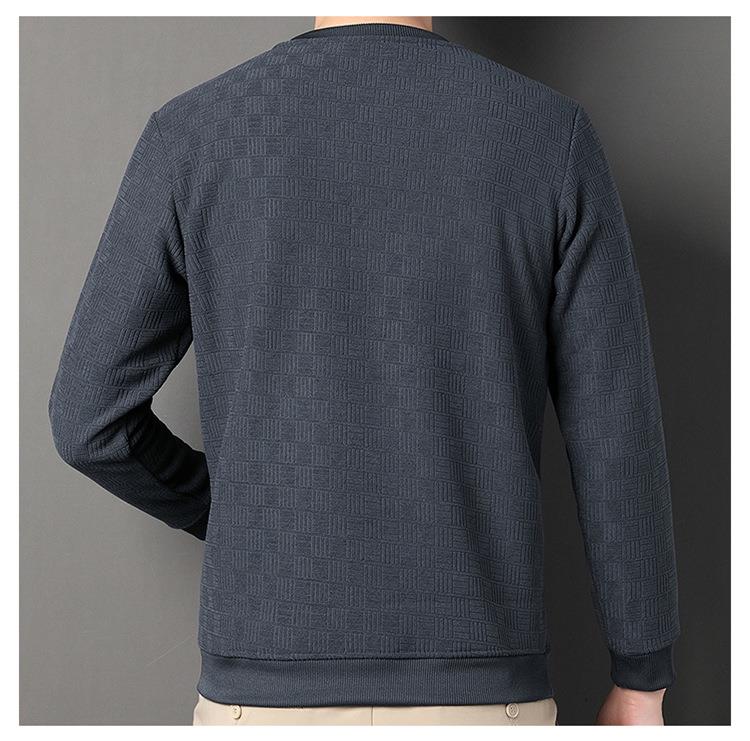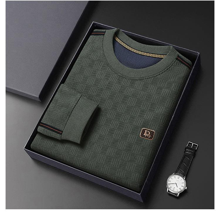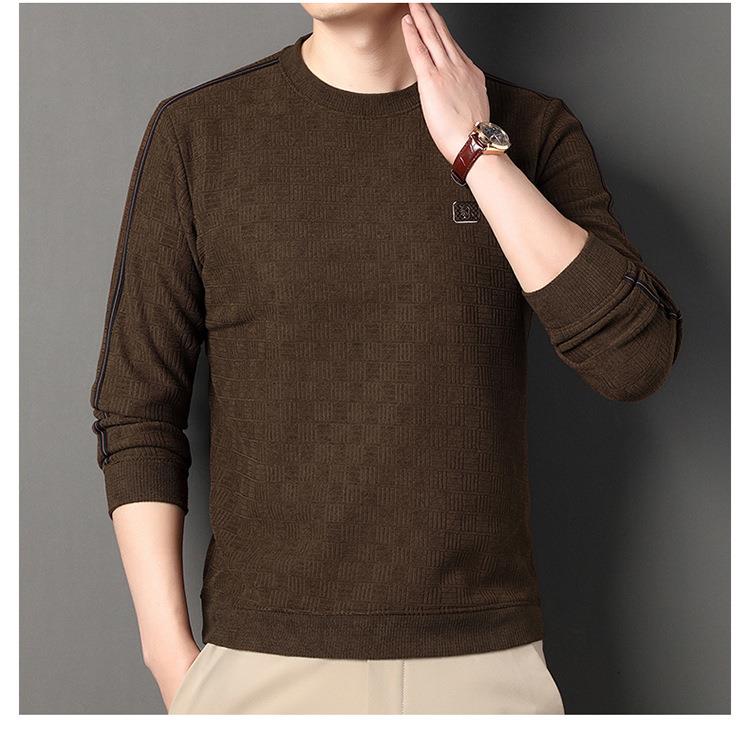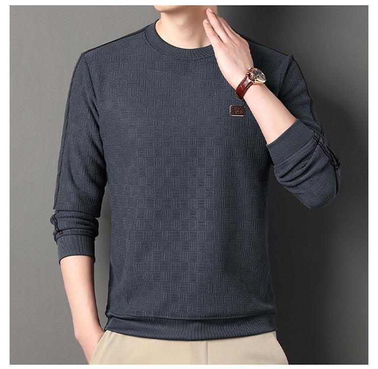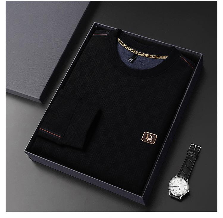 加绒加厚针织衫男式秋冬季新款保暖麻将格打底衫毛衣