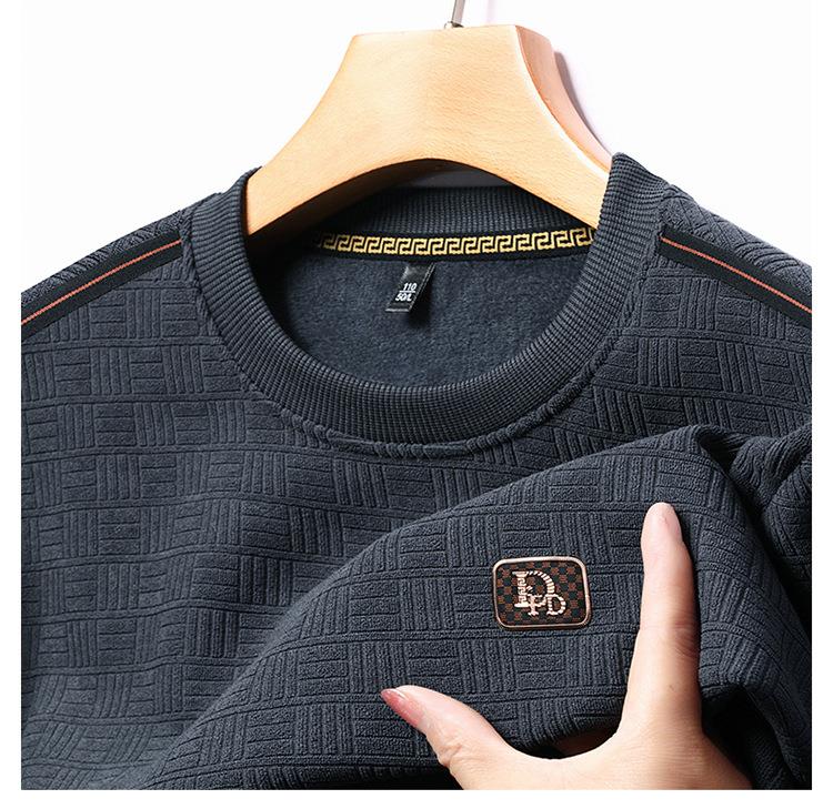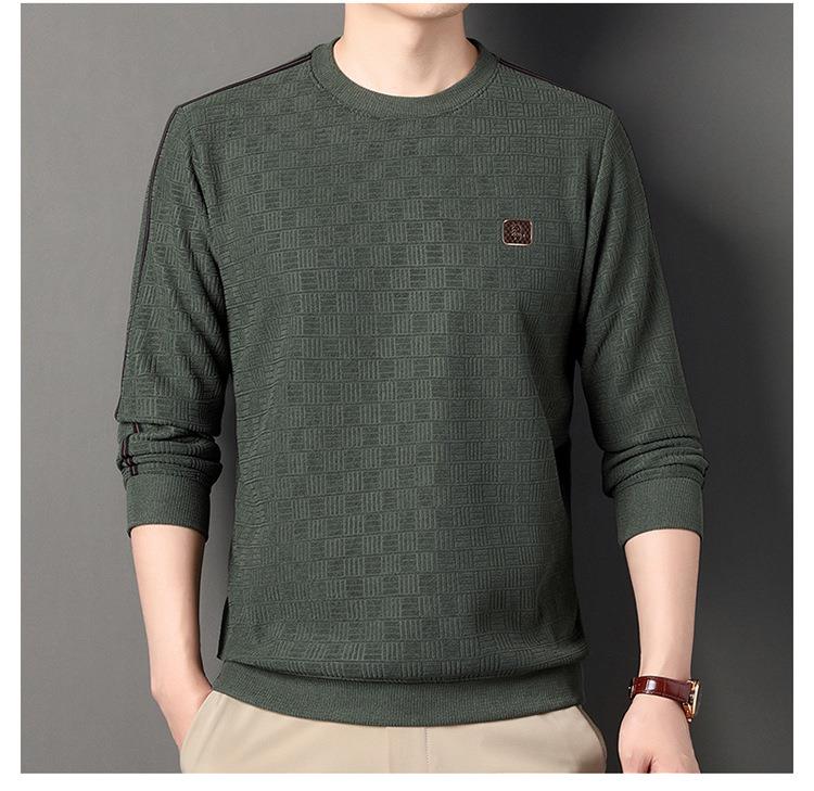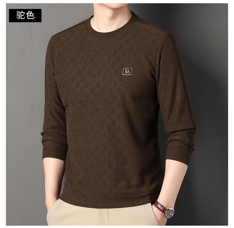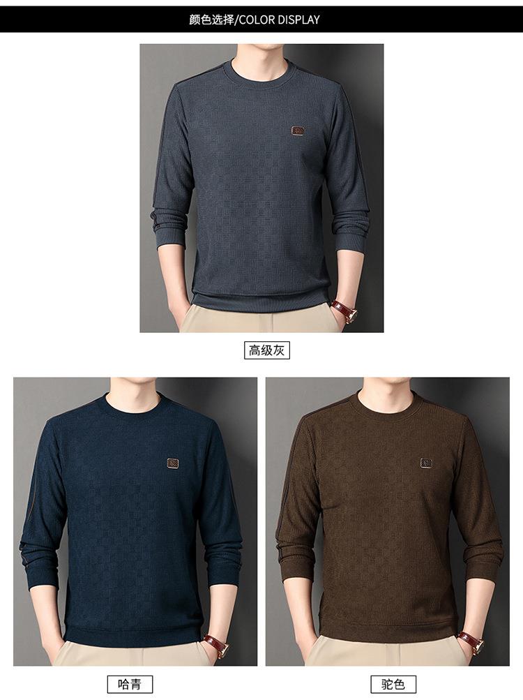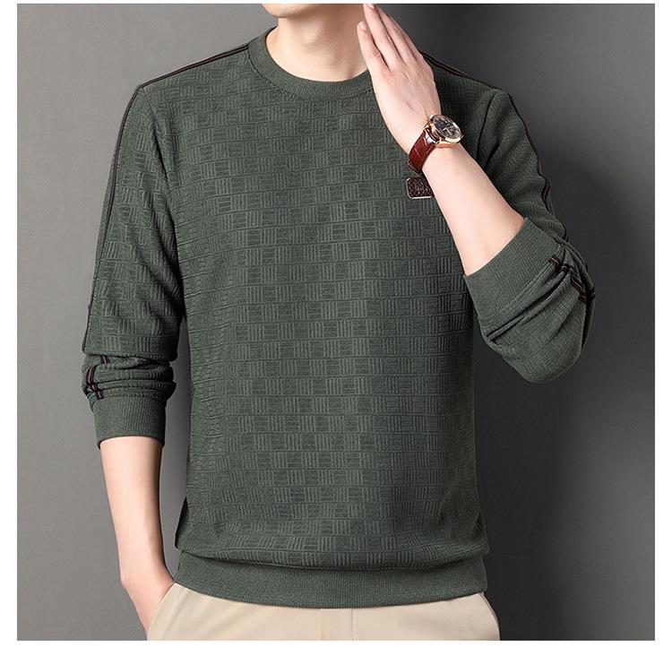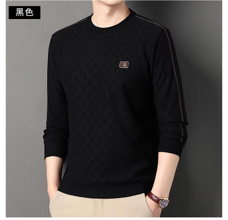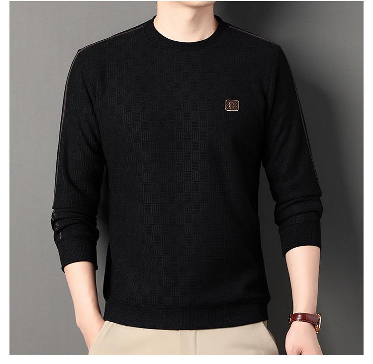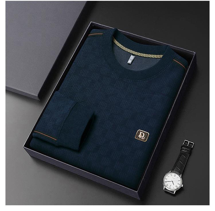 加绒加厚针织衫男式秋冬季新款保暖麻将格打底衫毛衣