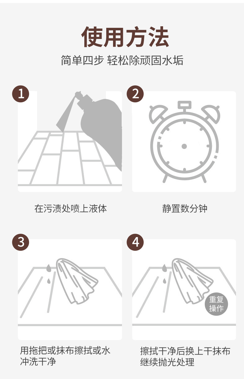 【使用范围】适用于瓷砖地板、木质家具、木器等木制品深层清洁和护理