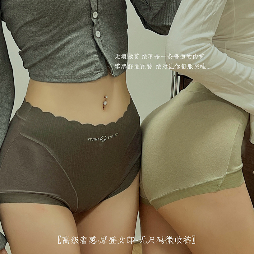 抢4条特惠【高级奢感 摩登女郎】无尺码微收裤 高腰收腹内裤女士 桑蚕丝抑菌裆无痕透气 大码包臀三角裤头2024新款