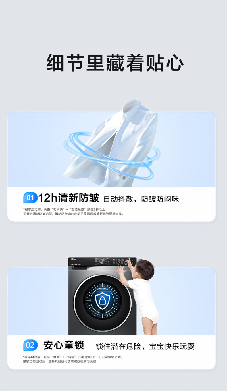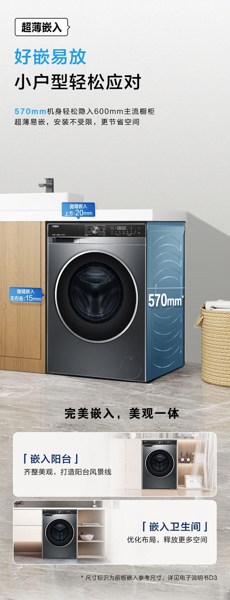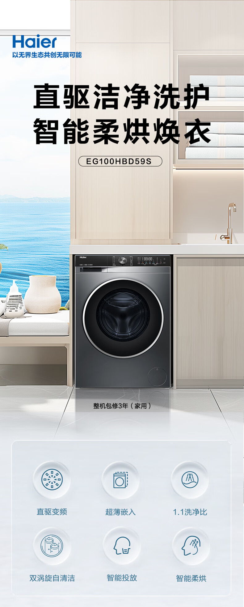 海尔滚筒洗衣机全自动 洗烘一体机 超薄全嵌10公斤大容量 智能投放 1.1洗净比 双涡旋自清洁 10KG超薄直驱洗烘一体【内衣洗 羽绒洗 空气洗】EG100HBD59S