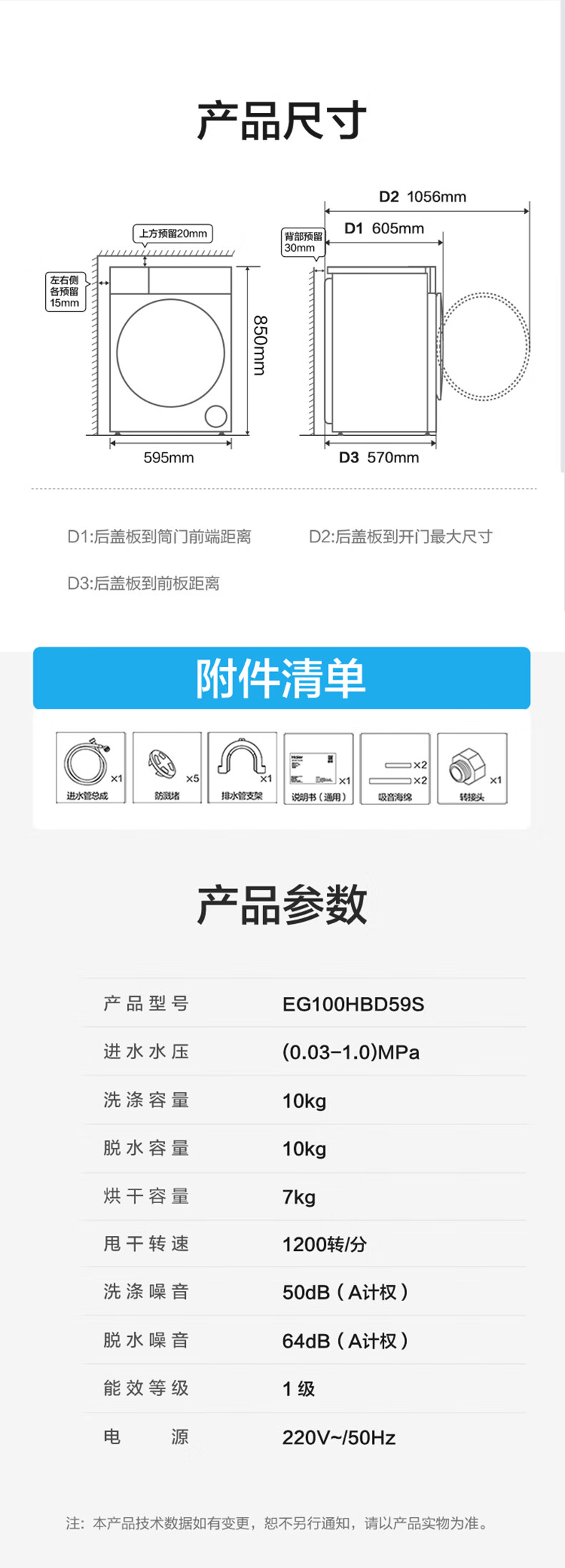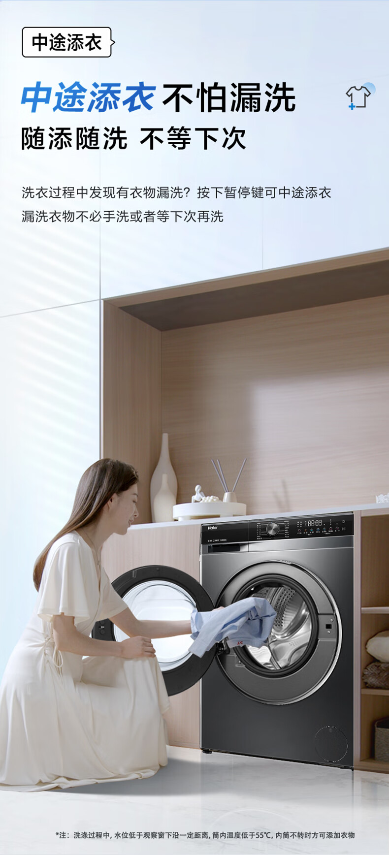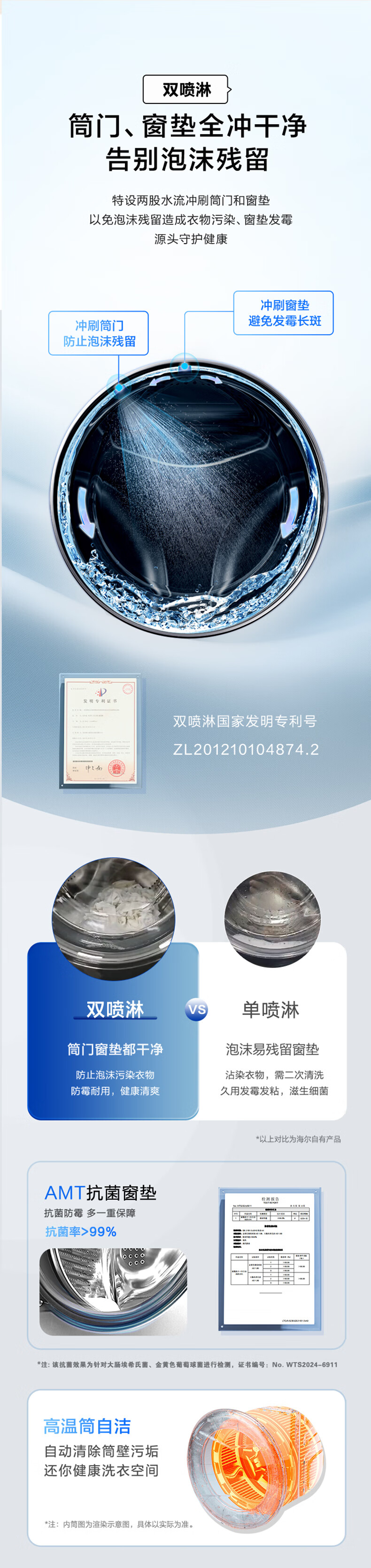 海尔滚筒洗衣机全自动 洗烘一体机 超薄全嵌10公斤大容量 智能投放 1.1洗净比 双涡旋自清洁 10KG超薄直驱洗烘一体【内衣洗 羽绒洗 空气洗】EG100HBD59S