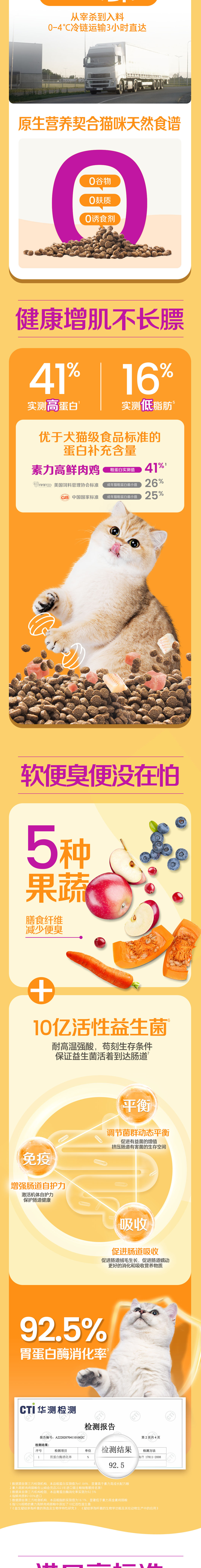 【新品上架】素力高鲜肉鸡成猫猫粮 12磅 生鲜无谷鸡 高蛋白低脂肪 5种果蔬+活菌 肠道健康 保质期到2027年1月