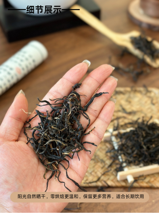 apos;! **百年非遗工艺** • 拒绝机器烘焙!沿用祖辈"纯日晒"古法 • 72小时阳光自然萎凋,0添加0火工 • 像晒果脯一样温柔锁住活性营养 **看得见的品质** √ 茶干乌润显金毫,古树原料一眼辨真 √ 汤色琥珀透金,久放不浑不浊 √ 叶底肥厚柔软,15泡后仍鲜活如初 🔬 **科学验证的养生价值** 经SGS检测:茶黄素含量超国标200% • 茶多糖温和调理血糖 • 特殊晒制工艺,胃寒人群也能畅饮 🌳 **时光馈赠的滋味** 新茶:鲜灵蜜香,阳光味十足 陈放:转化出枣香药香,价值翻倍