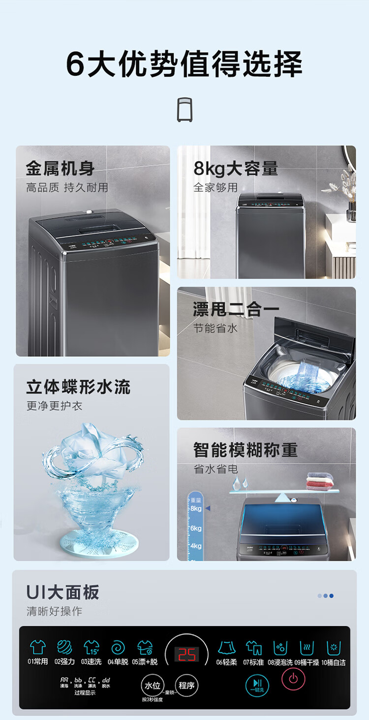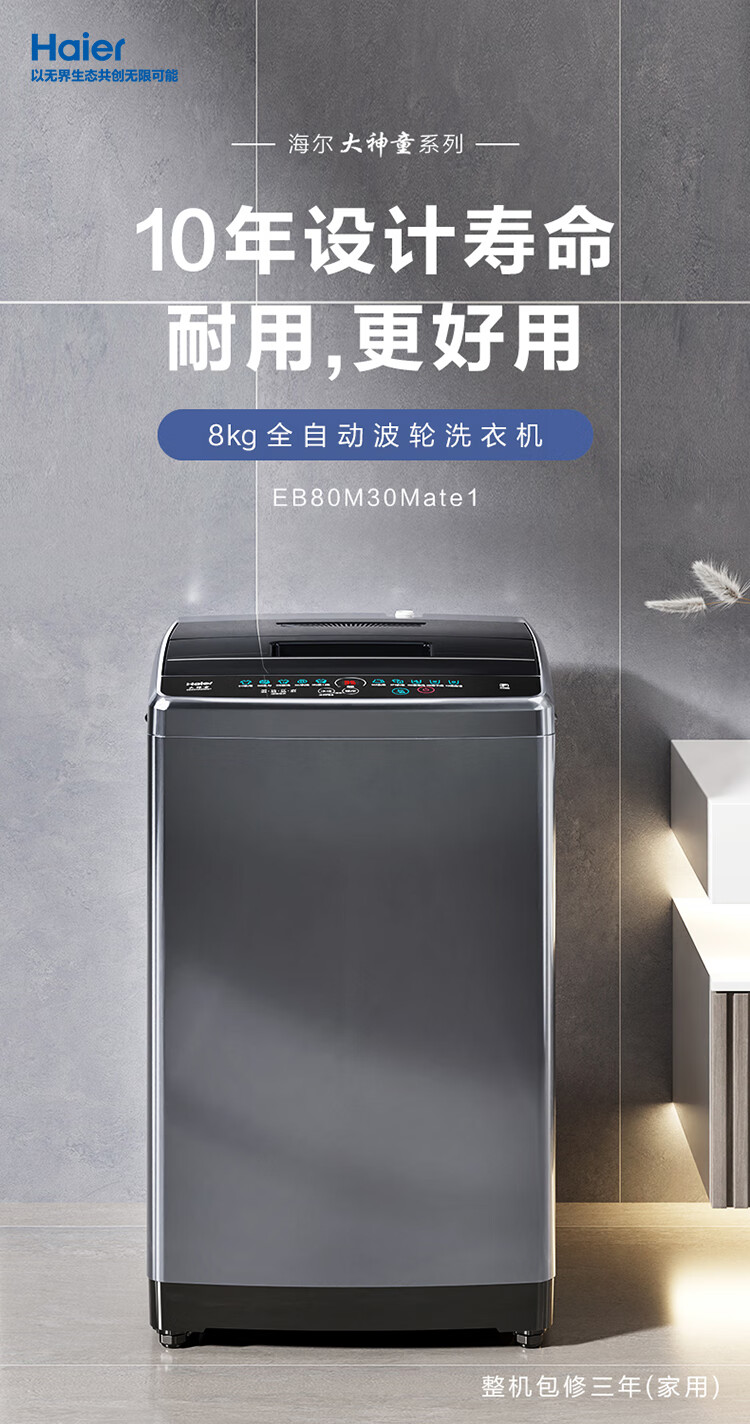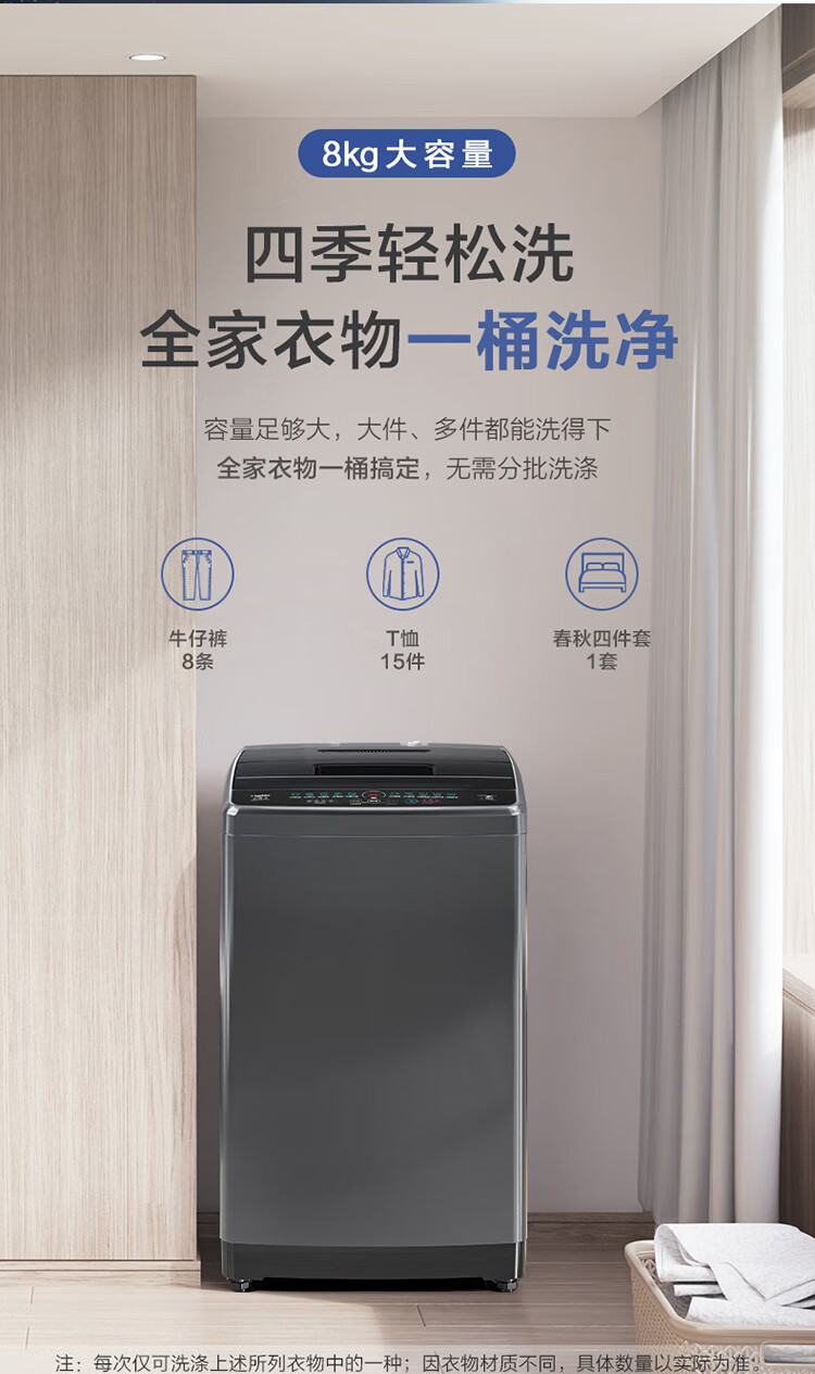 海尔(Haier)波轮洗衣机小型全自动家用 8公斤 宿舍出租房神器