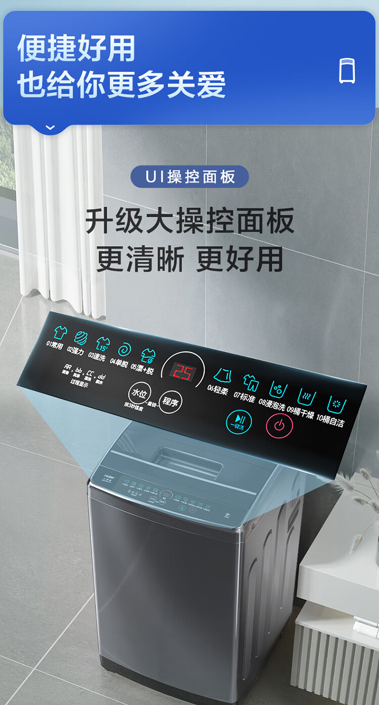 【精华洗直驱176】海尔超薄10kg滚筒洗衣机全自动 紫外除菌XQG100-BD176PLUSLU1【376相似款】