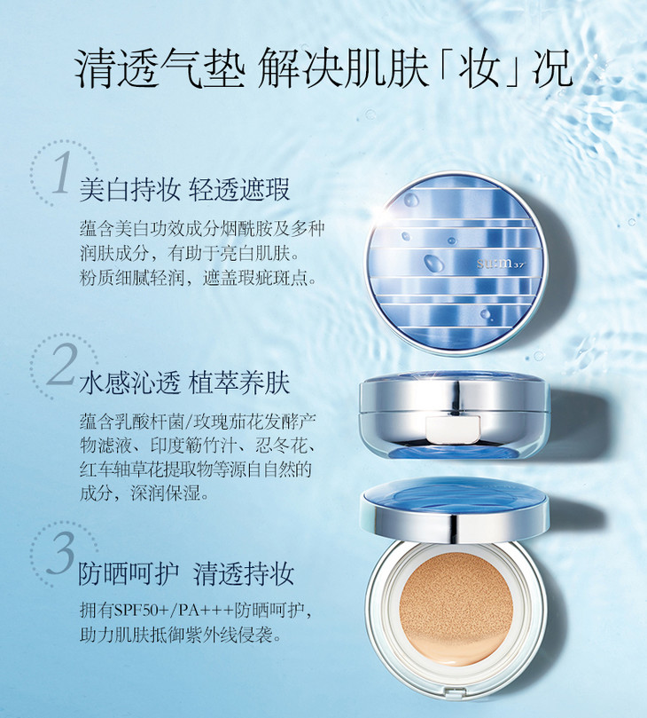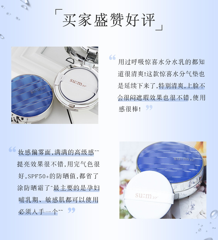 韩国SUM:37呼吸气垫水份惊喜限量款气垫CC遮瑕保湿孕妇可用1+2个替换 包邮