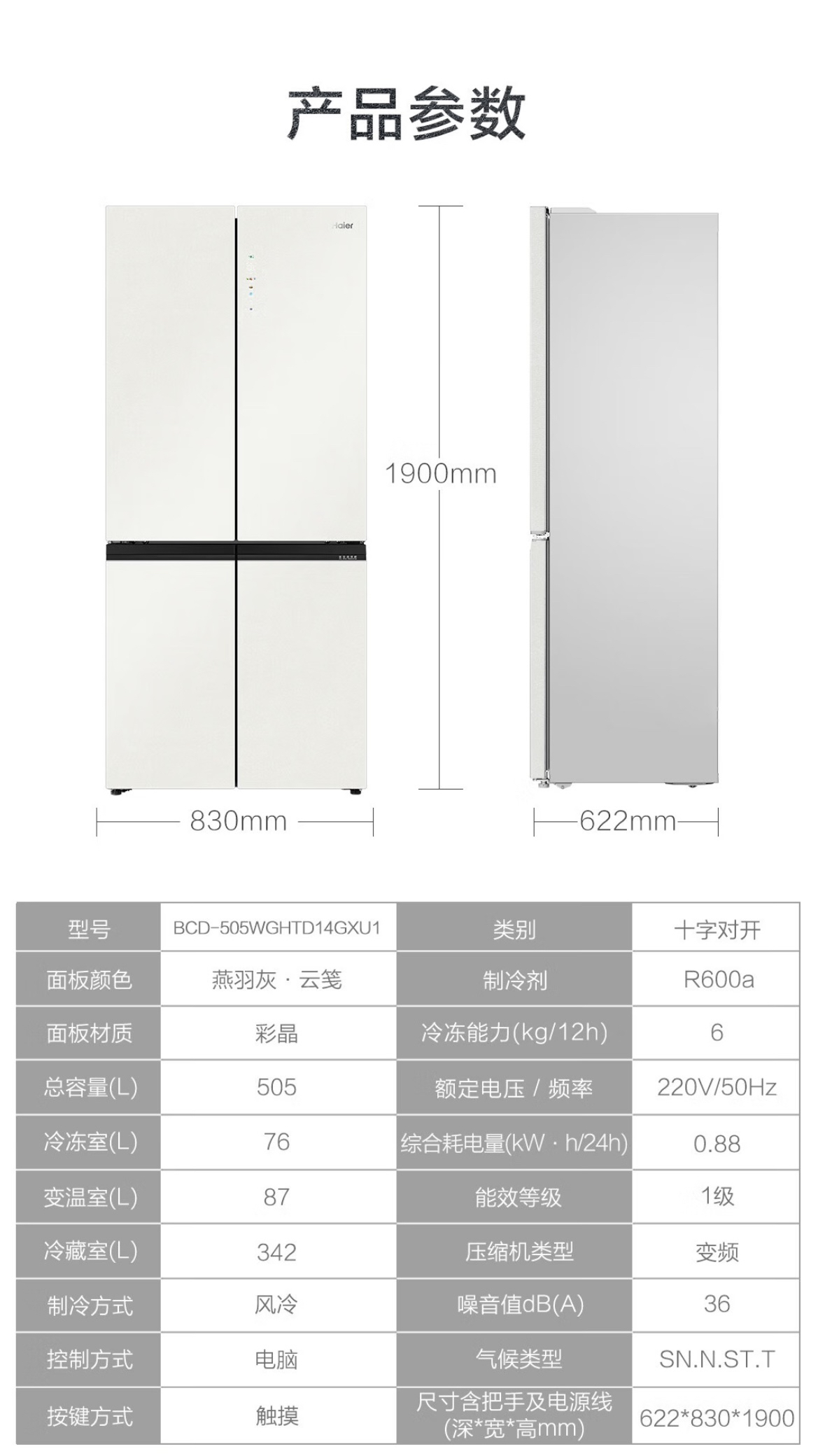 海尔(Haier)冰箱 BCD-505WGHTD14GXU1