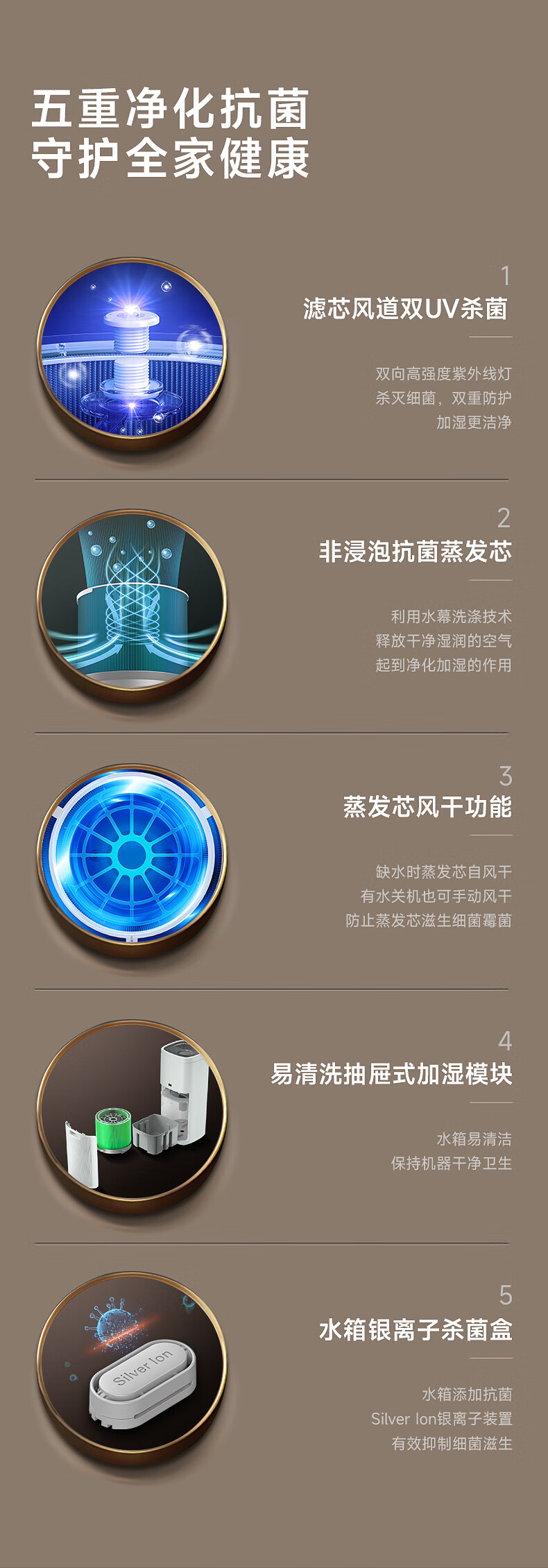 2:五重净化杀菌,先净化,再加湿,保护空气清新健康