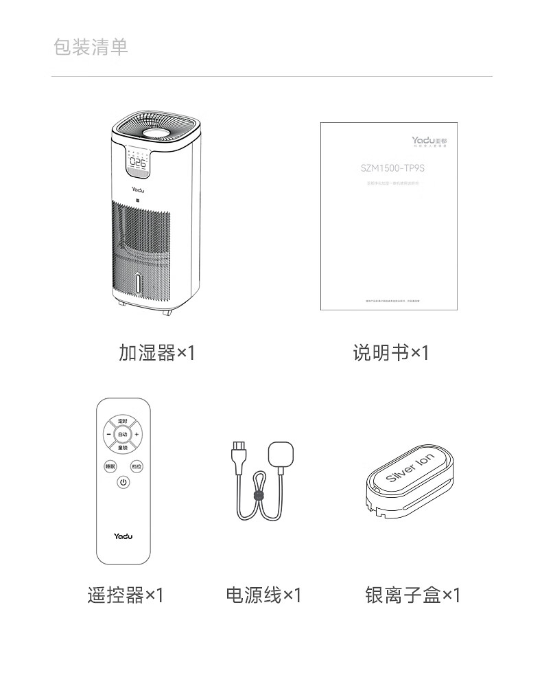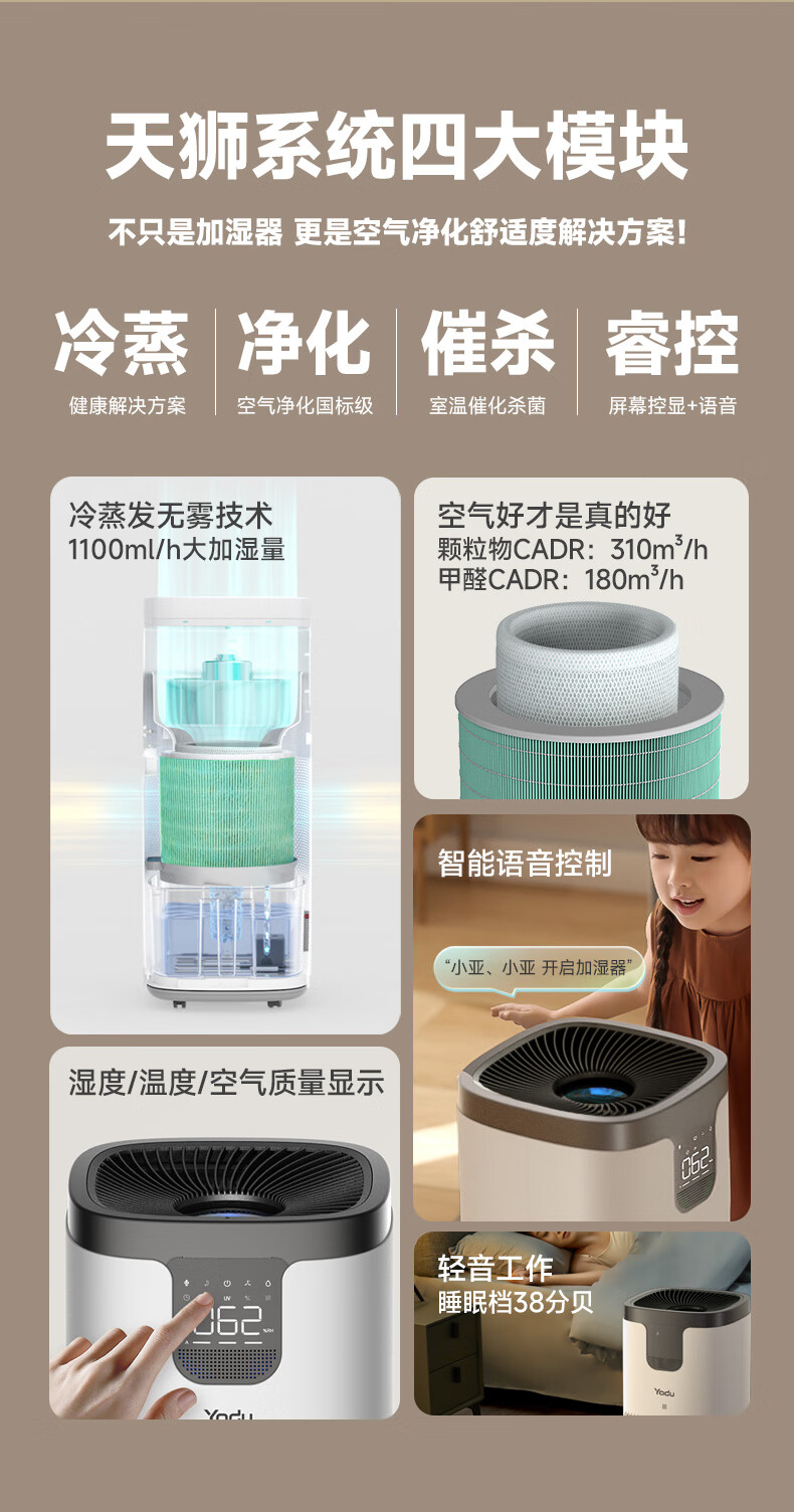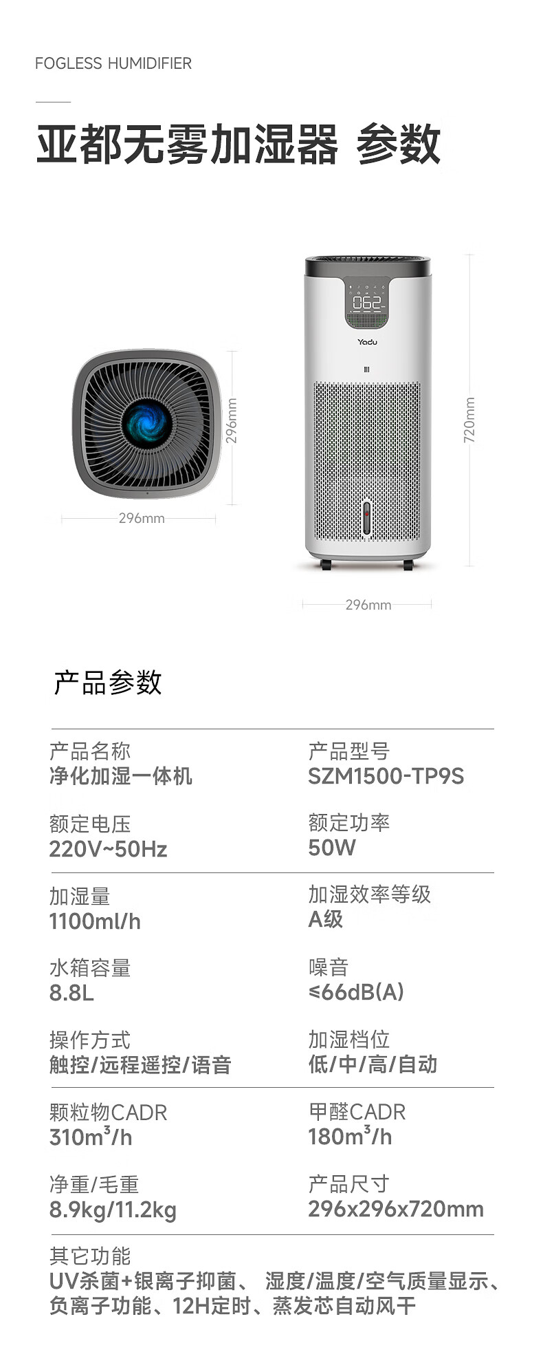 亚都(YADU)语音控制加湿净化一体 除甲醛 无雾加湿器 卧室办公室母婴用 UV杀菌+银离子 轻音 SZM1500-TP9S