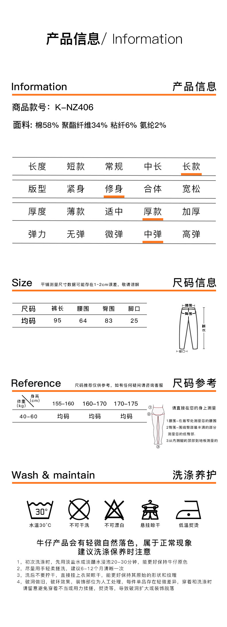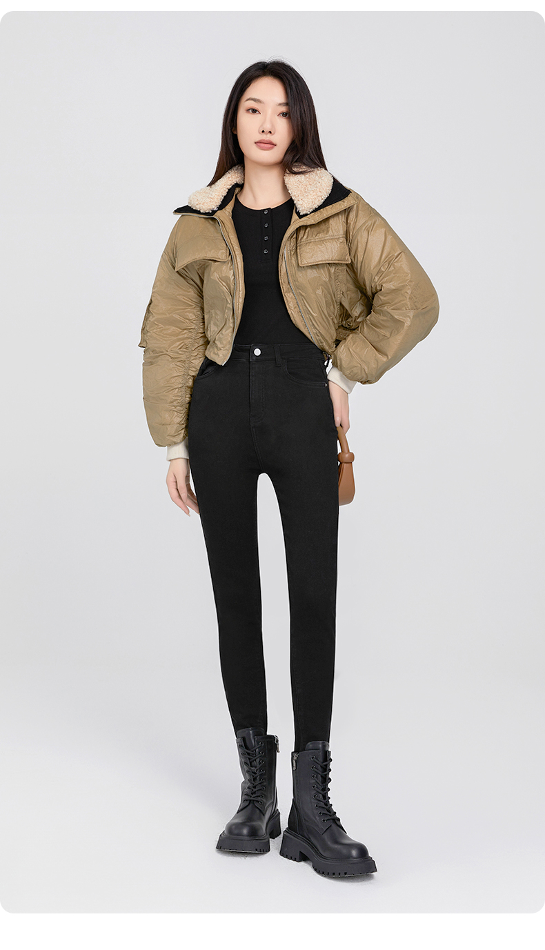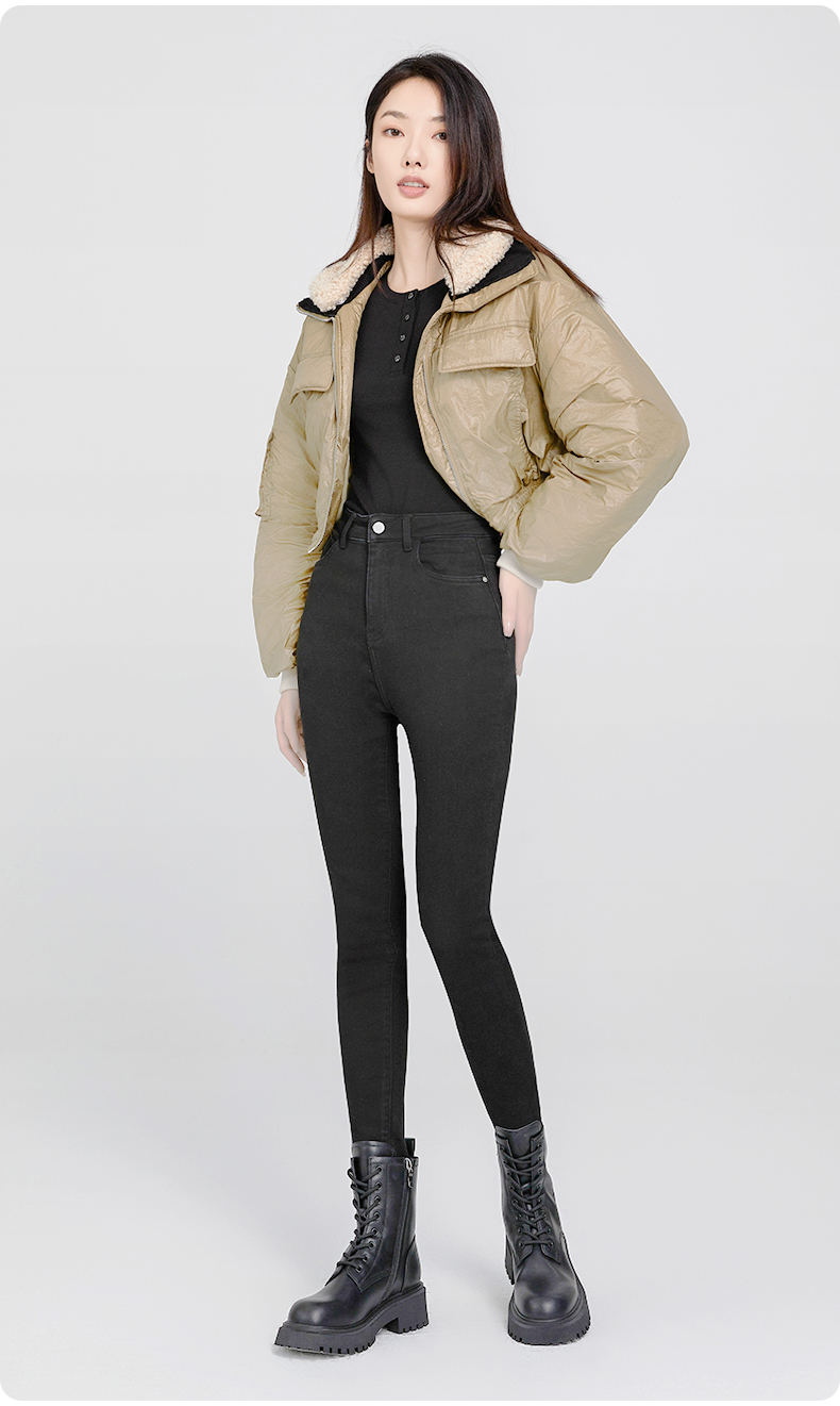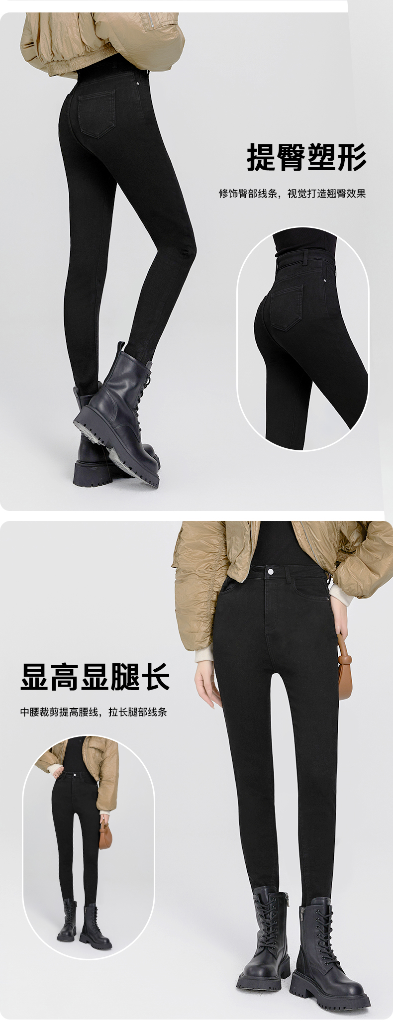 SP68一粒扣黑色加绒小脚牛仔裤K-NZ406