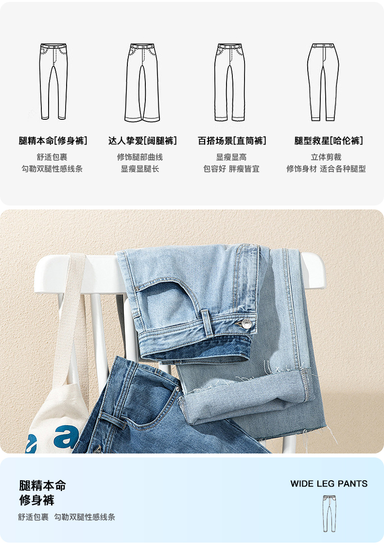 SP-68一粒扣加薄绒蓝色阔腿牛仔裤K-NZ456