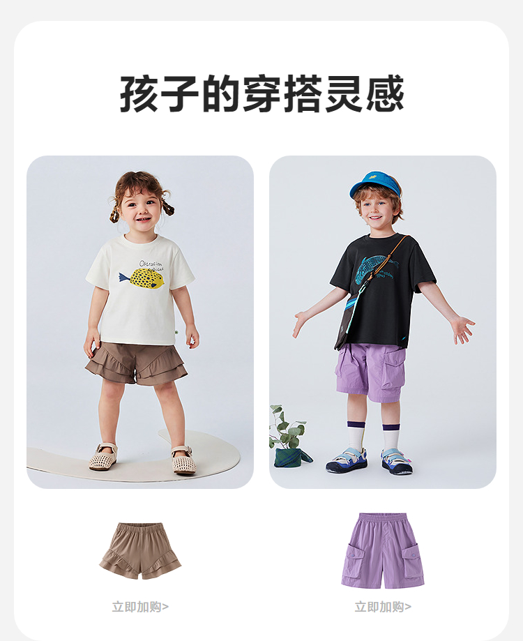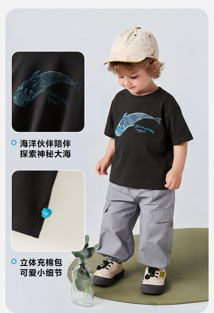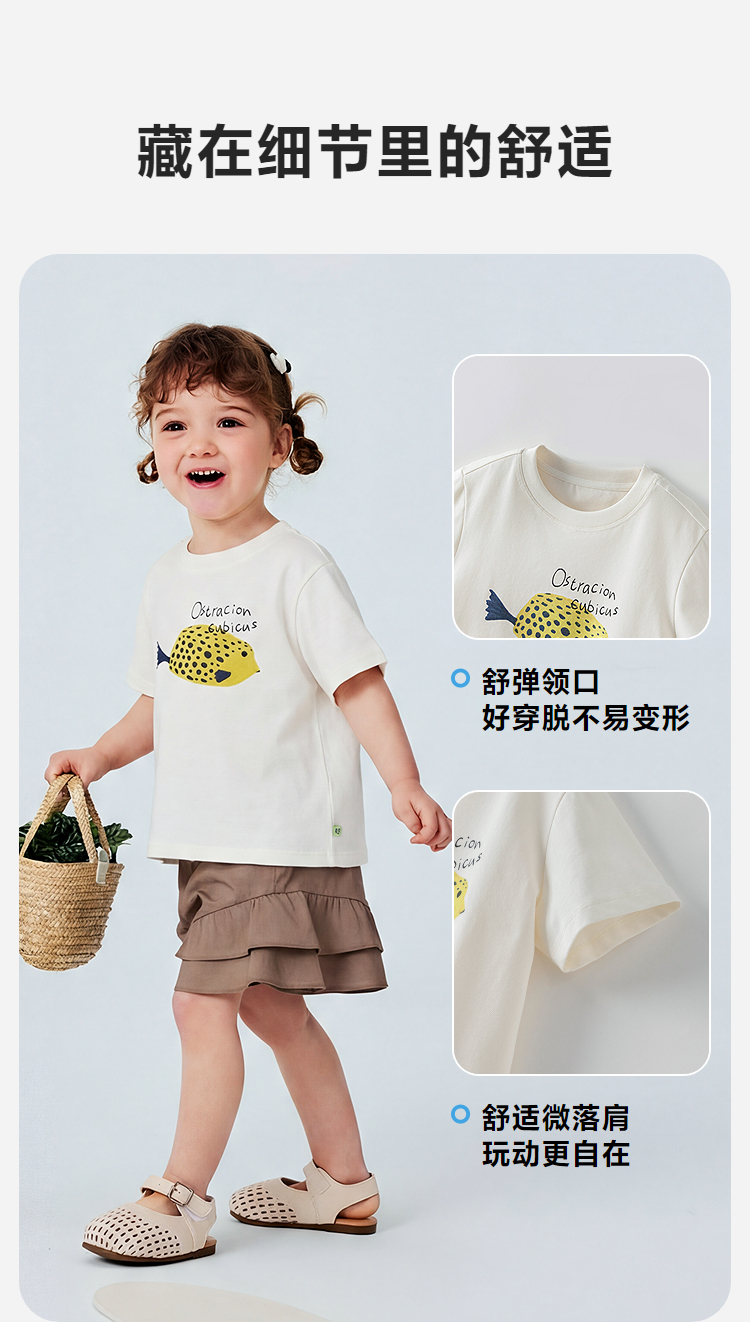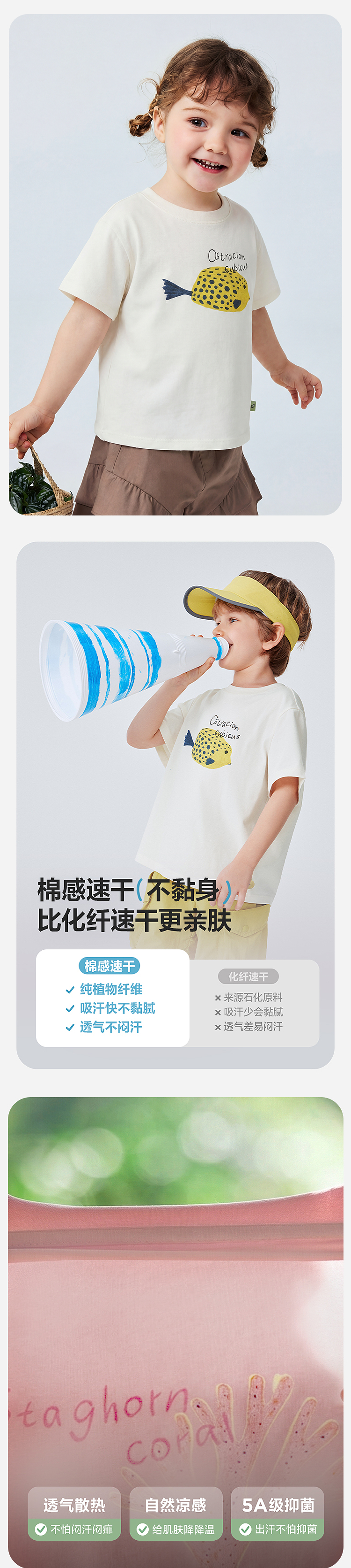迷你巴拉巴拉儿童短袖T恤宝宝亲子装一家三口凉感抑菌上衣26新款