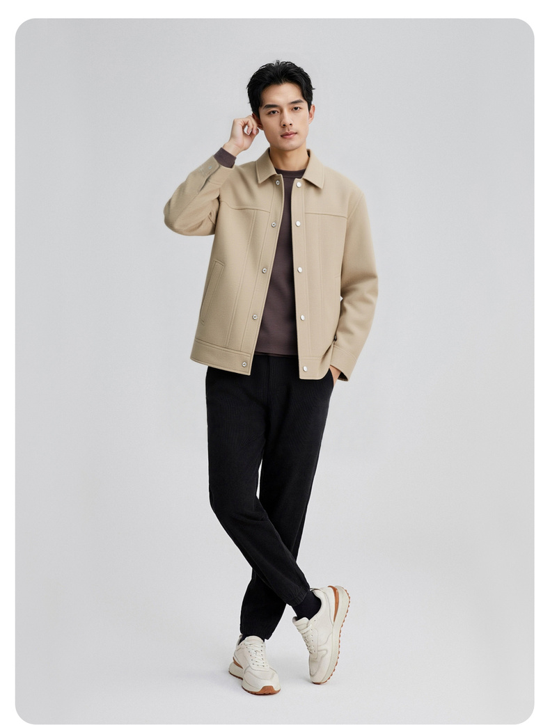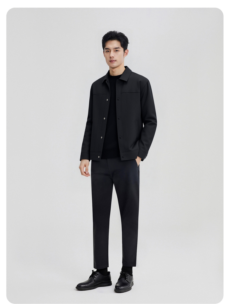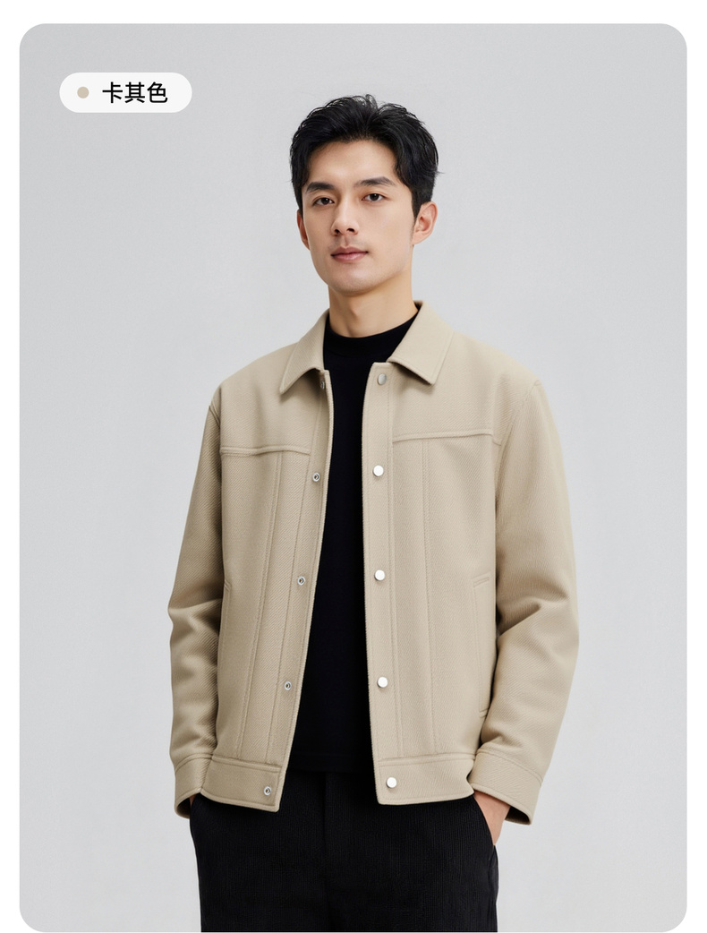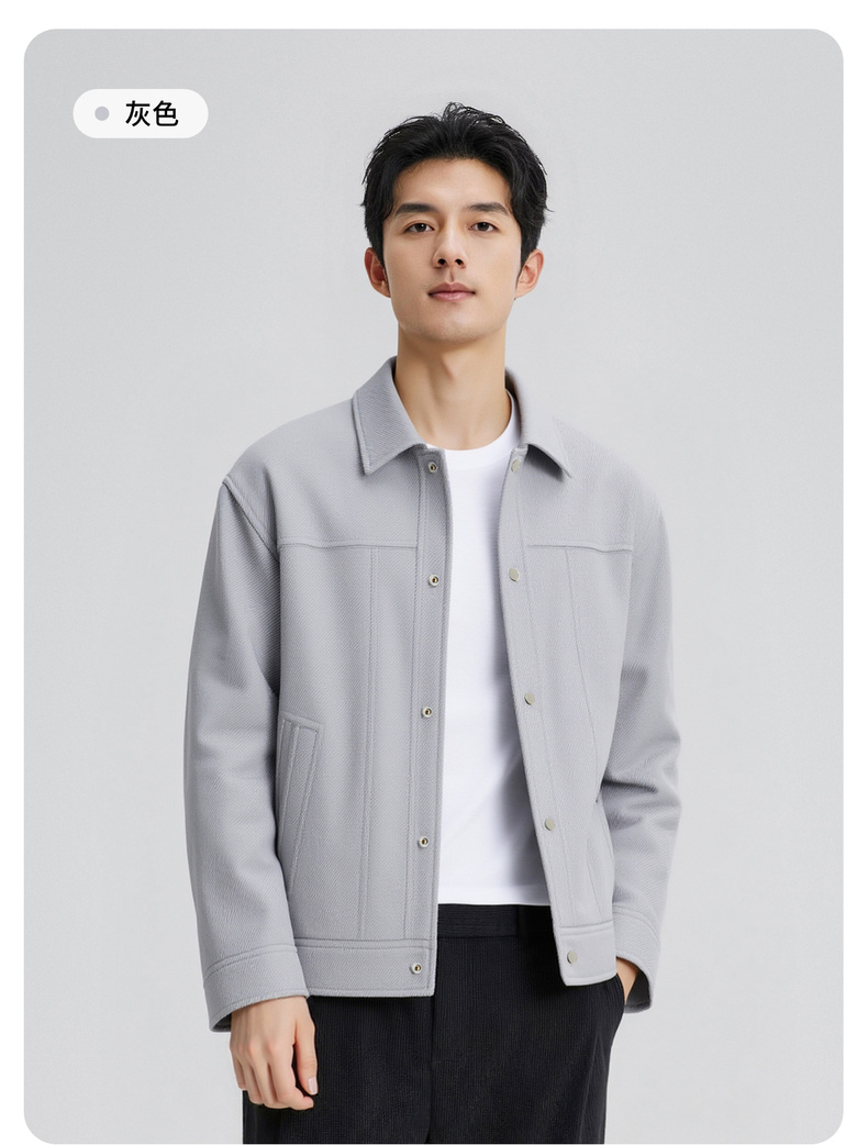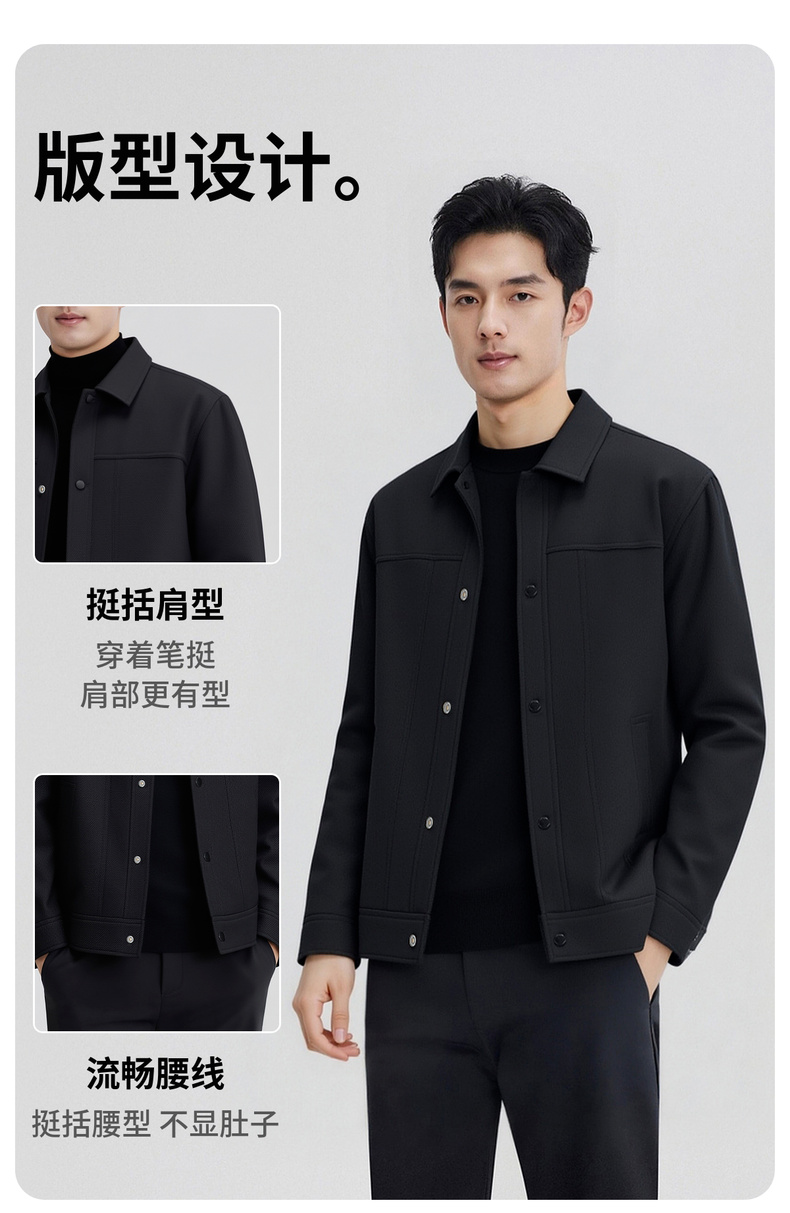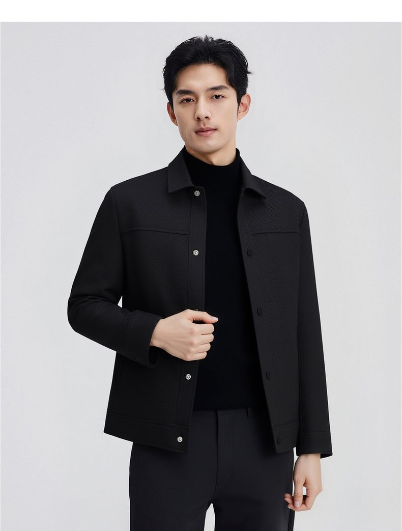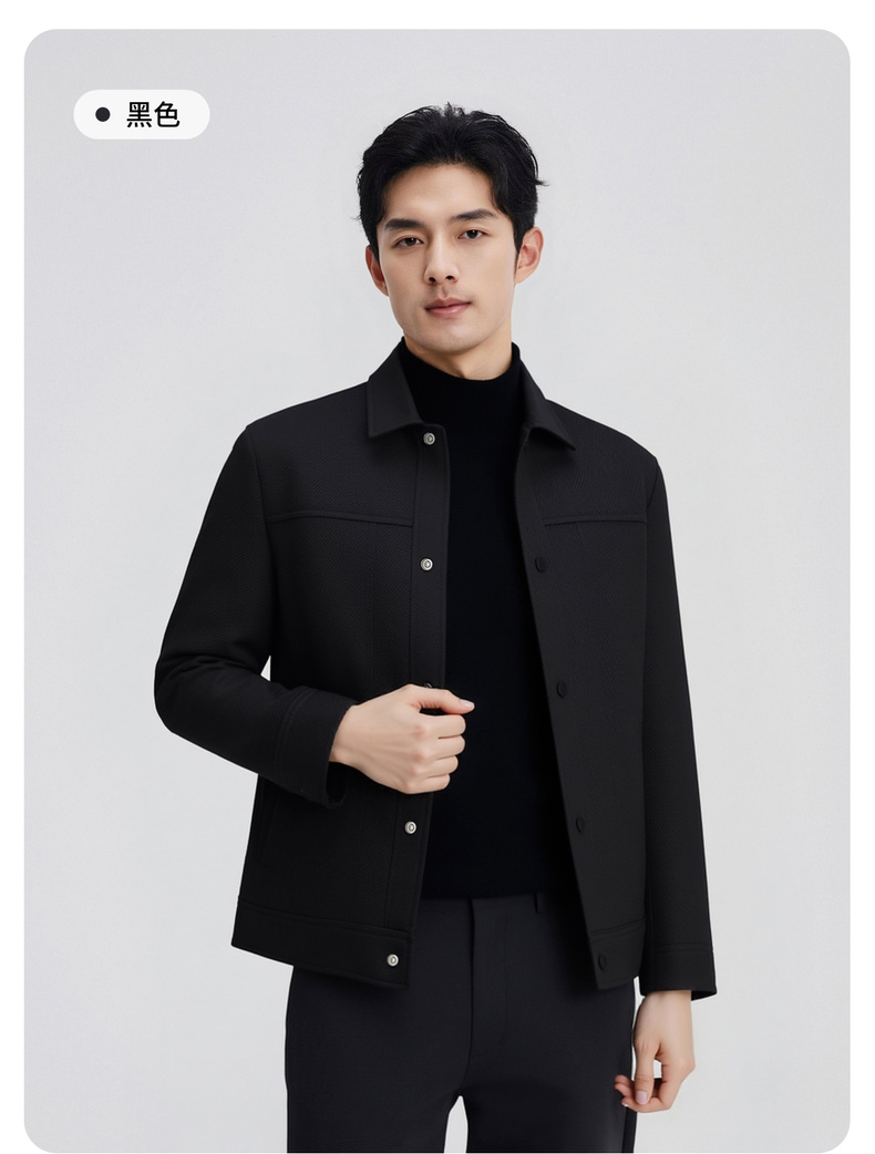圣得西男士提花肌理外套2025秋新款时尚无帽单排按扣翻领夹克男