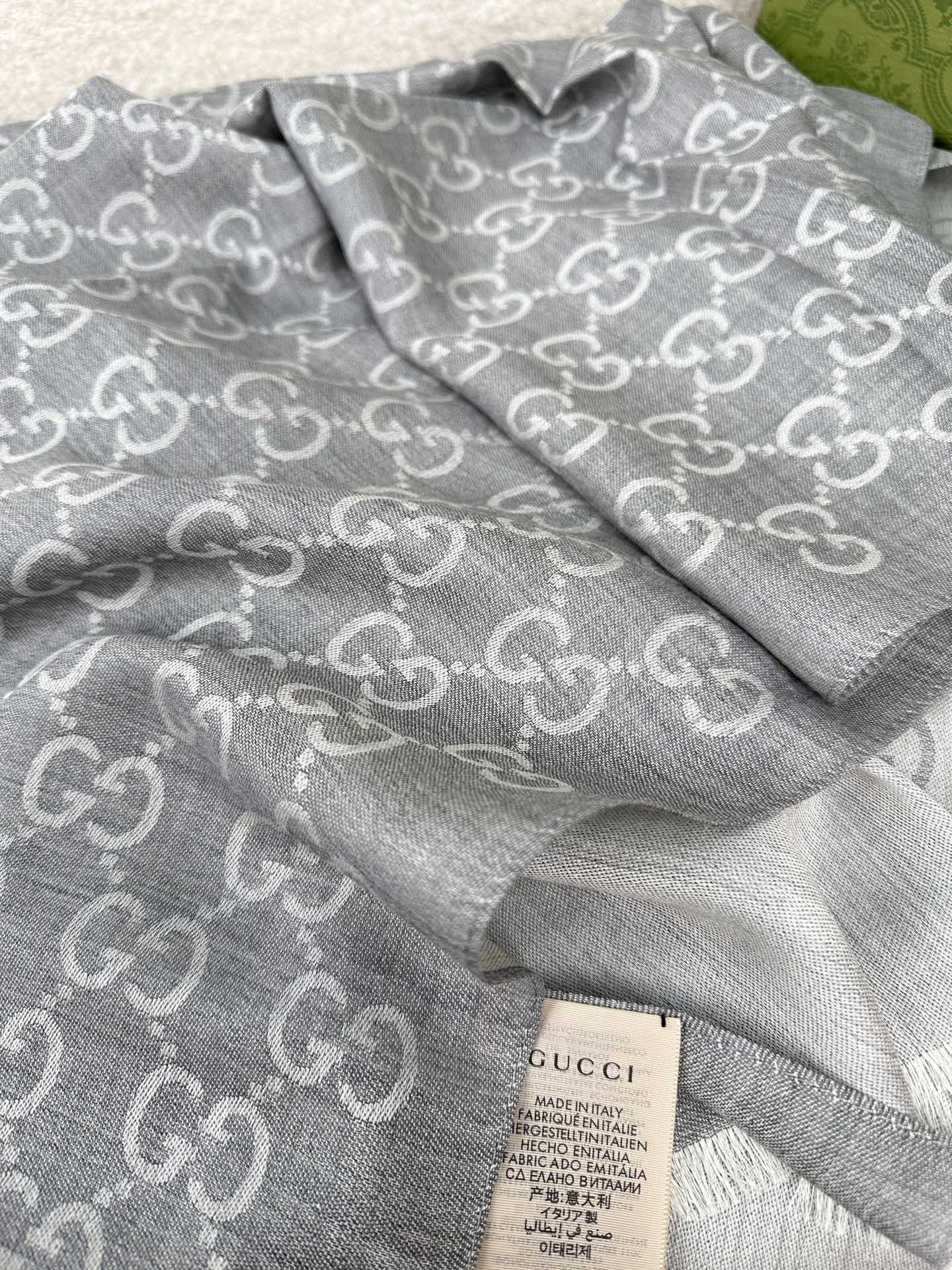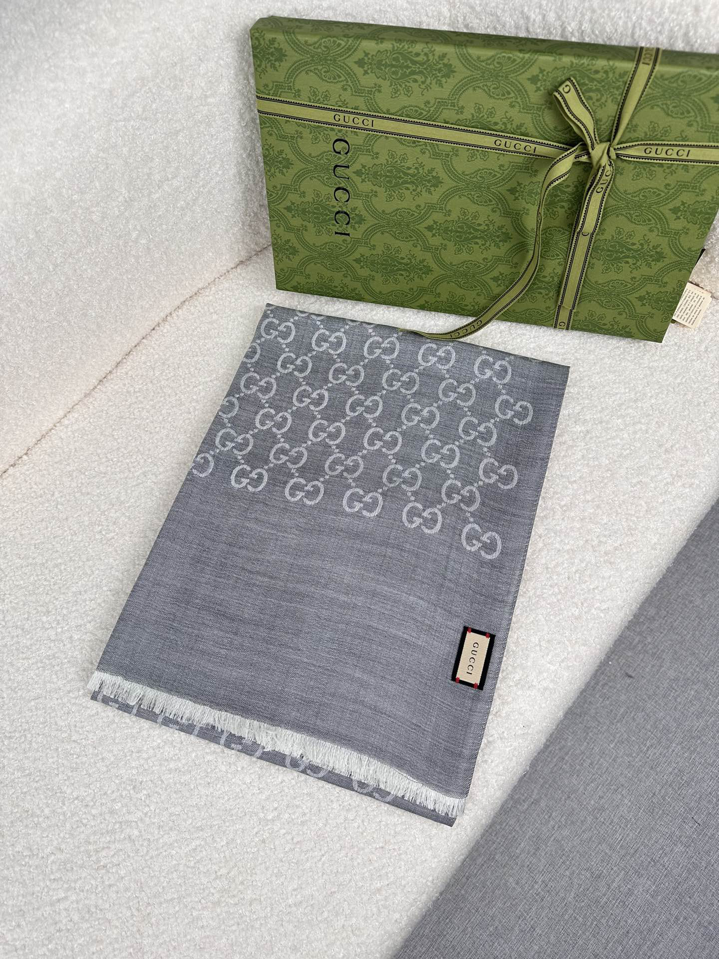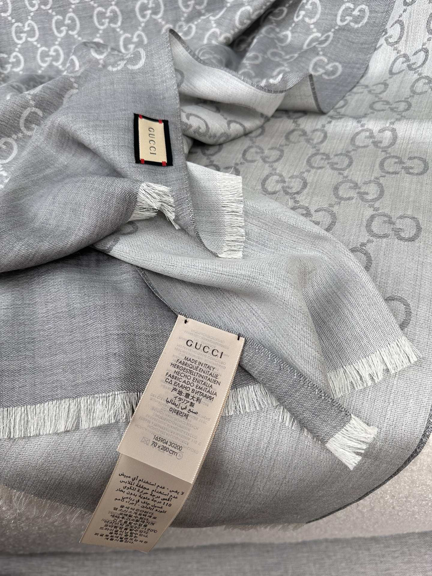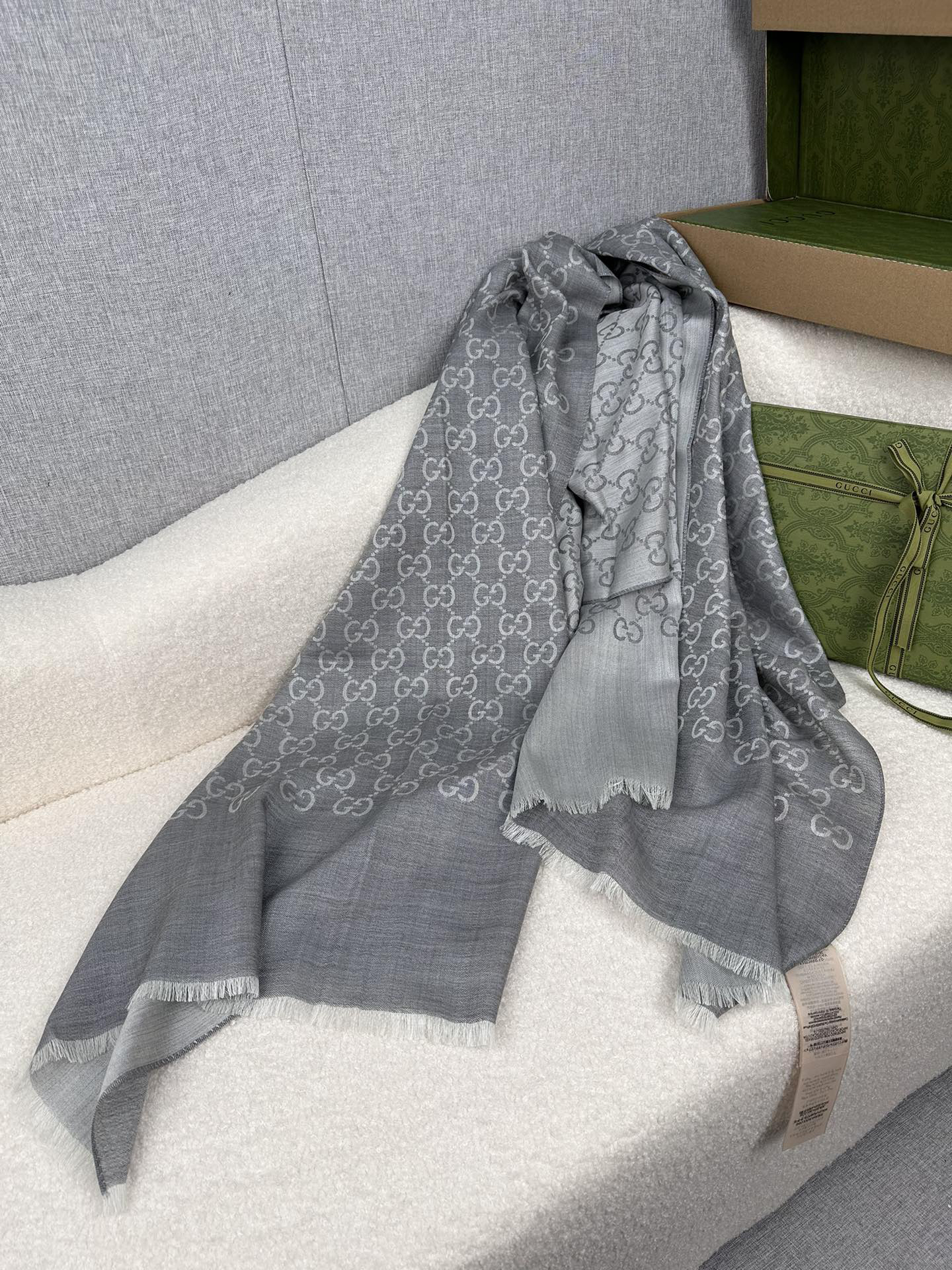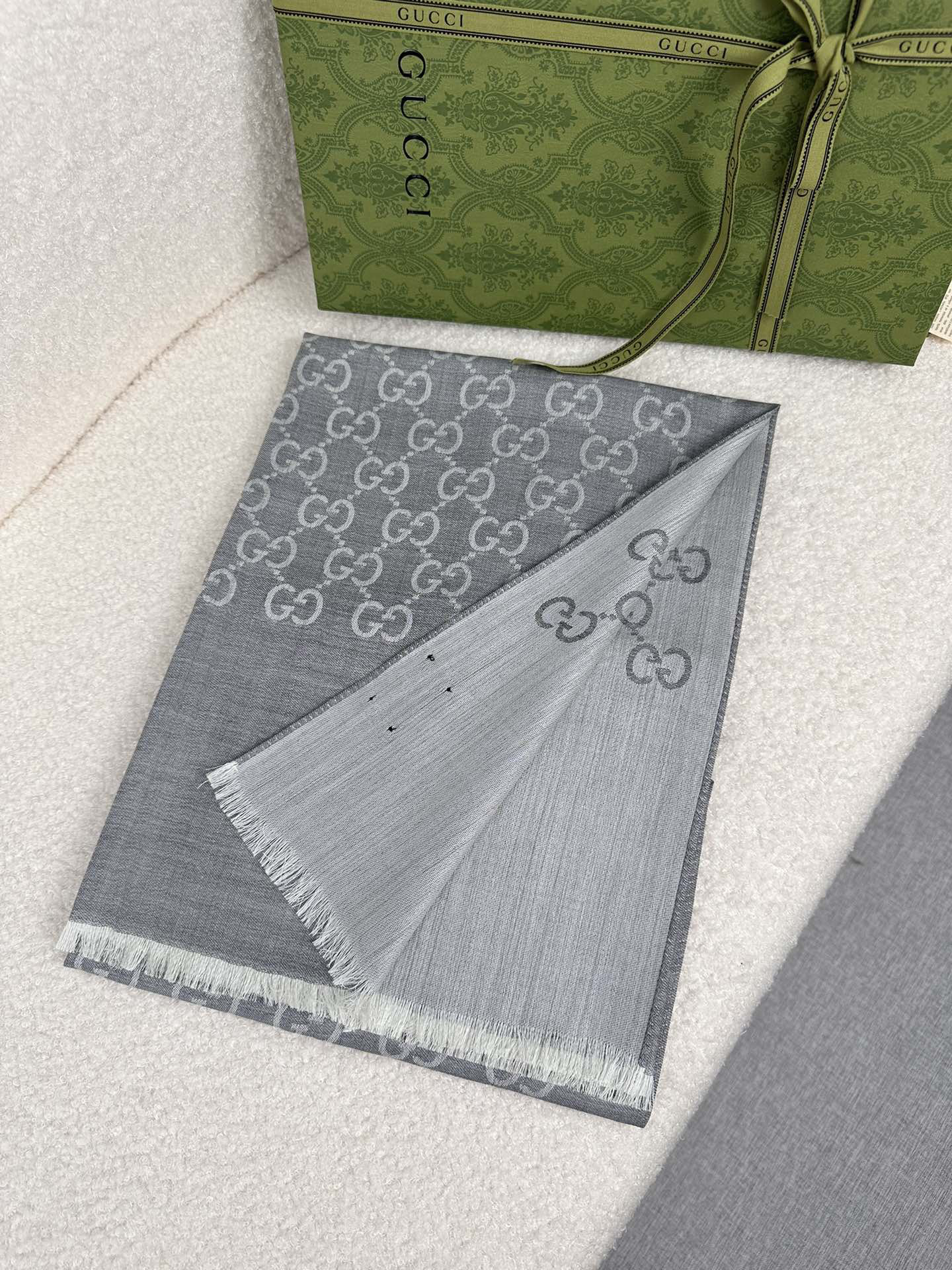 秋冬特惠💰330 古驰围巾 【四季双娇!GG双面中等薄款真丝羊毛围巾】G热销热卖的老花长巾~也是提升气质和品味的好单品!!评价都非常好,四季必备!!真的无敌实用!!G难得的丝毛长巾!!面料手感真的很好,带点厚度又非常柔软亲肤,纱线很有水头很有光泽感!真丝和羊毛混纺,G字母非常紧密工整,直接带着去专柜浪~~此款的特别之处就在于款式是G经典耐看的提花长巾,但是长巾设计。而且正反两个色都非常漂亮,其实根本就没有正反之分,完全是可以当两条围的。尺寸规格:80cm*200cm