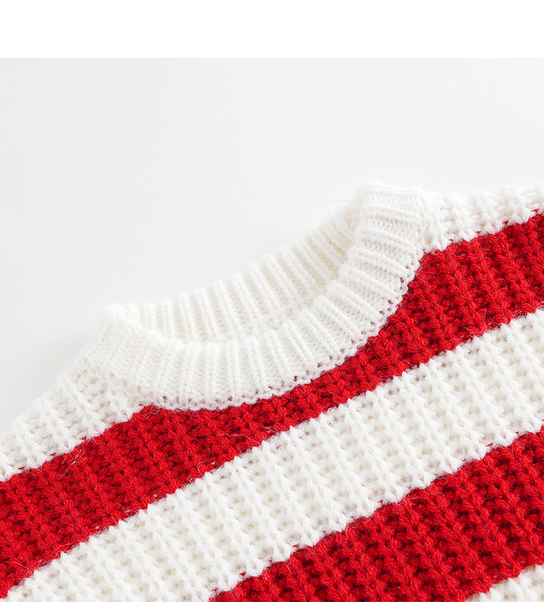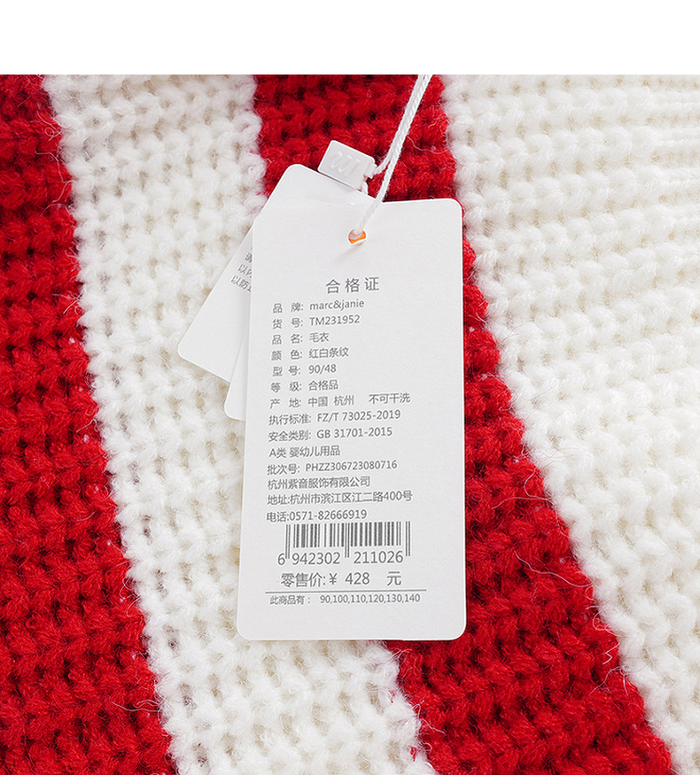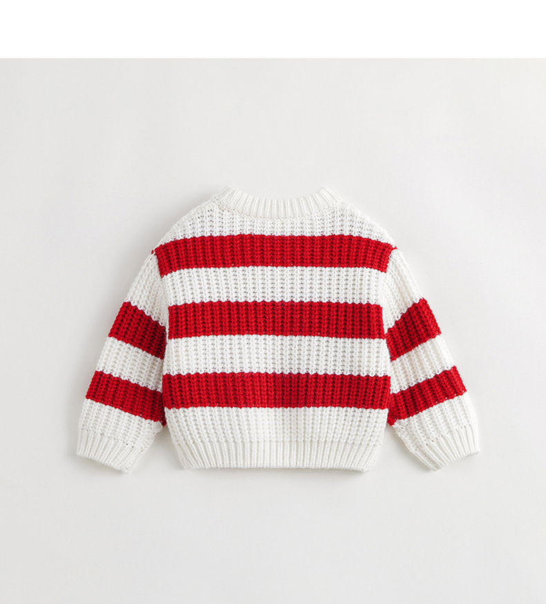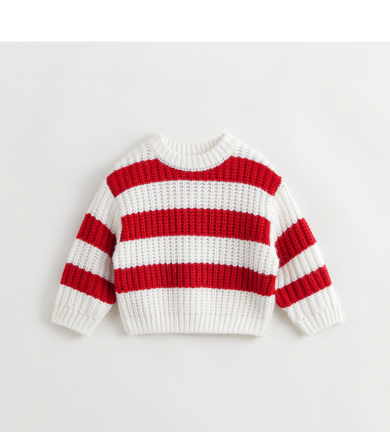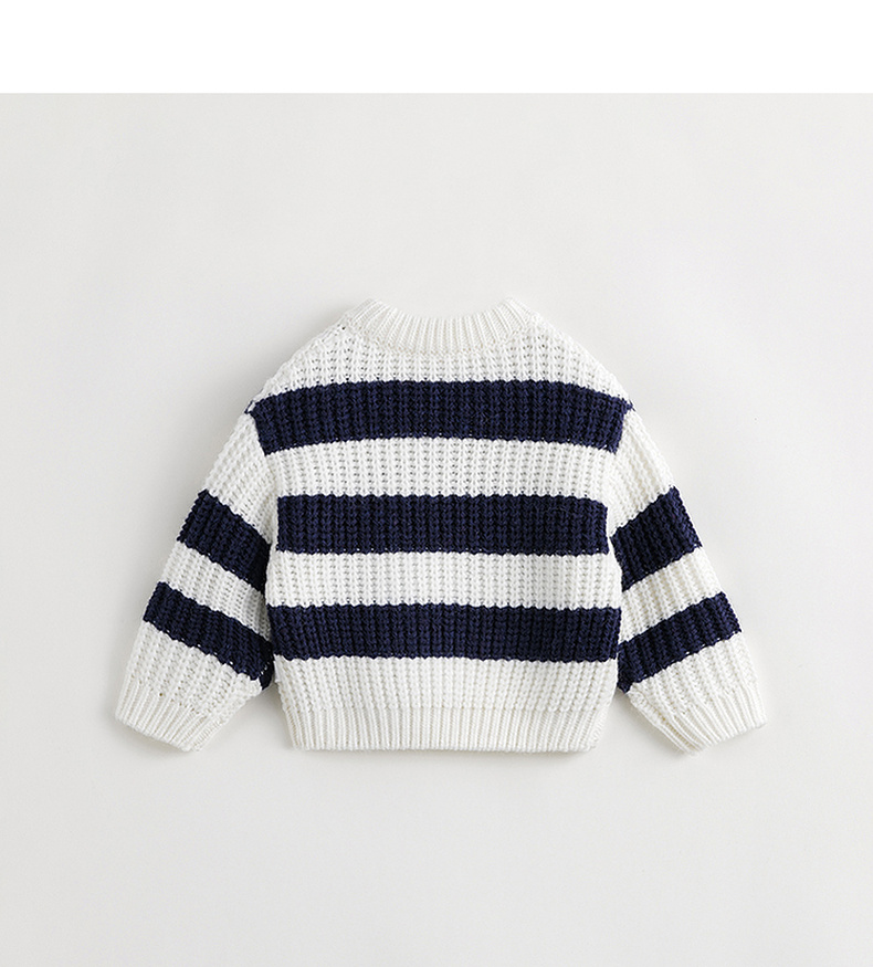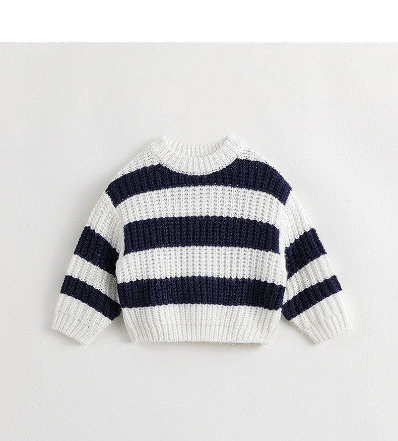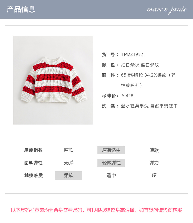 【抗起球】马克珍妮冬装新款 男童女童条纹柔蓝绒圆领毛衣231952