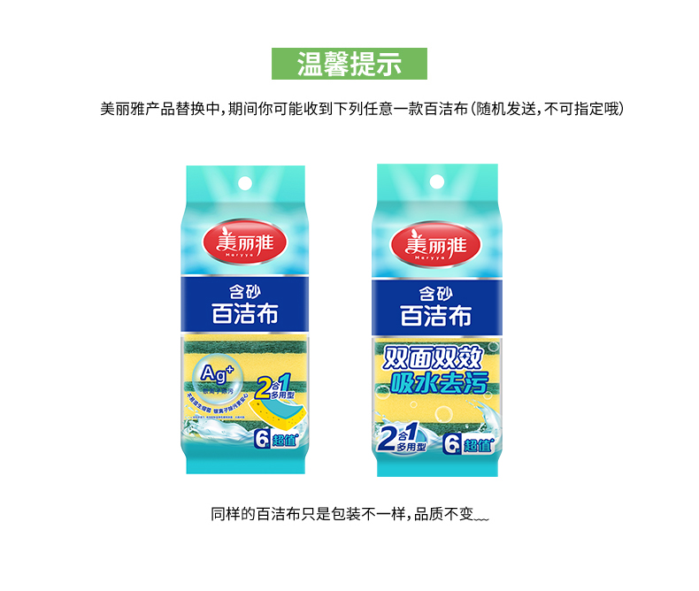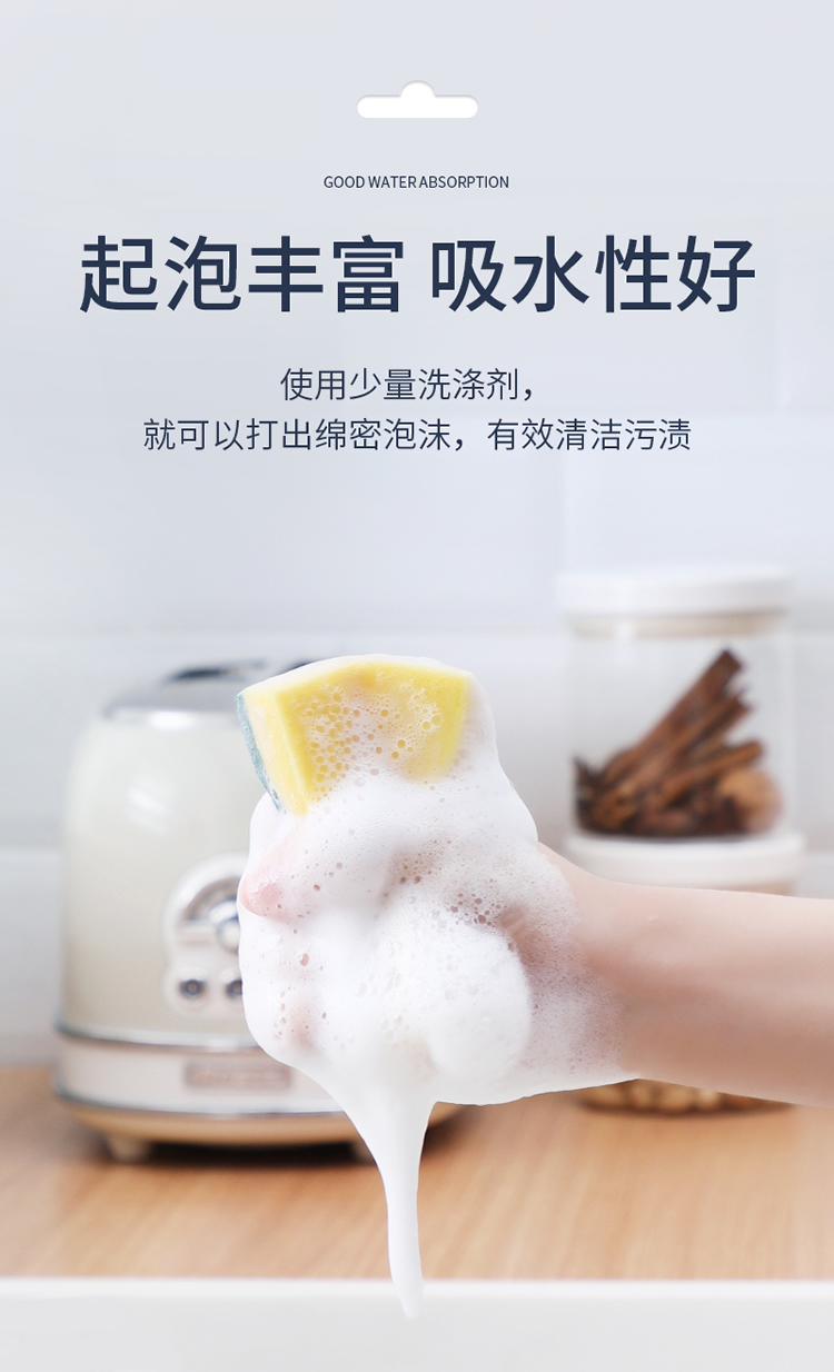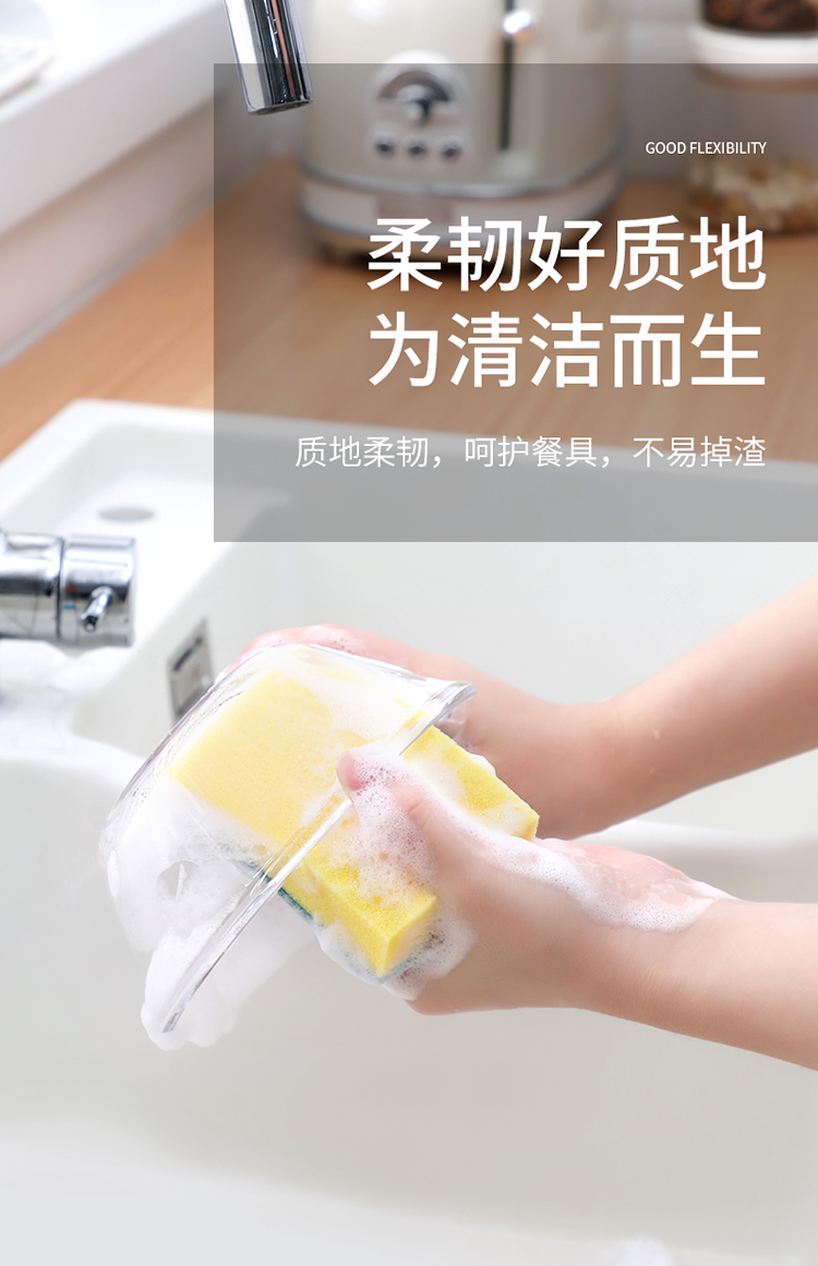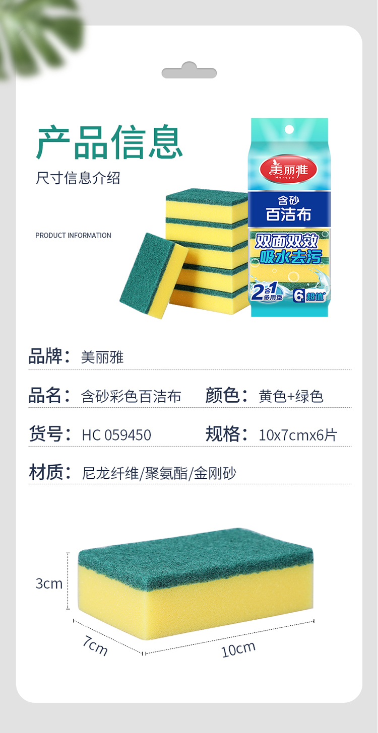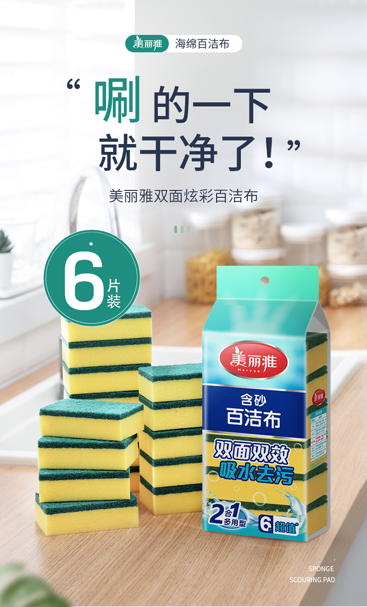 美丽雅 洗碗海绵厨房抹布百洁布洁净去污去油海绵擦刷碗布清洁布6片装