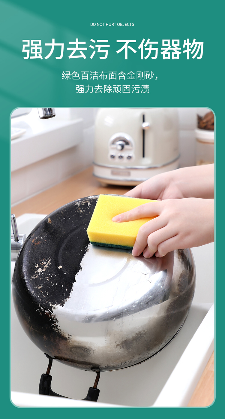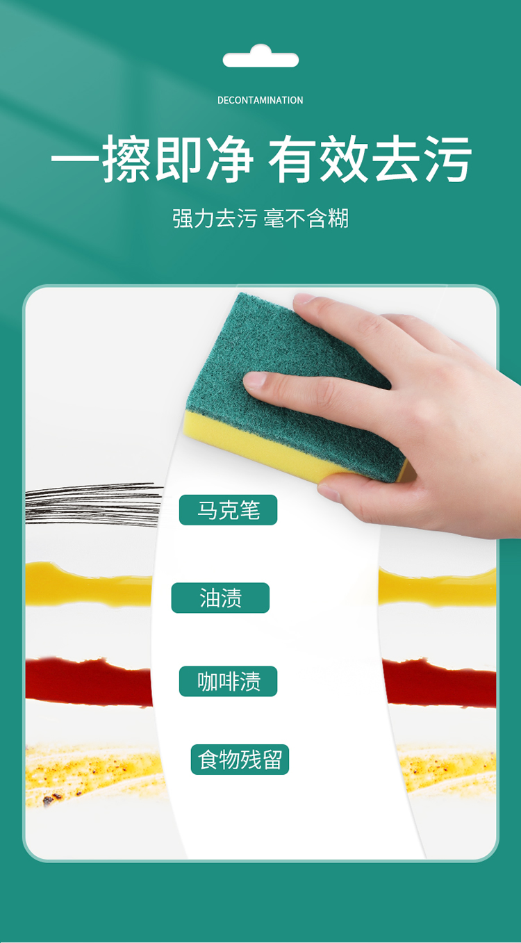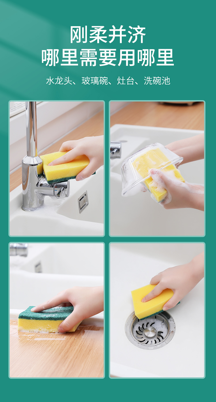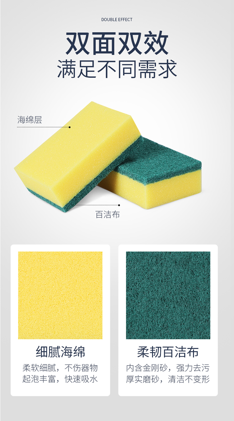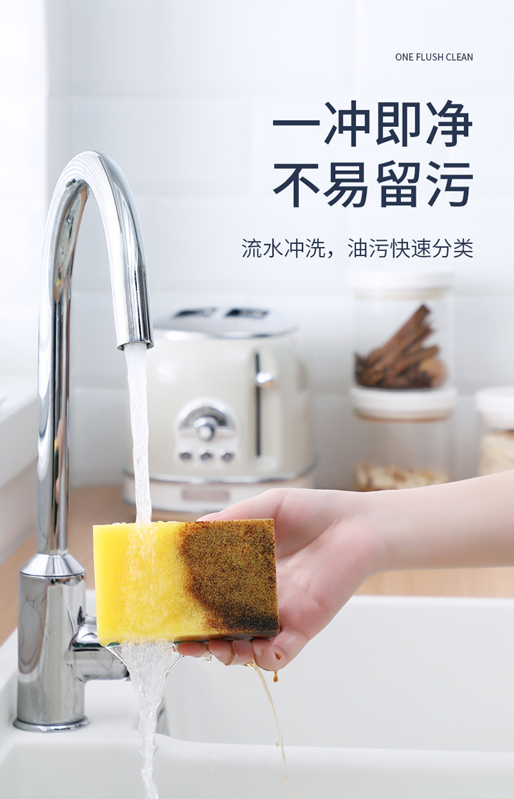 美丽雅 洗碗海绵厨房抹布百洁布洁净去污去油海绵擦刷碗布清洁布6片装