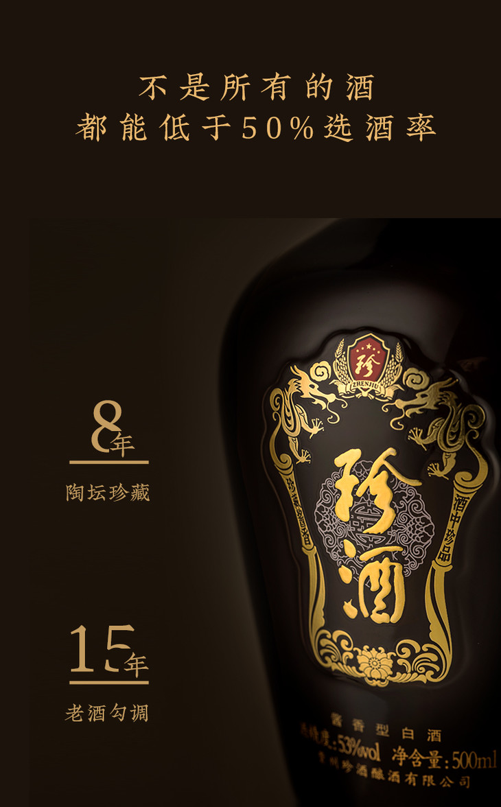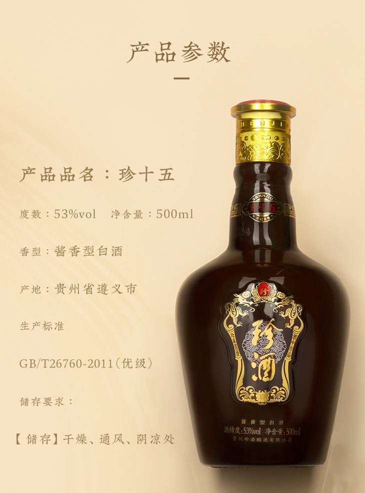 贵州珍酒珍十五53度酱香型白酒 500ml/1瓶/2瓶/6瓶整箱