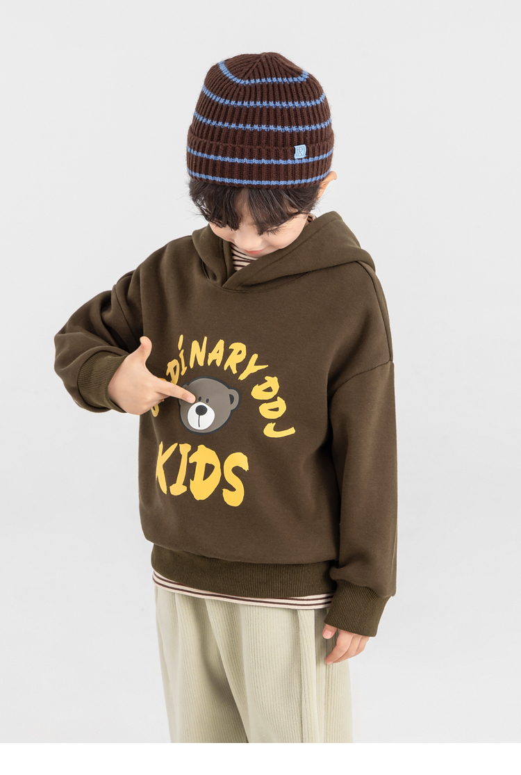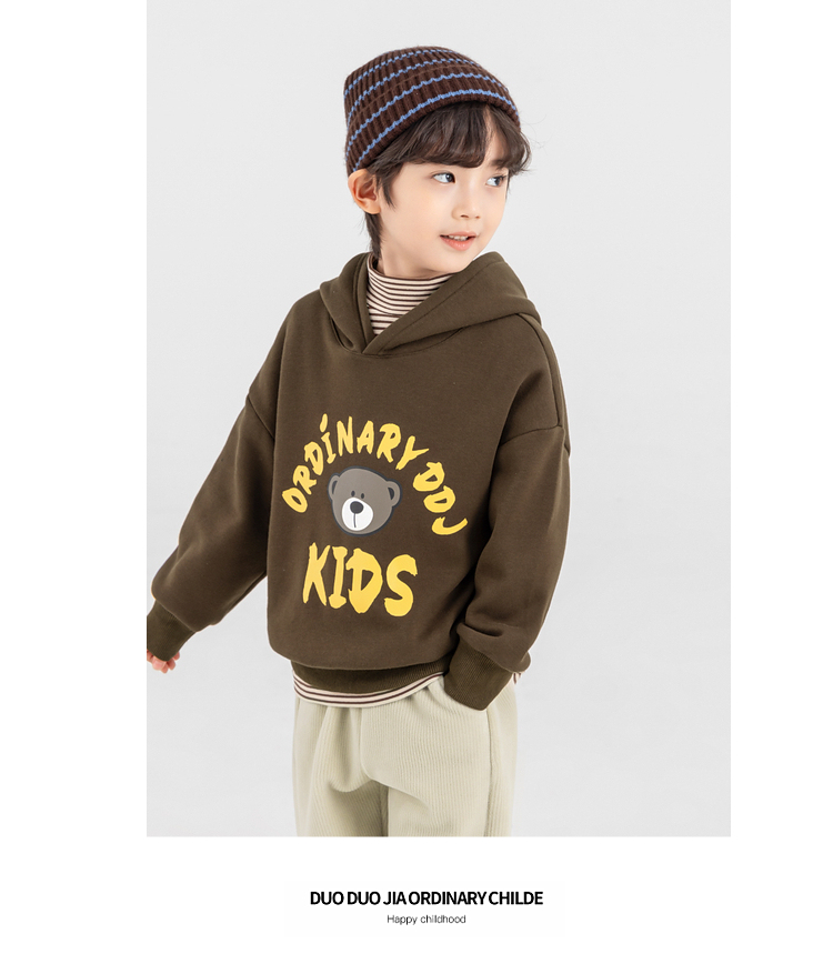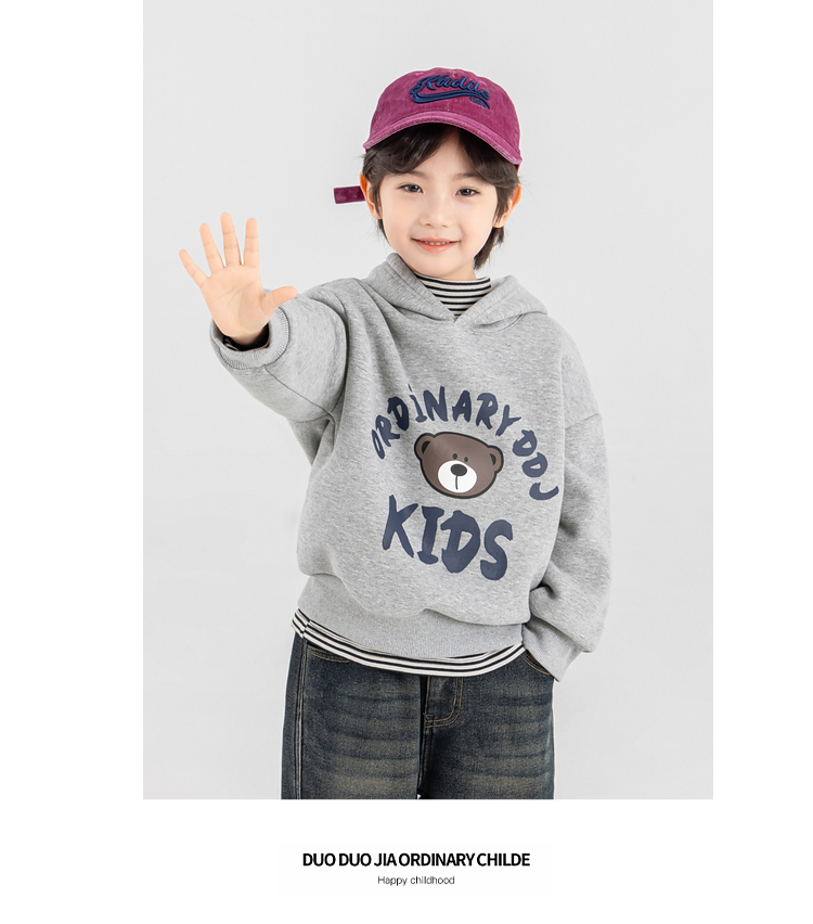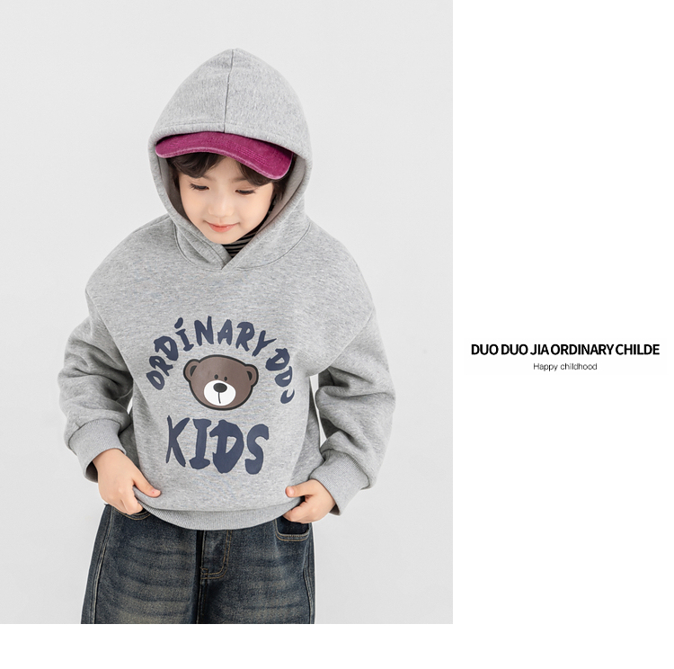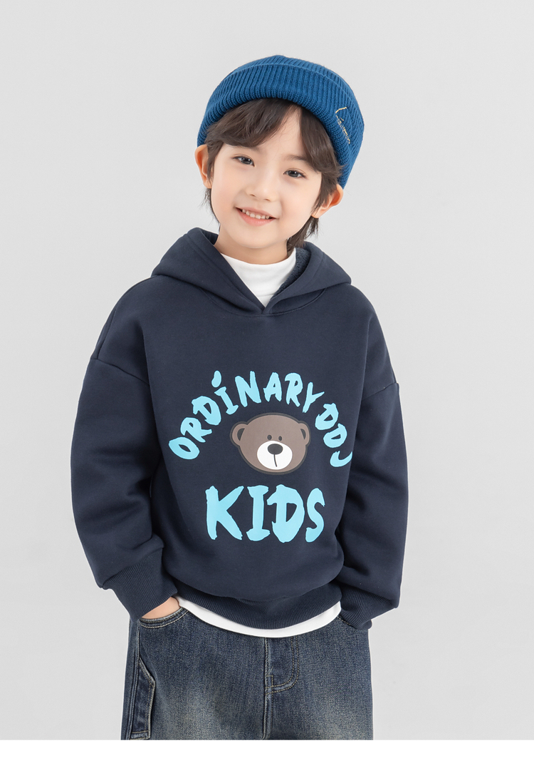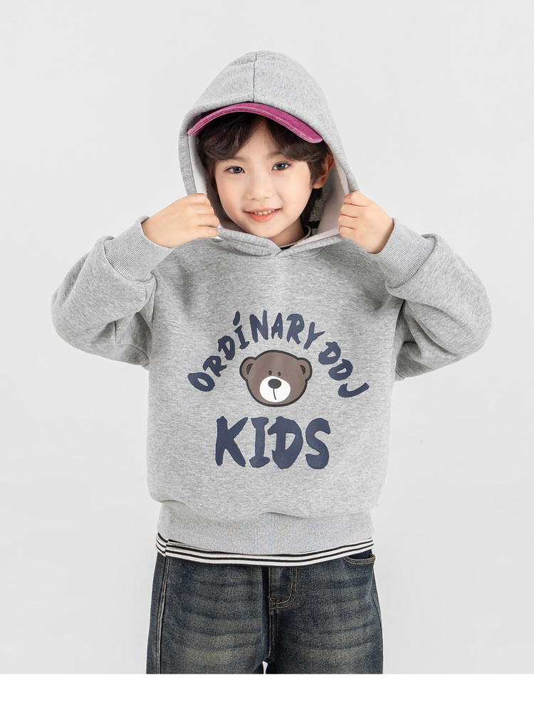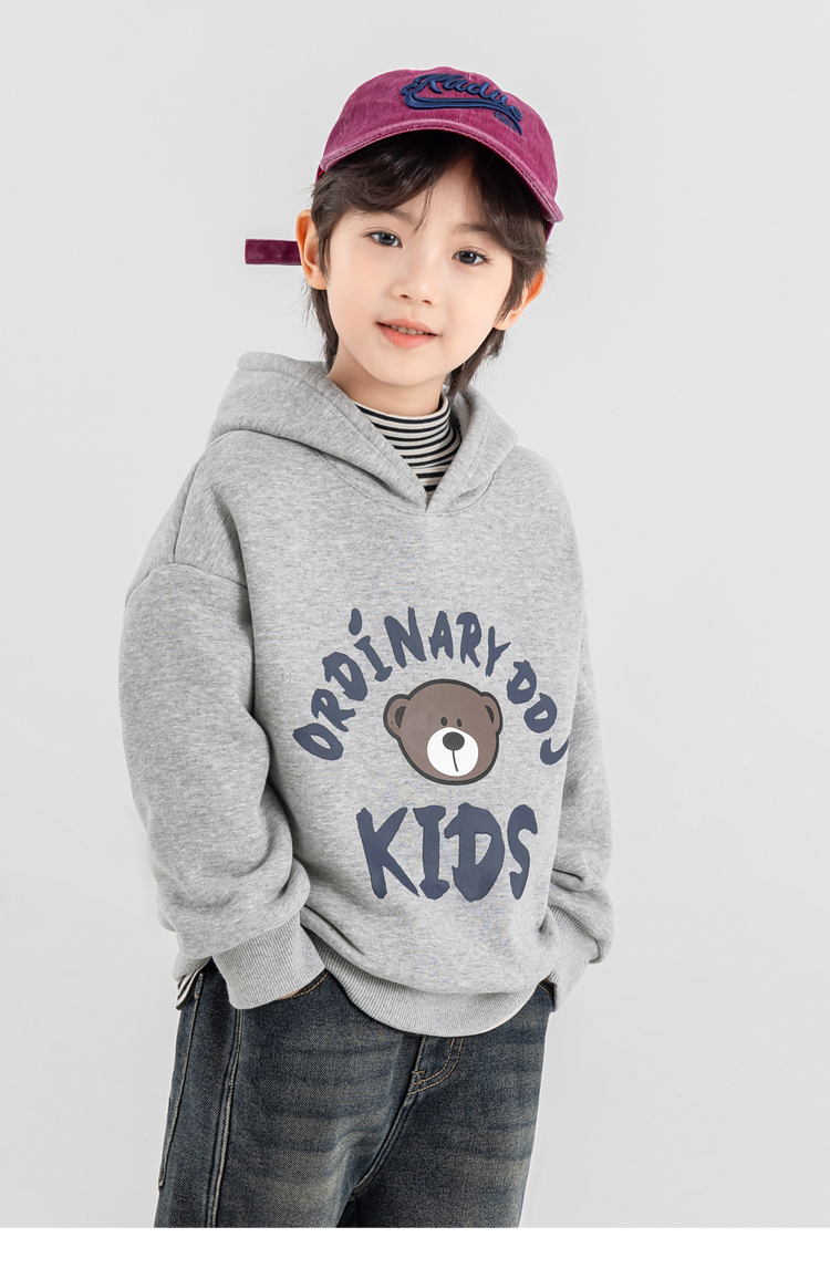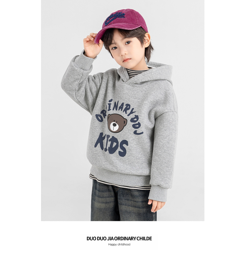 【件件底价,童装双倍积分】多多家男童加绒连帽卫衣2025秋冬季新款冬装儿童中大童小熊印花潮11179