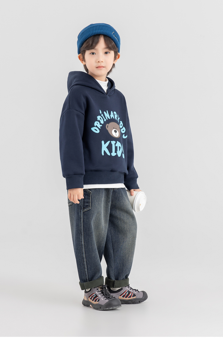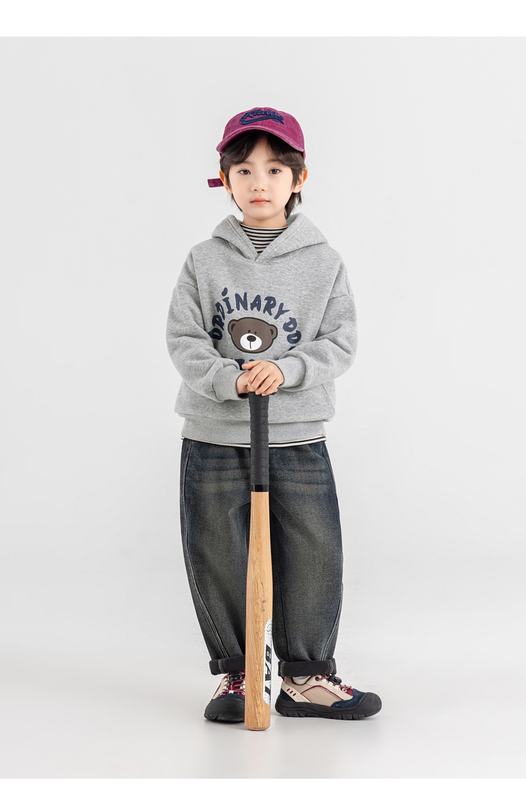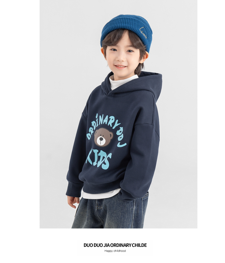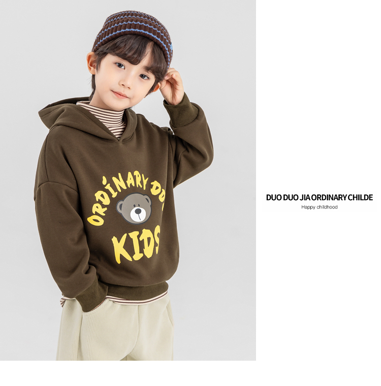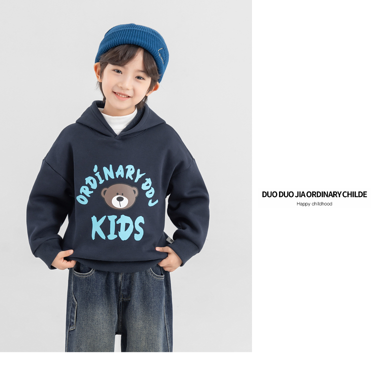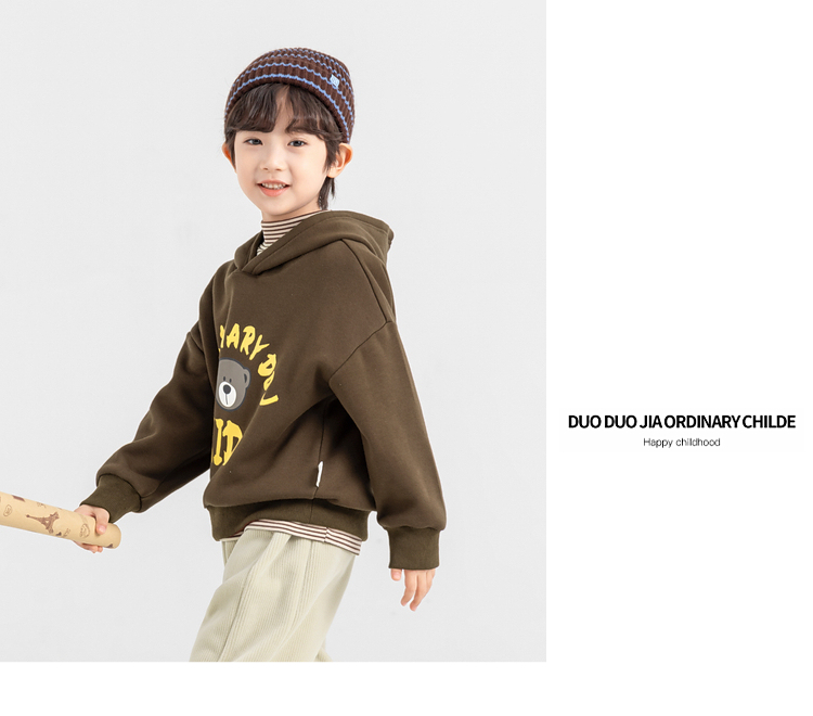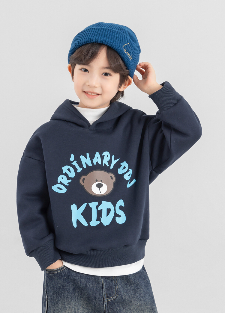【件件底价,童装双倍积分】多多家男童加绒连帽卫衣2025秋冬季新款冬装儿童中大童小熊印花潮11179