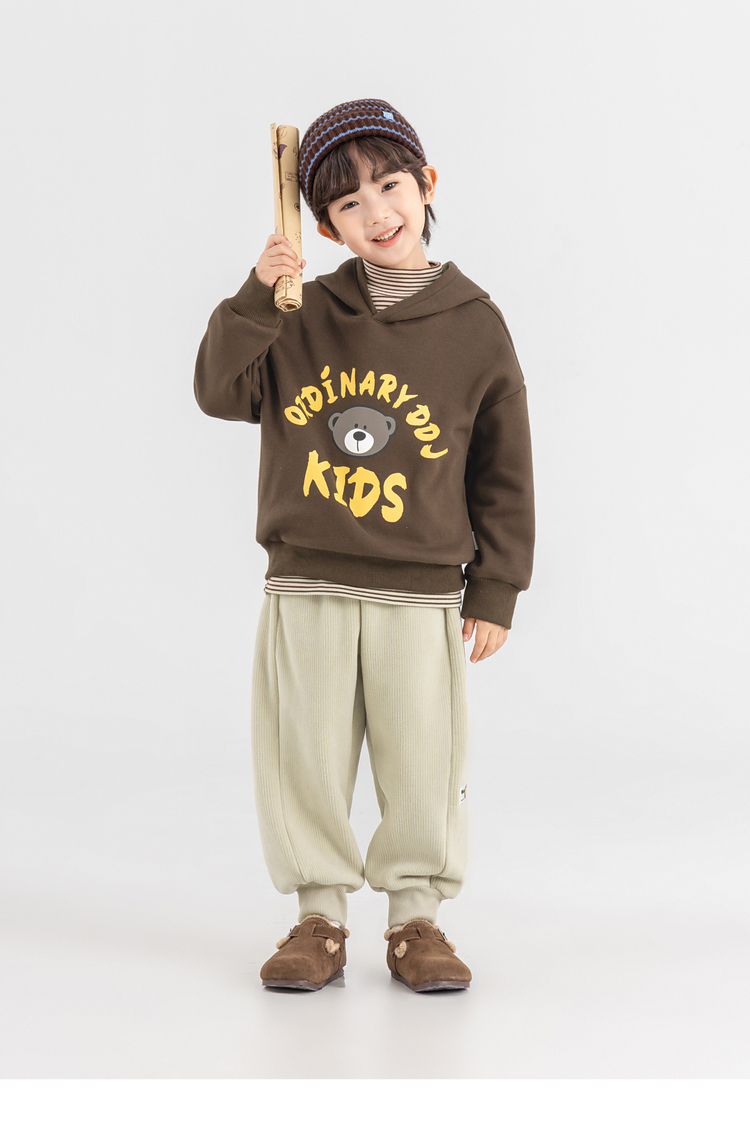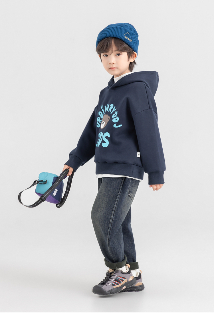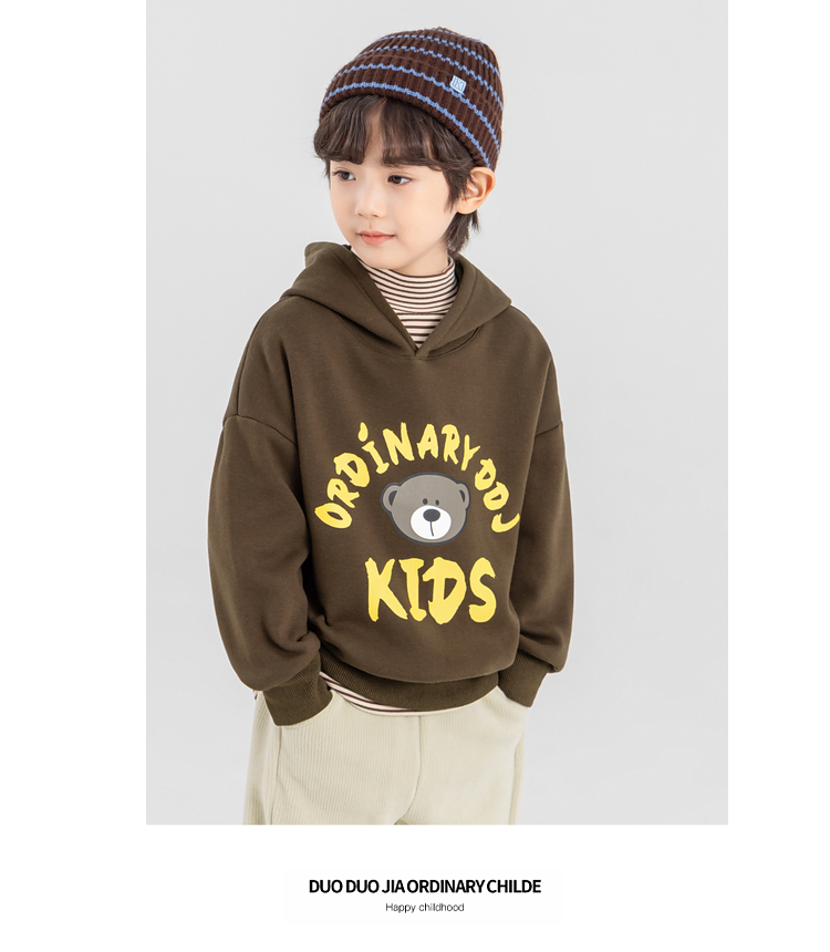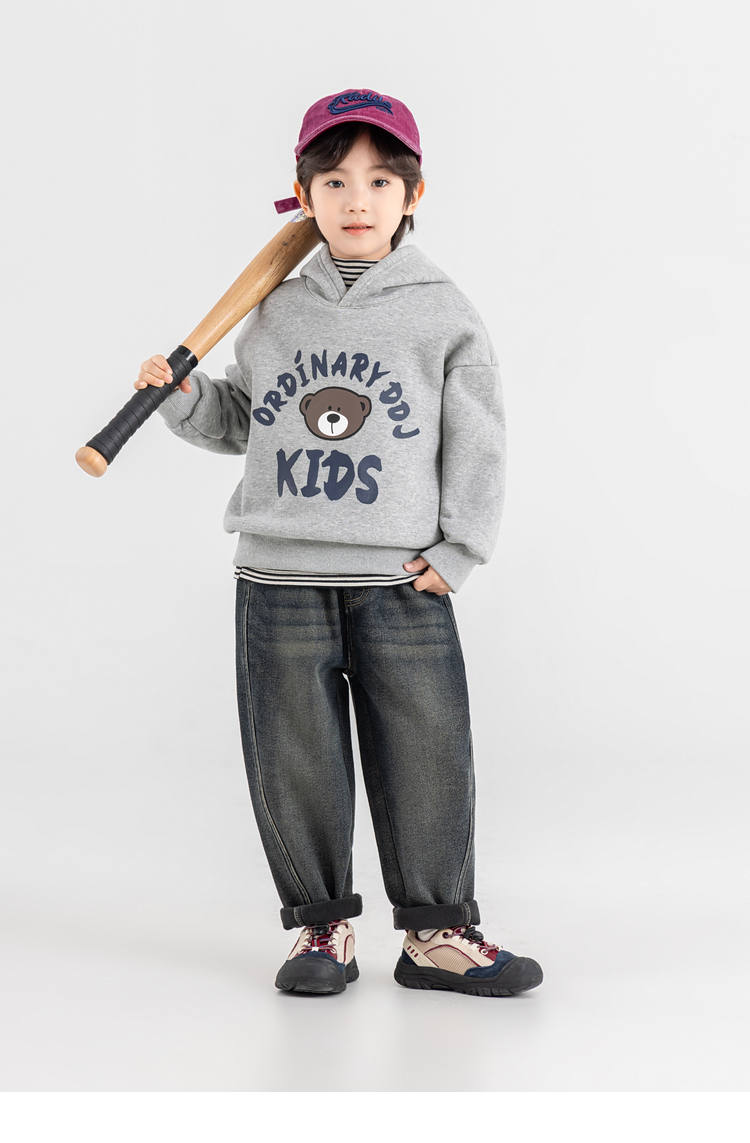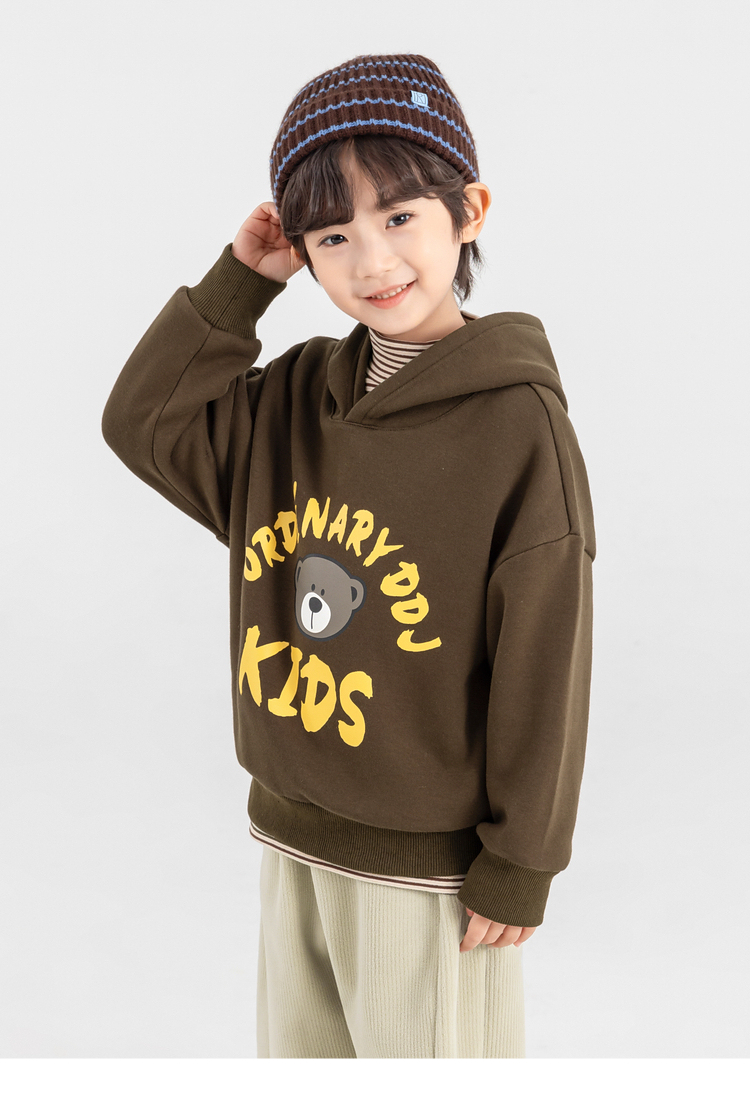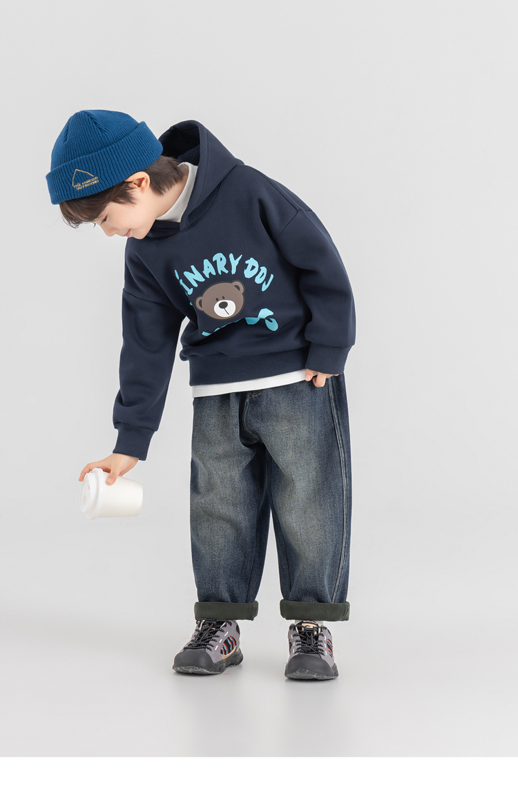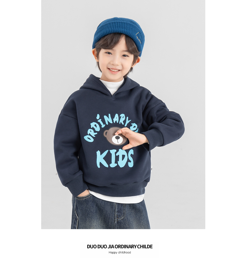 【件件底价,童装双倍积分】多多家男童加绒连帽卫衣2025秋冬季新款冬装儿童中大童小熊印花潮11179